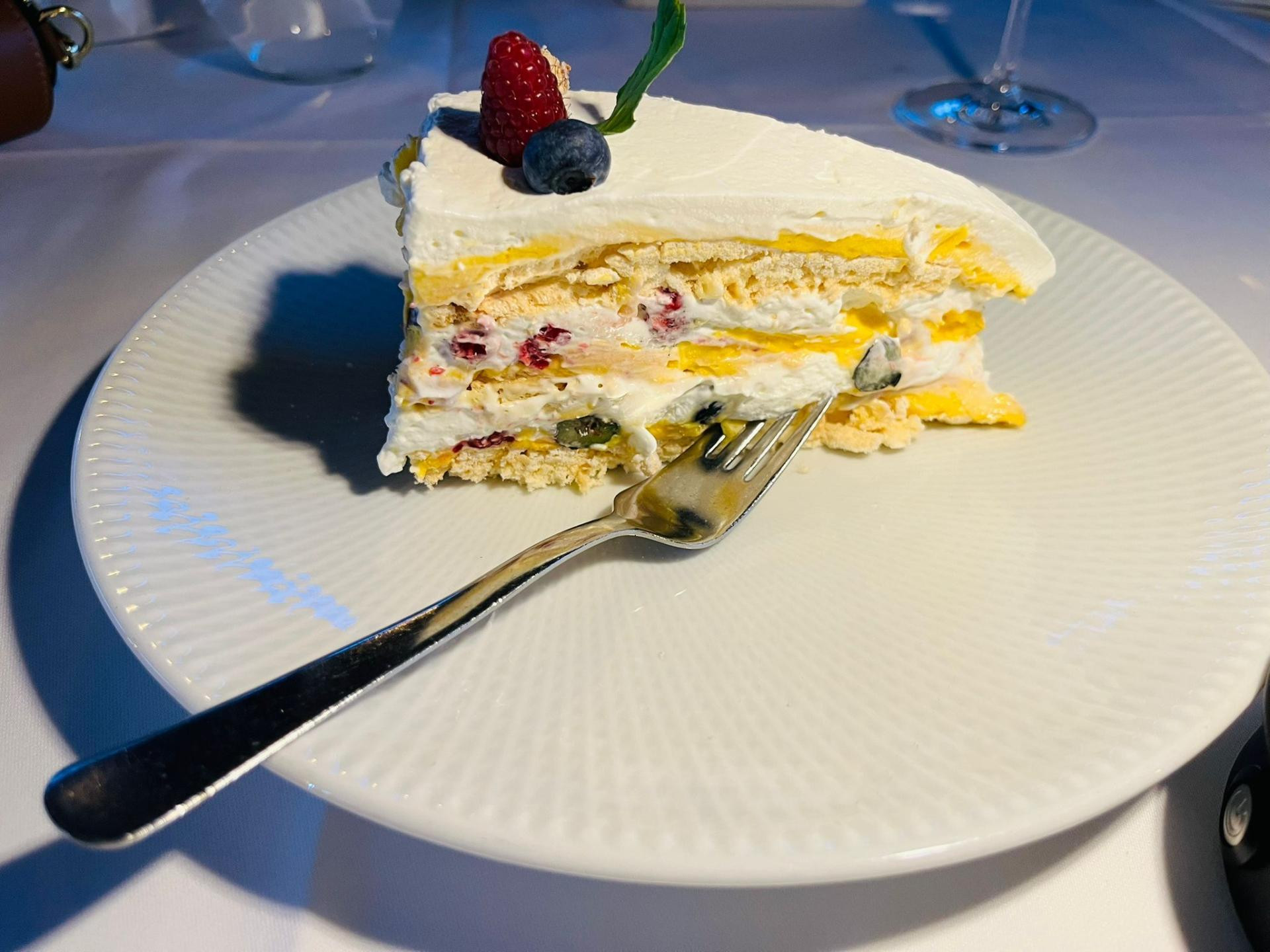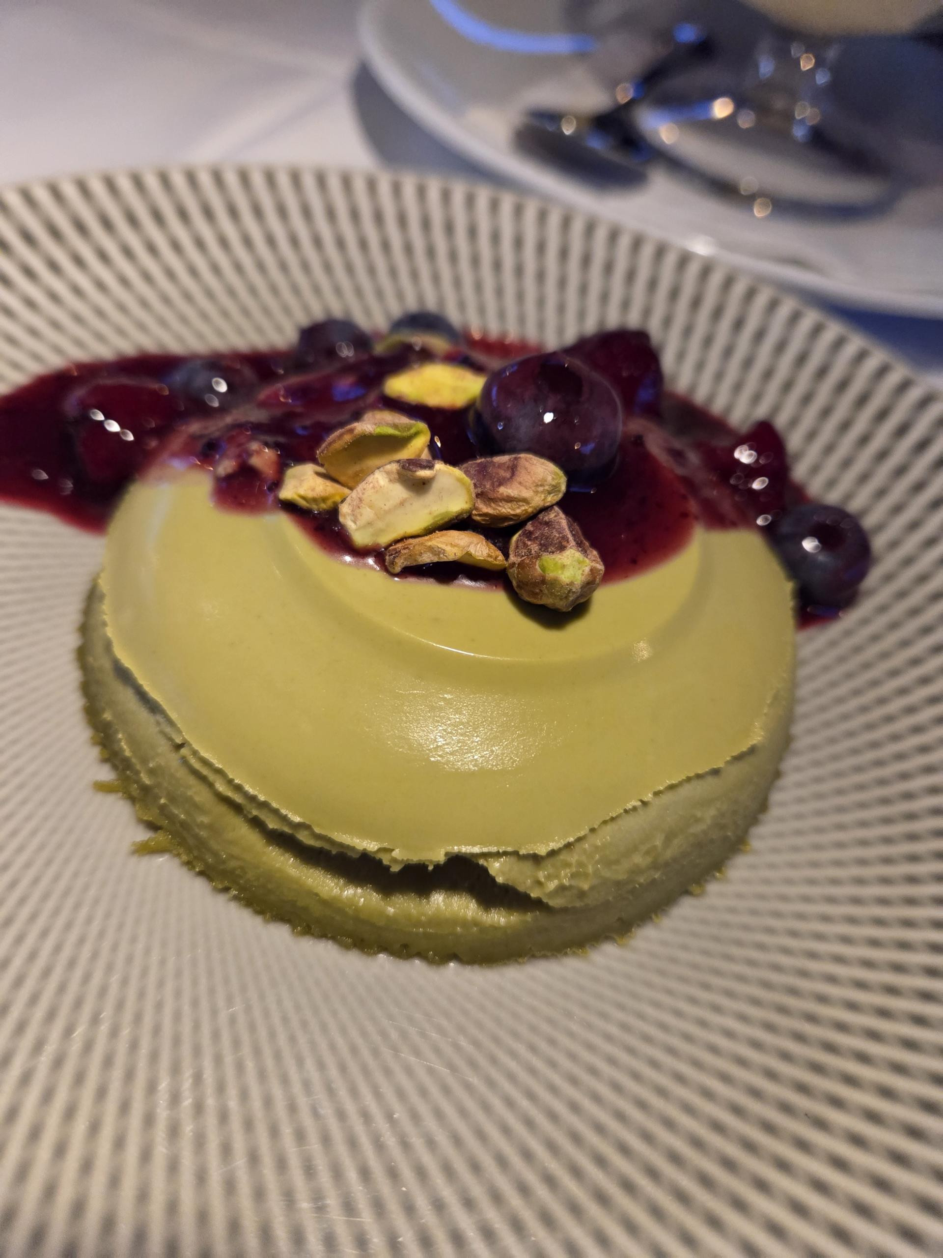 Za desert biramo pannacottu s pistacijom i tortu koja bi se najbliže mogla opisati kao nešto između ledenog vjetra i pavlove, i bila je uspješniji od dva odabrana, s obzirom da je panna cotta od pistacije bila baš neobična, kako okusom, tako i konzistencijom. Izvrstan odabir za velike fanove pistacija, inače biste se morali potruditi da je zavolite.