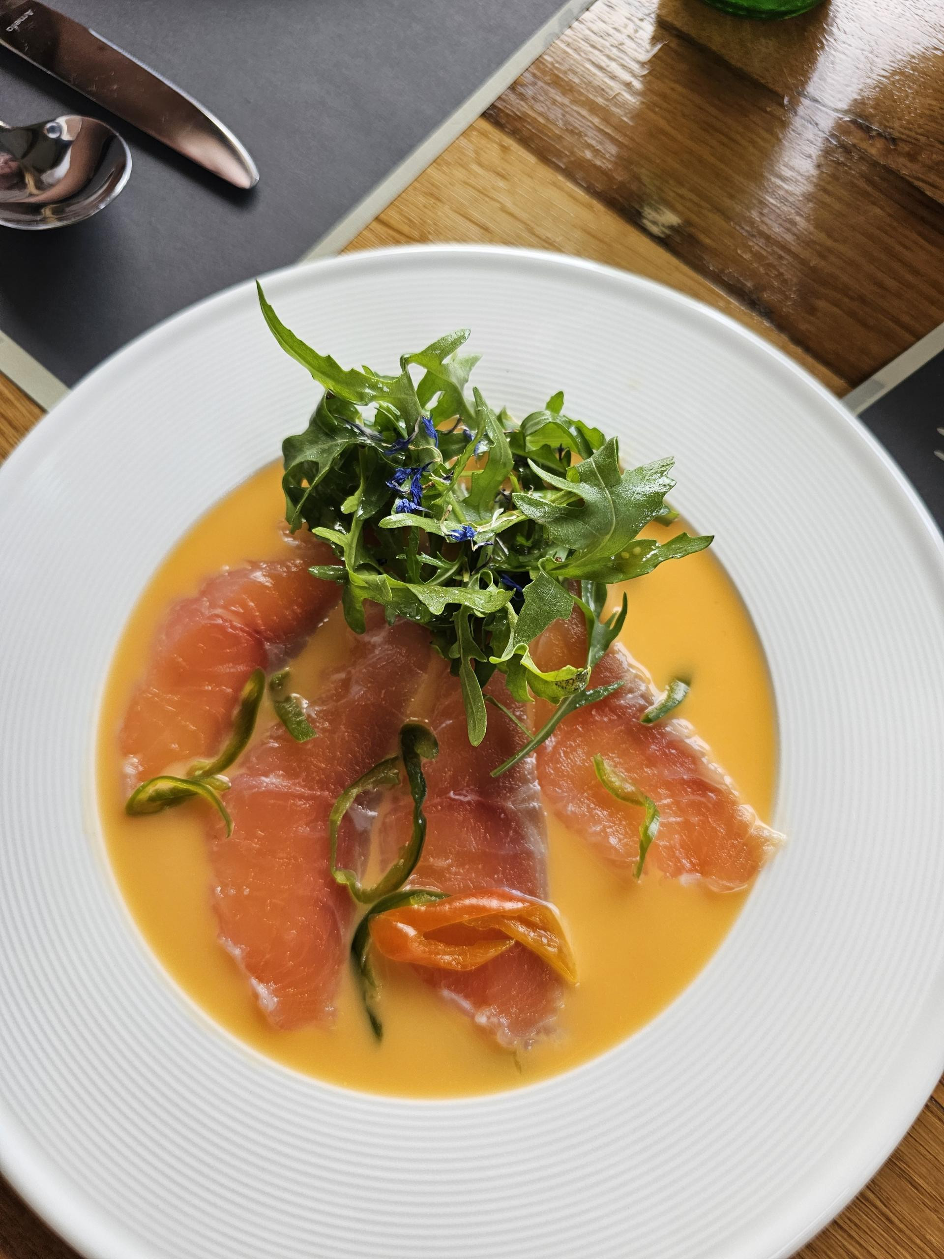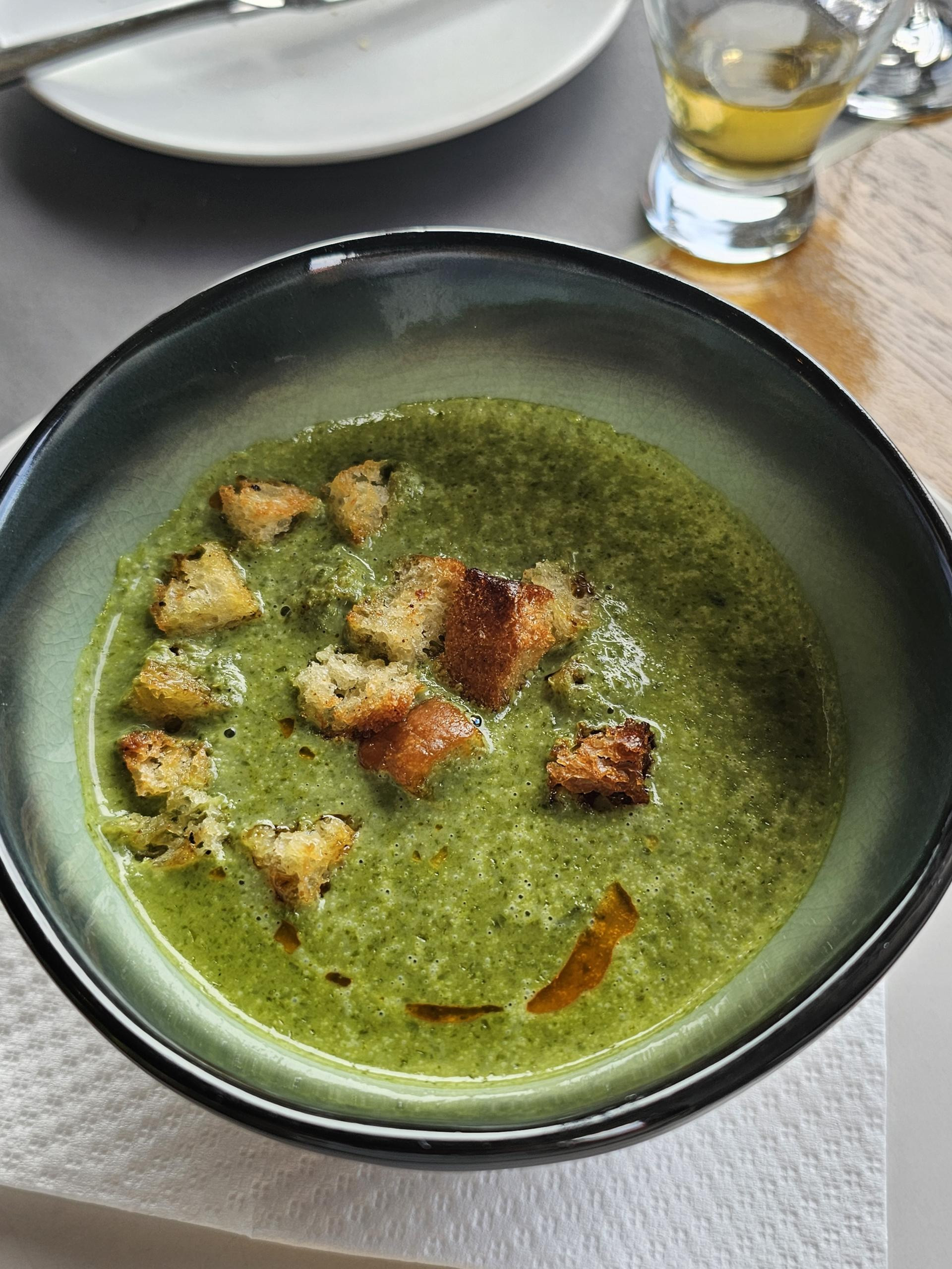 Dnevna juha je povrtna krem juha s medvjeđim lukom i krutonima. Juha je bila ukusna, dobro začinjena i s finim okusom medvjeđeg luka. Sav medvjeđi luk koji koriste sami beru u šumi.