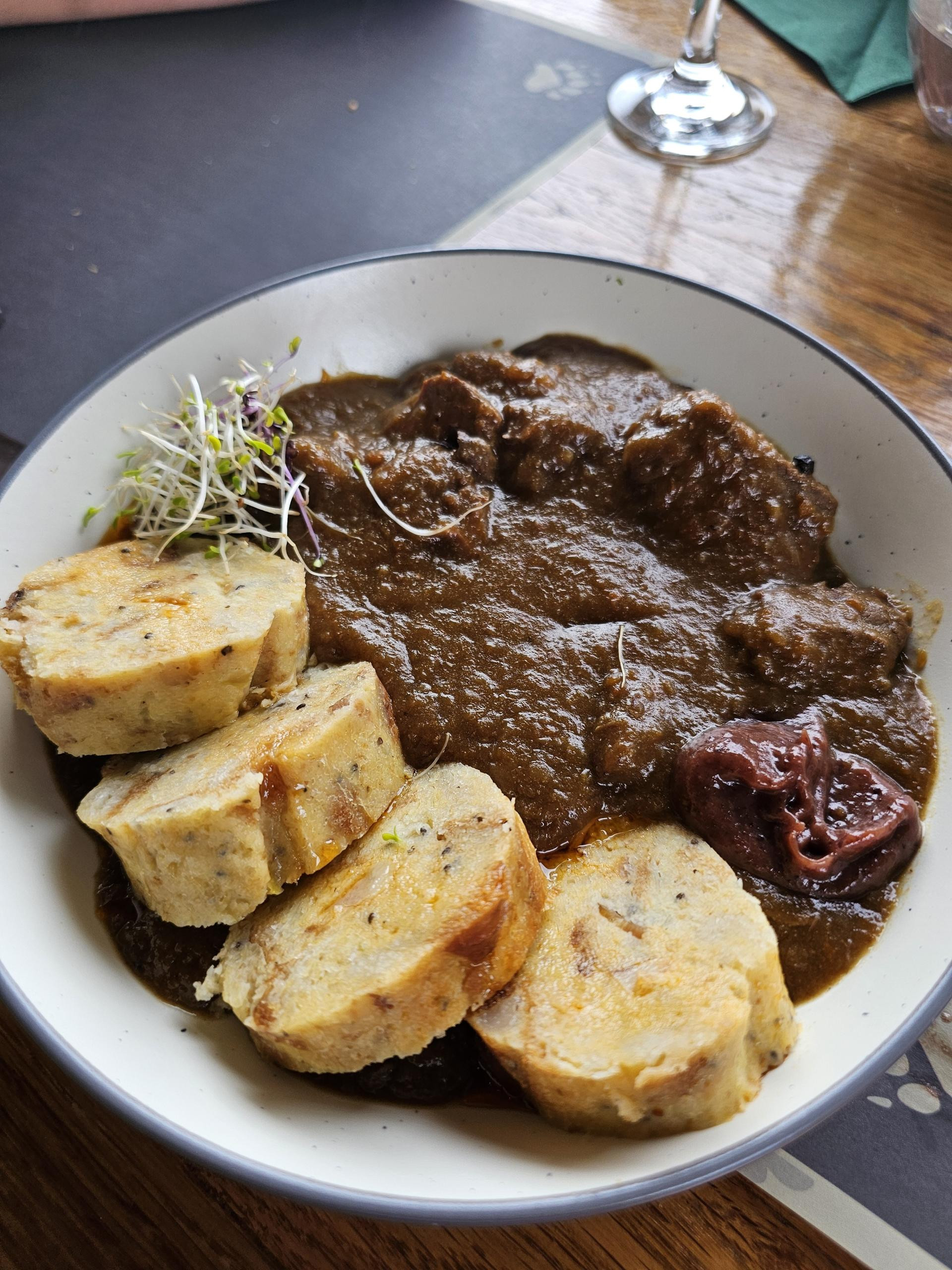 Gulaš od divljači je također bio vrlo ukusan, idealan za zimski ili jesenski dan proveden u pješačenju po šumskim stazama u okolici. Rade ga od jelena i divlje svinje uz dodatak marmelade od pečenih šljiva i luka, a prilog je štruca od kruha, još jedan klasik uz gulaš. Štruca je također vrlo ukusna, nije bila nabijena i vrlo se dobro nosila s intenzivnim okusom divljači.