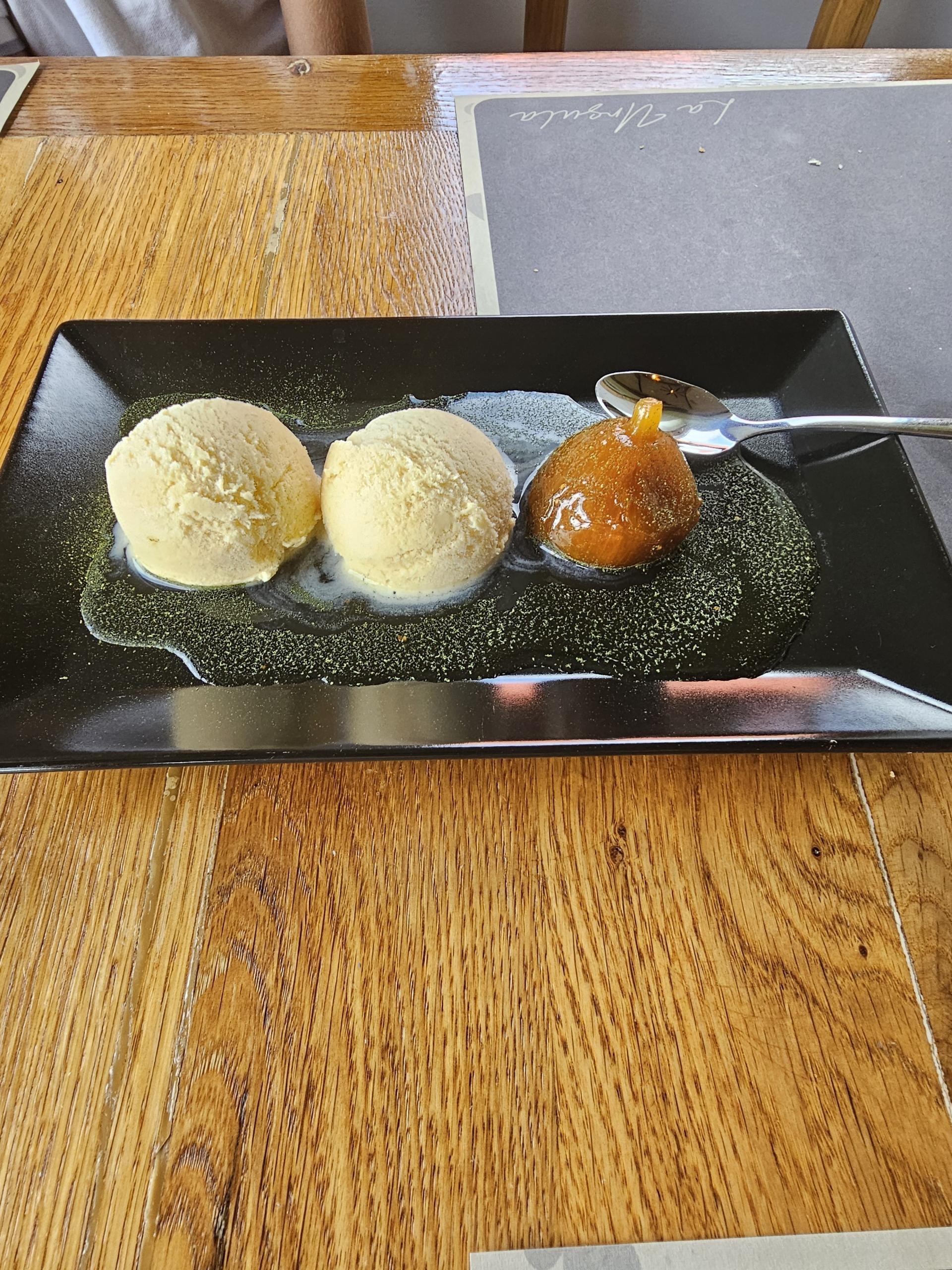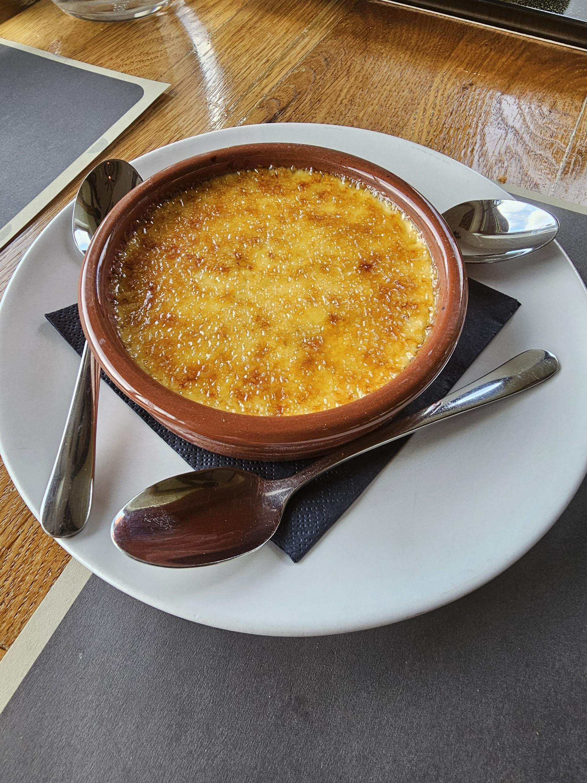 Creme brulee smo odlučili probati zbog činjenice da kremi dodatan okus daju borove iglice, ali smo na žalost ostali razočarani. Čak i kada smo probali samo kremu bez prženog šećera, nismo osjetili aromu bora. Šteta, jer sama slastica je tehnički dobro napravljena, tako da se nadamo da je netko samo prekratko držao borove iglice u vrućoj kremi.