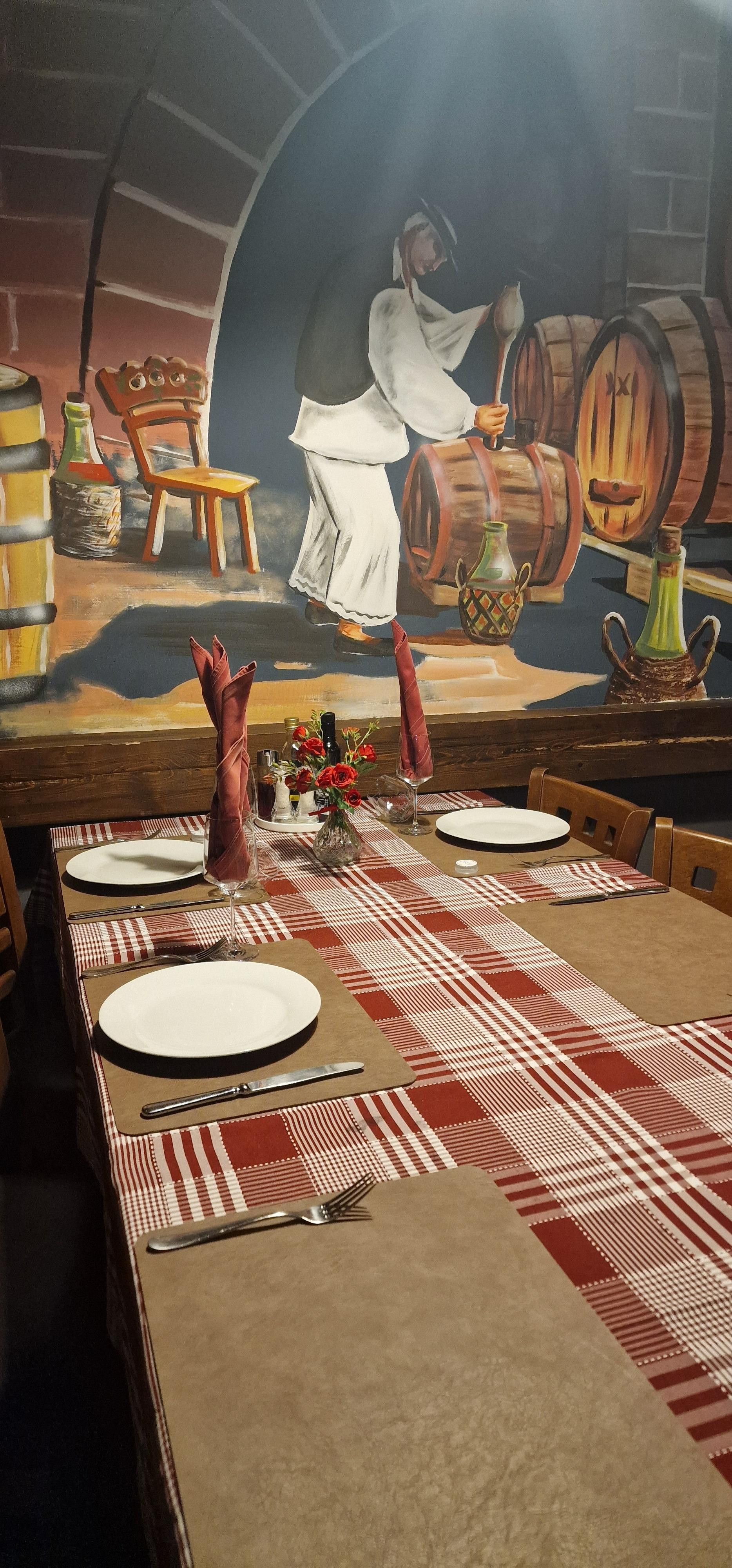 Već pri samom ulasku, restoran plijeni pažnju šarmantnim rustikalnim interijerom. Prostori nastali spajanjem triju tradicionalnih gatora - vinskih podruma ukopanih u brdo - uređeni su s osjećajem za povijest, udobnost i estetiku. Zidovi od cigle, drvene grede, ručno izrađeni ukrasi i stari kuhinjski elementi očuvani su i pretvoreni u tople, domaće cjeline. Posebno se ističu kredenci s tradicionalnim porculanom, cvijeće u svakoj prostoriji, drvene bačve na kojima se poslužuju pića i dekoracije poput velikog srca s ružama koje visi iznad sjedećeg prostora. Svaki detalj je promišljen i daje prostoru osobnost i čar.