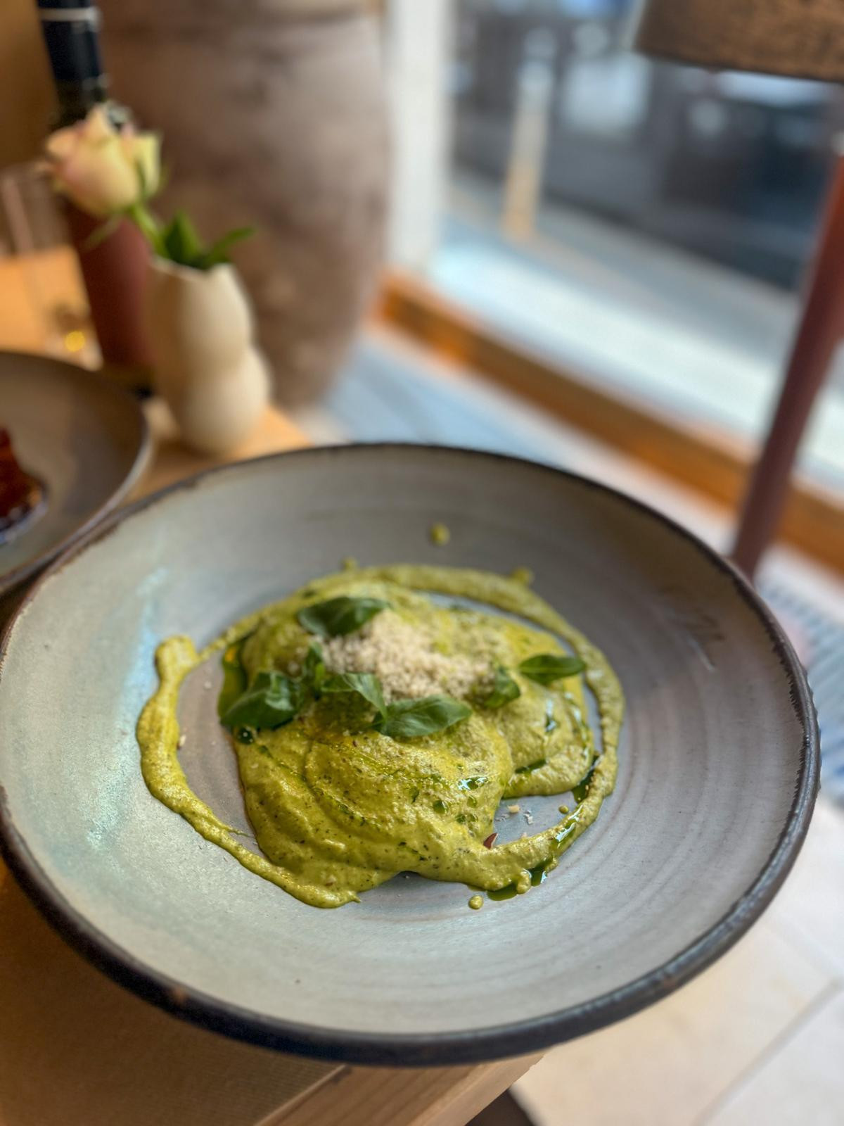 Po preporuci konobara nastavili smo s jelima iz sezonske ponude. Ravioli s koprivom (15,40 €) bili su dobri, no definitivno najslabije jelo večere. Iako je tjestenina bila pravilno kuhana i atraktivno prezentirana, okusom je u potpunosti prevladao bosiljak, dok se kopriva jedva osjetila.