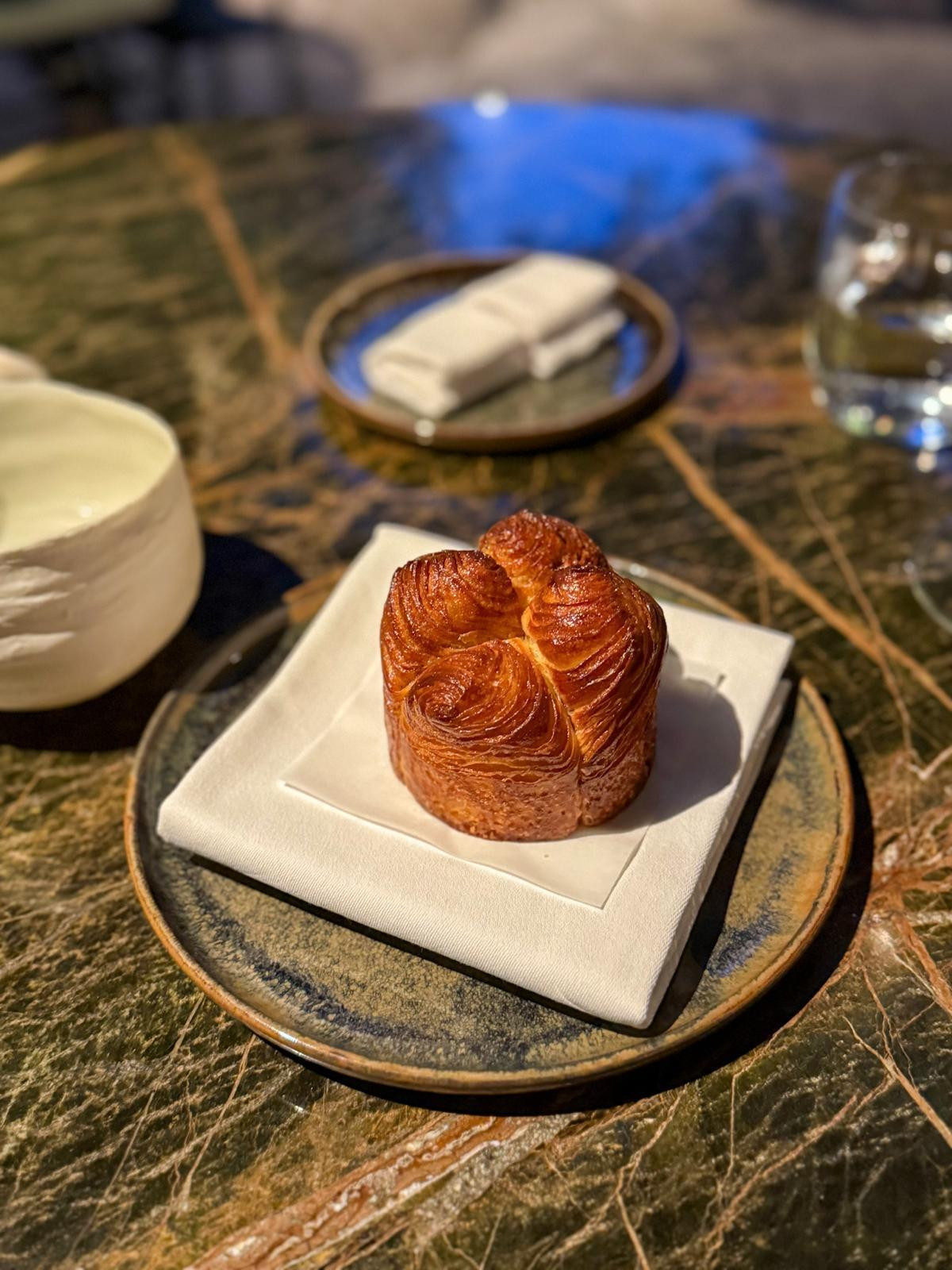 A onda na stol stiže apsolutno najbolji zalogaj koji smo ove godine kušali u nekom restoranu. Francuski brioš premazan svježim maslacem i slanutkom koji se jede prstima. Miris toplo zapečenog brioša ispunjava terasu, gotovo Proustova madlenica u paškome ruhu. Okus je božanstven, topi se u ustima. Raskošan, gotovo baroknog izgleda, sa zlatnom korom, ovo je jelo Marije Prše, pastry chefice koja će s ostatkom večeri pokazati svoje znanje.