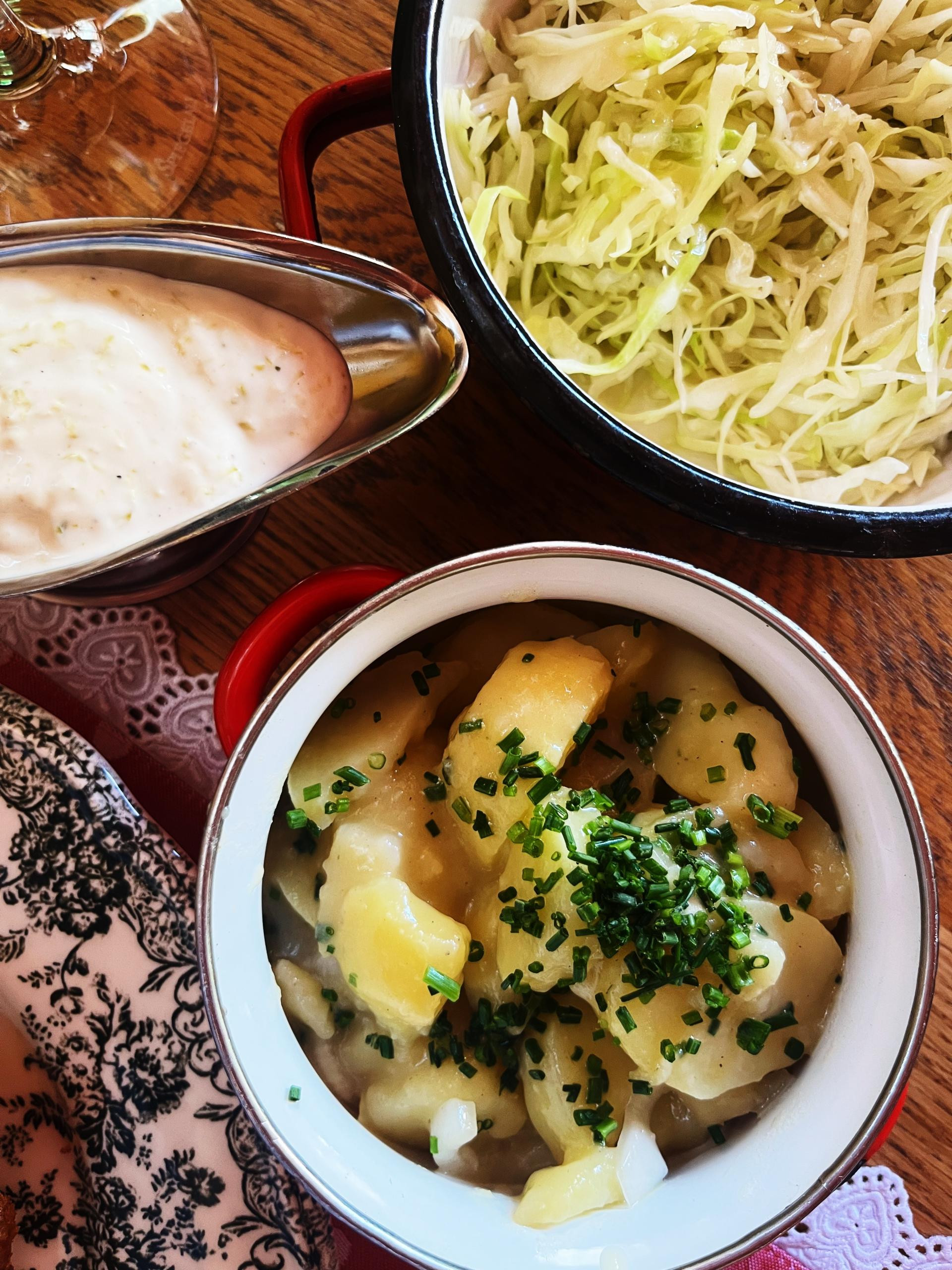 Bečki je bio mekan, slastan i na tanjuru su došla čak dva komada, dakle, porcija je bila zbilja konkretna. Krumpir salata je bila poslužena u zasebnoj posudici. Na prvi pogled učinila nam kremastom i obećavala, ali okusom nas nije osvojila. Bila je teška, masna, prilično se osjetio senf i nedostajalo joj je kiseline i općenito začina. Na kraju smo teleći jeli uz kupus salatu, koja je bila korektna.