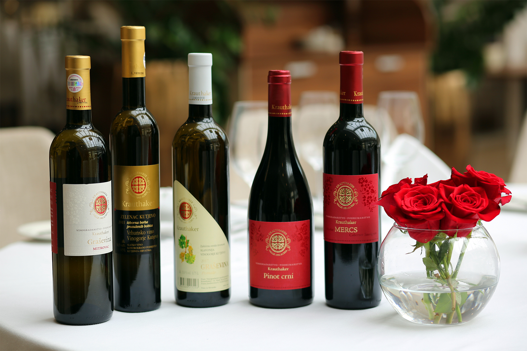 Krauthaker Kuvlakhe Manzoni 2013 dobiveno je bez dodatka sulfita, tradicionalnom gruzijskom metodom dulje maceracije. Vino se proizvodi u vrlo malim količinama. Krauthaker Graševina izborna berba prosušenih bobica 2012, slatko je desertno vino kompleksno i elegantno, gusto, sirupasto, kremasto zaobljeno, dotjerano i pokazuje svoju profinjenost.