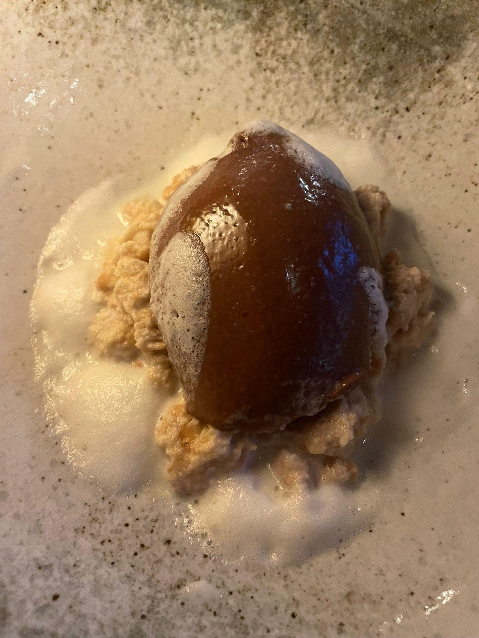 Crémeux od čokolade (10 eura) još je jedan novi okus na desertnoj karti. Inače, crémeux je klasični francuski kolač koji spaja tradicionalnu crème Anglaise (kuhani kremasti umak) i čokoladu. U ovoj verziji crémeux je poslužen na keksima na mlijeku uz kremu od bademovog mlijeka. Desert je kremast, podatan, taman sladak i idealan izbor za ljubitelje čokolade. Iskreno, dobar desert, pogotovo čokoladni, danas je užasno teško pronaći, ali ovaj zaslužuje čistu peticu.