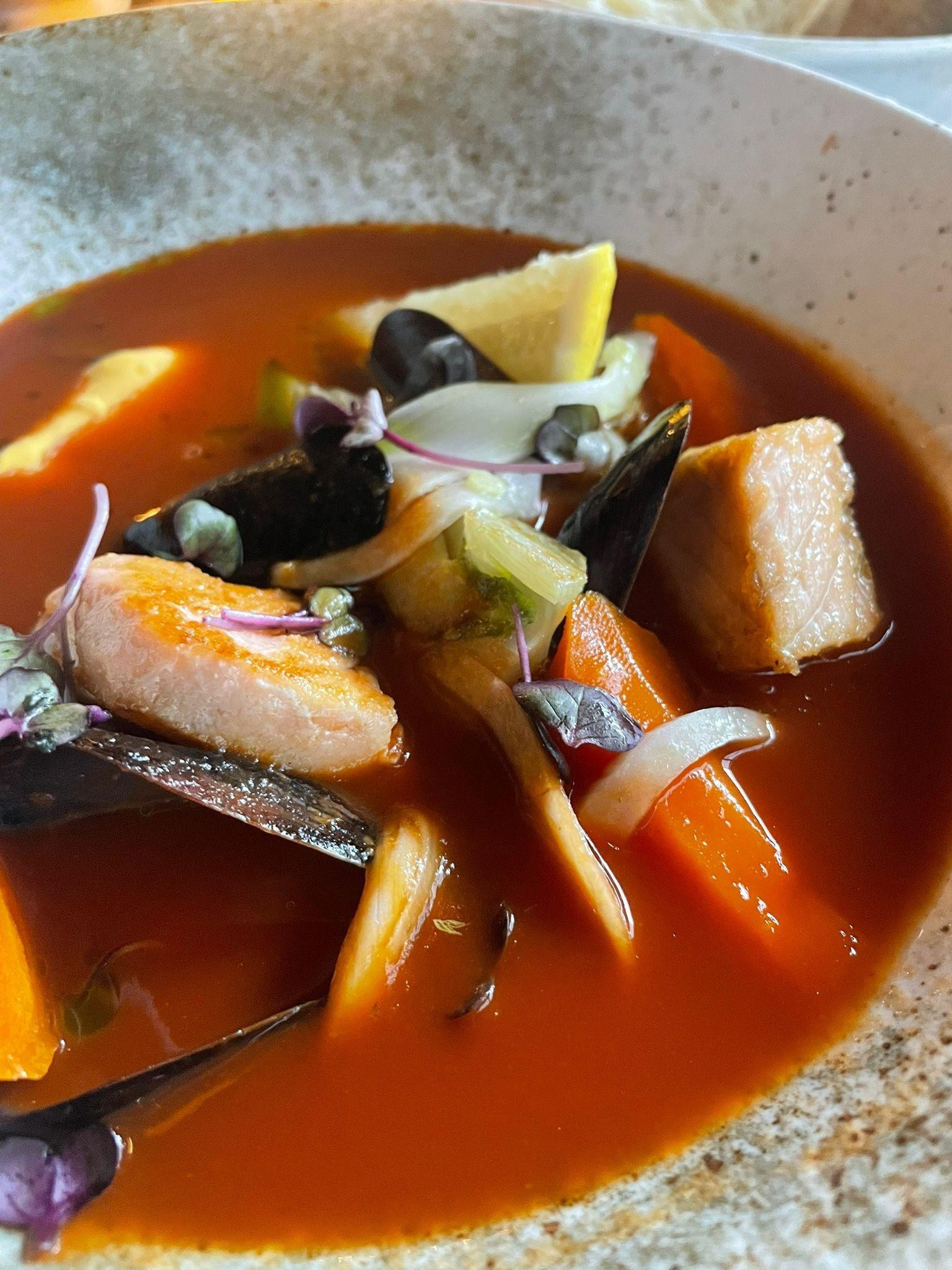 Verzija koju smo probali u Bistrou 96 sadržavala je dagnje, karameliziranu mrkvu, losos, brancin, ukiseljeni koromač... Ova bogata juha bila je prava eksplozija okusa. Dagnje su bile sočne i nježne, dok je karamelizirana mrkva dodala nježnu slatkoću koja se lijepo uskladila s blago dimljenim okusima brancina i lososa. Ukiseljeni koromač pružio je svježinu, koja je osvježavala svaki zalogaj, pogotovo na vrući rujanski dan u Zagrebu. Unatoč tome ovo jelo ne bi okarakterizirali ni kao zimsko, a ni ljetno, zapravo zbog svoje lakoće, a istovremeno i zasitnosti, birali bi bouillabaisse u svako doba godine.