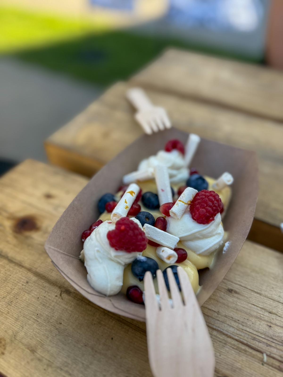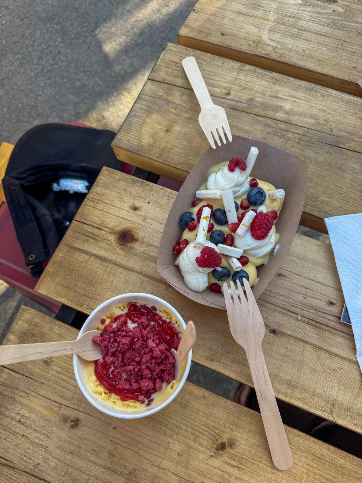 Slice Ice (Jagoda i berry crumble poc cijeni od 7,50 €) je vješt i zabavan desert. Sladoled se pred vama reže na male trakice, što nepcu daje igru hrskavosti i mekoće. Također vrlo osvježavajuć desert. Ovo su možda i najbolji deserti koje je Klepić dosad predstavio na festivalima.