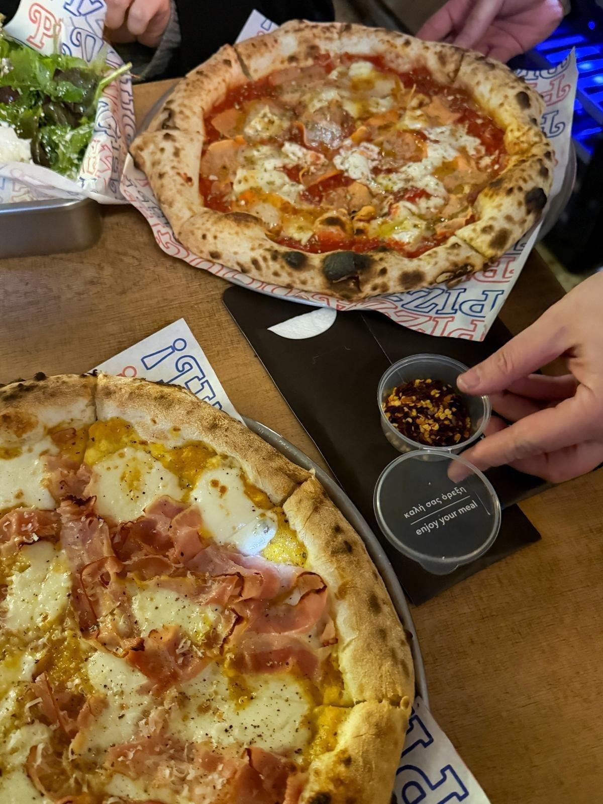 Fysika je mala pizzerija sa samo desetak sjedećih mjesta koja ne prima rezervacije. Pizze su dugo fermentirane, 48 sati, tijesto je prozračno, a vinska ponuda na čaše impresivna za prostor te veličine. To Rini je mali lokal koji nudi moderniju verziju grčke tradicije uz promišljenu selekciju vina, s fokusom na manje proizvođače. Pharaoh je svakako najzanimljiviji lokal koji smo posjetili. Električna atmosfera, kolekcija vinila koja bi posramila mnoge specijalizirane barove i jedna od boljih vinskih lista u gradu čine ga mjestom koje vrijedi posjetiti čak i ako ne planirate jesti. Ako vam dopuste, naravno.