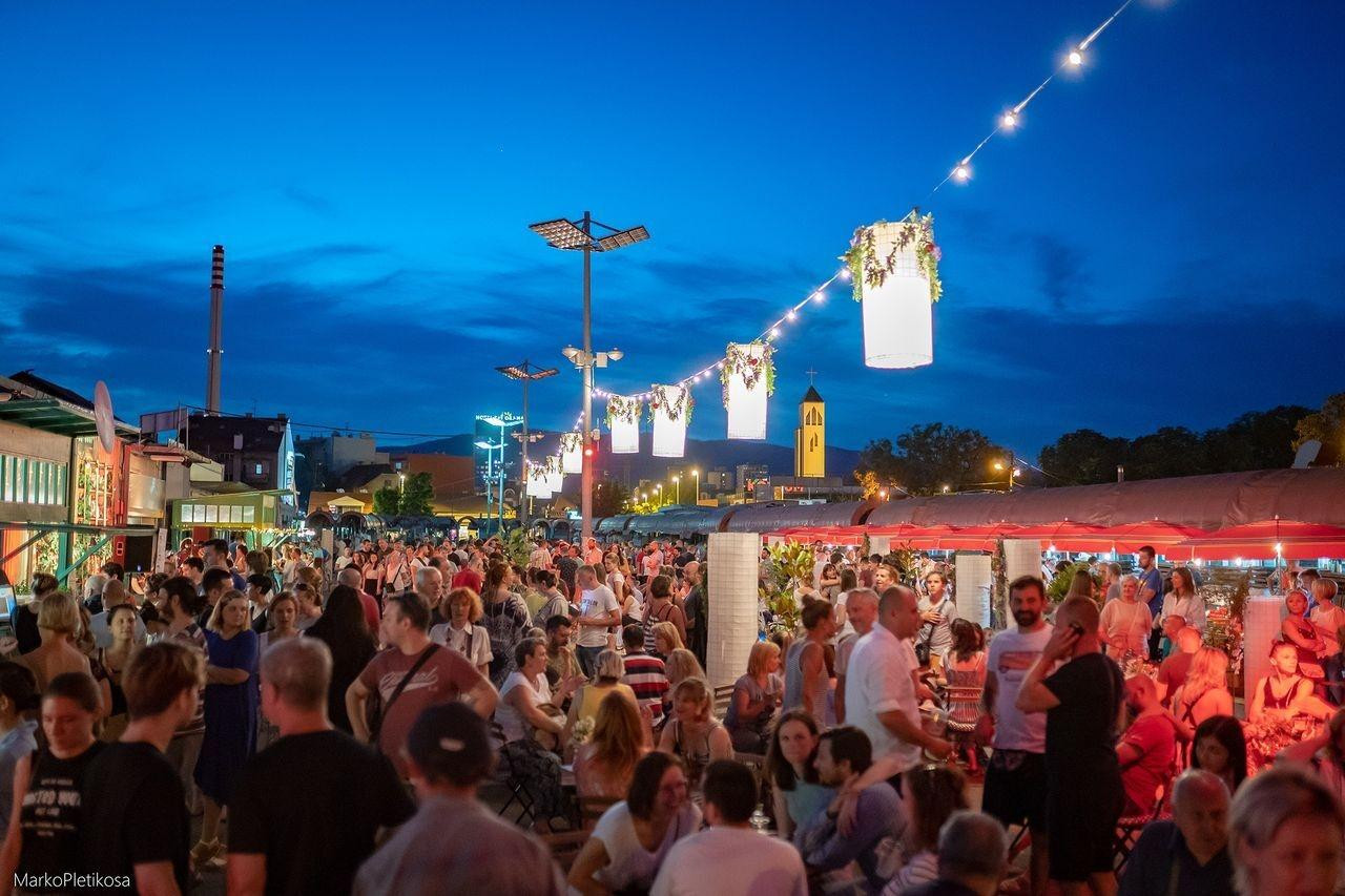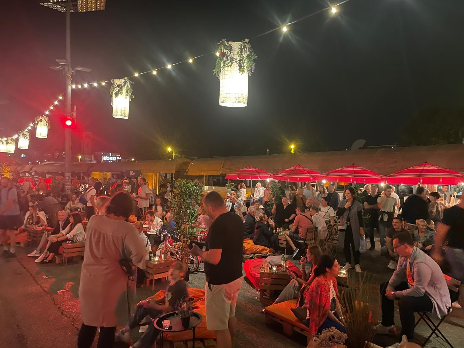Svake večeri od 19 do ponoći posjetitelji mogu uživati u spoju domaćih specijaliteta, međunarodnih delicija i festivalskog ugođaja. Nakon jutarnjeg špeceraja i dnevnog šušura, ovdje se sada kuša, pije, svira i druži, a poznati gradski plac može počinje imati svoje noćno, urbano lice.