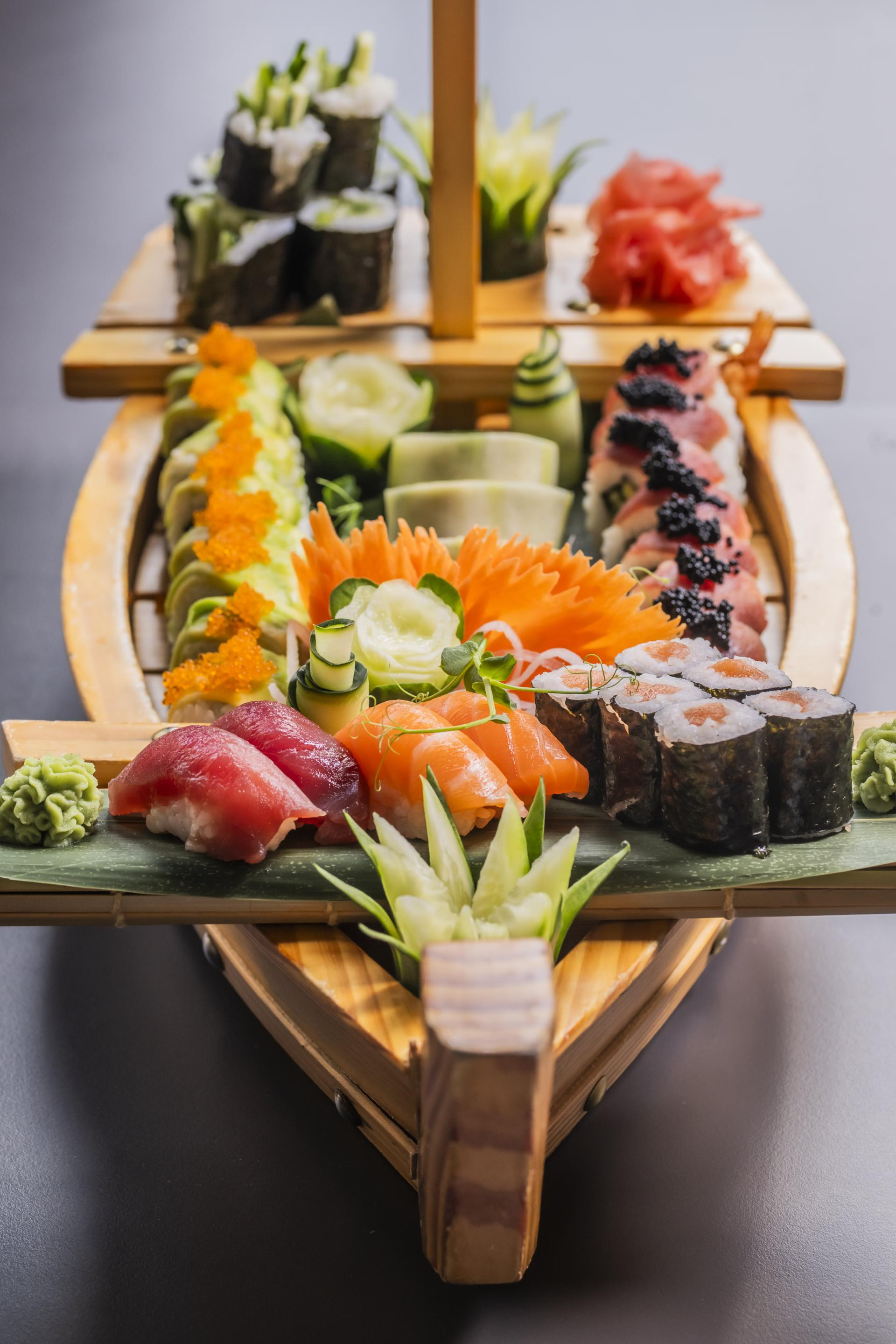 Chopstix se posebno ističe po sushiju i ramenu. Poseban detalj u ponudi Chopstixa su sushi brodovi, elegantni, ručno izrađeni od bambusa. Svaki brod zadržava tradicionalan način serviranja sushija i donosi dašak autentičnosti na stol. Voditeljica Snježana Horvath nam kaže kako ih gosti obožavaju i često s nestrpljenjem čekaju trenutak kada sushi brod stigne, fotografiraju ga i uživaju u samom ritualu serviranja.