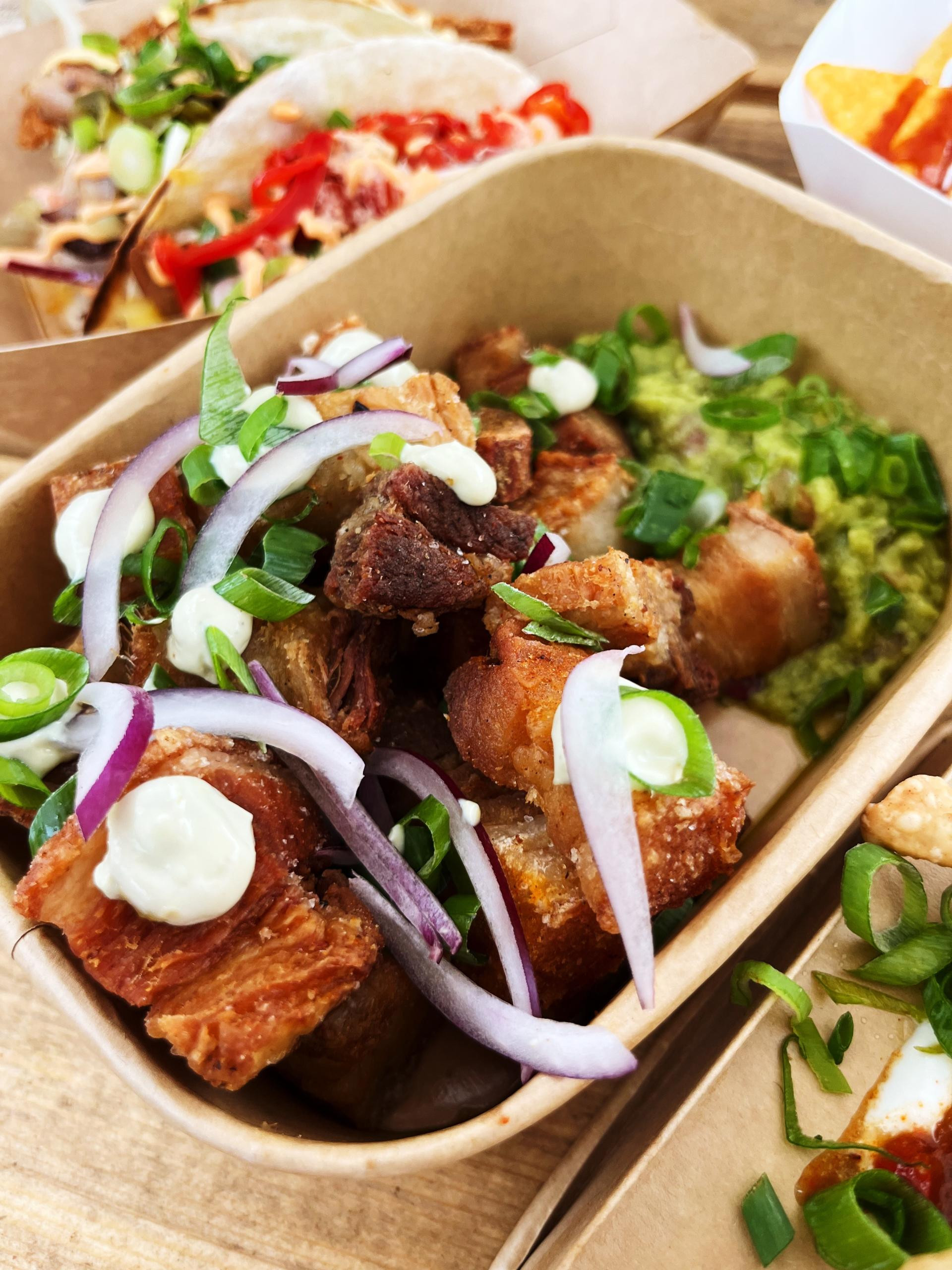 Mali restoran/taqueria Cato u zagrebačkoj Vlaškoj ulici inače nam je jedan od omiljenih u gradu, što zbog uvijek dobre, ugodne atmosfere, što zbog hrane koja je idealna za dijeljenje i nikada ne razočara. Ne čudi stoga što su nam se tacosi koje smo probali na njihovoj kućici na Fiesti Latini također svidjeli. Favorit nam je piletina (chicken tinga s kikirijem, guacamoleom i hrskavim kukuruzom), a nude i vegetarijansku varijantu (calabaza taco) s butternut tikvom, paprikom, lješnjacima, kozjim sirom i ciklom, što je svakako za pohvalu i koja je također prilično ukusna, moćna i kremasta. Osim toga, od ekipe iz taquerije Cato probali smo i kukuruz s fetom, ljutom majonezom i tajin začinskom mješavinom, koji je bio neobično dobar i poželjeli smo ih pojesti još barem dva komada.
