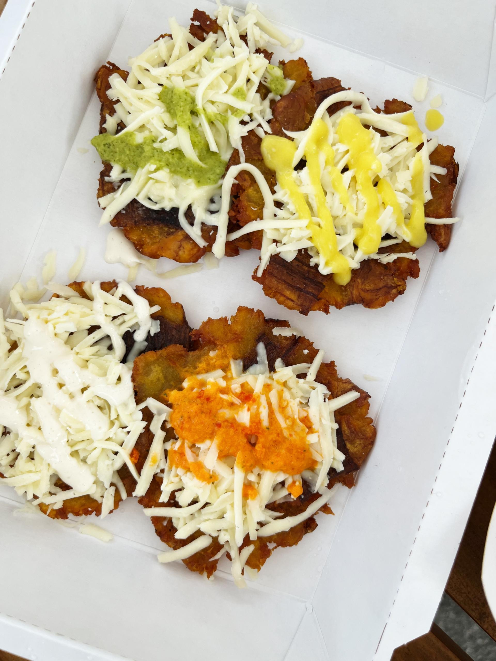 ŠTO JOŠ NUDE: arepe s junetinom i cheddar sirom, s piletinom, avokadom i slanim sirom i vegetarijansku s crnim grahom, slanim sirom i plantanom, zatim tostones sa sirom i junetinom, avokadom i umacima te yucu s umacima