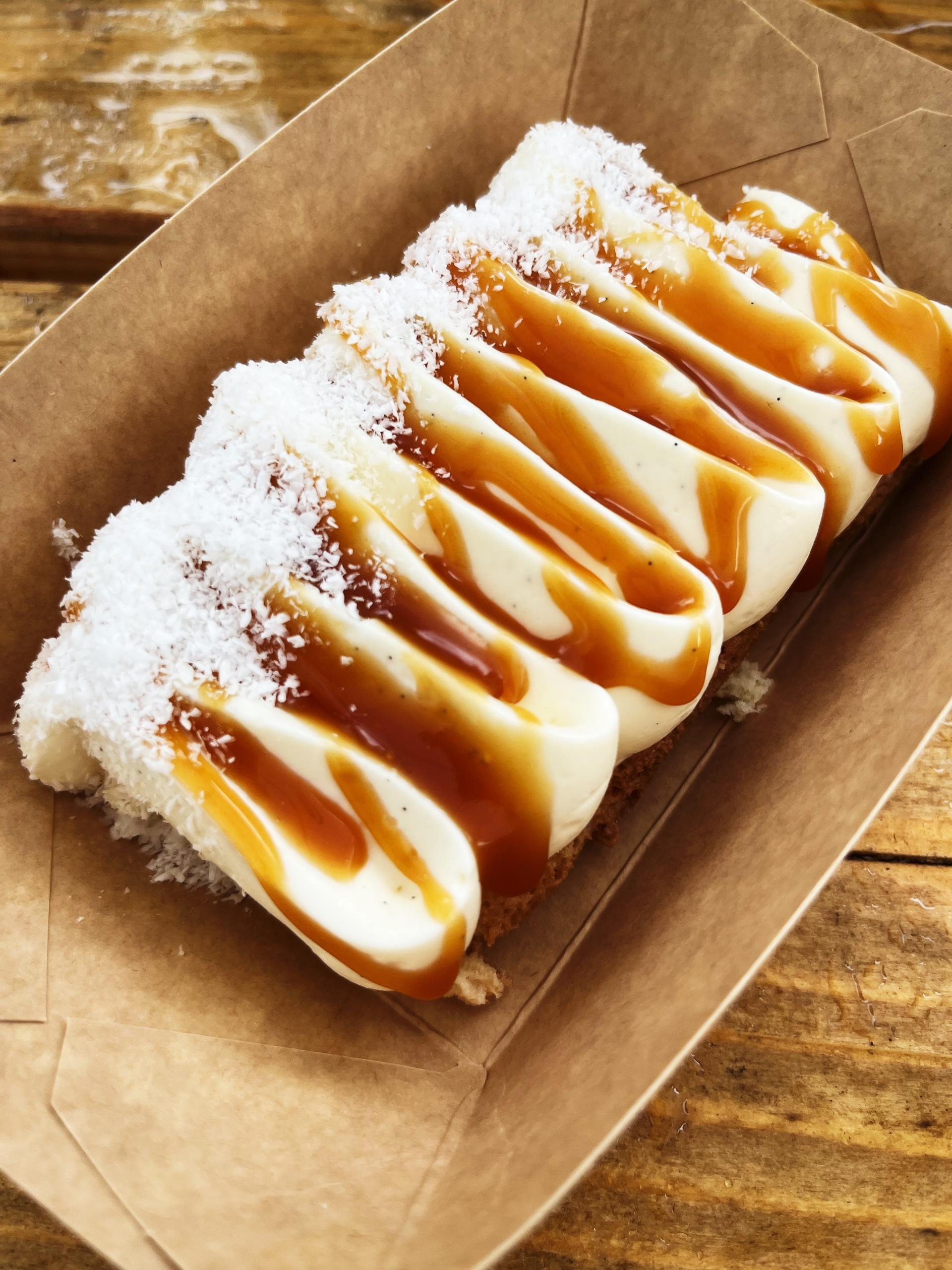 Mlad i talentiran Juraj Klepić već se nametnuo kao slastičarska zvijezda festivala pa nije ni čudno da smo upravo na njegovoj kućici Gdje je Jura? pojeli najbolji desert. Njegov tres leches, biskvit natopljen kravljim kokos i kondenziranim mlijekom s chantilly kremom, slanim karamelom i kokosom toliko je lijepo zaokružio druženje na Fiesti Latini da bismo ga svakako voljeli vidjeti i u stalnoj ponudi neke zagrebačke slastičarnice. Suptilno sladak, karameli unatoč, mekan, sočan i kremast, ovaj kolač je sve što vam treba da vam popravi tmurni vikend u Zagrebu.