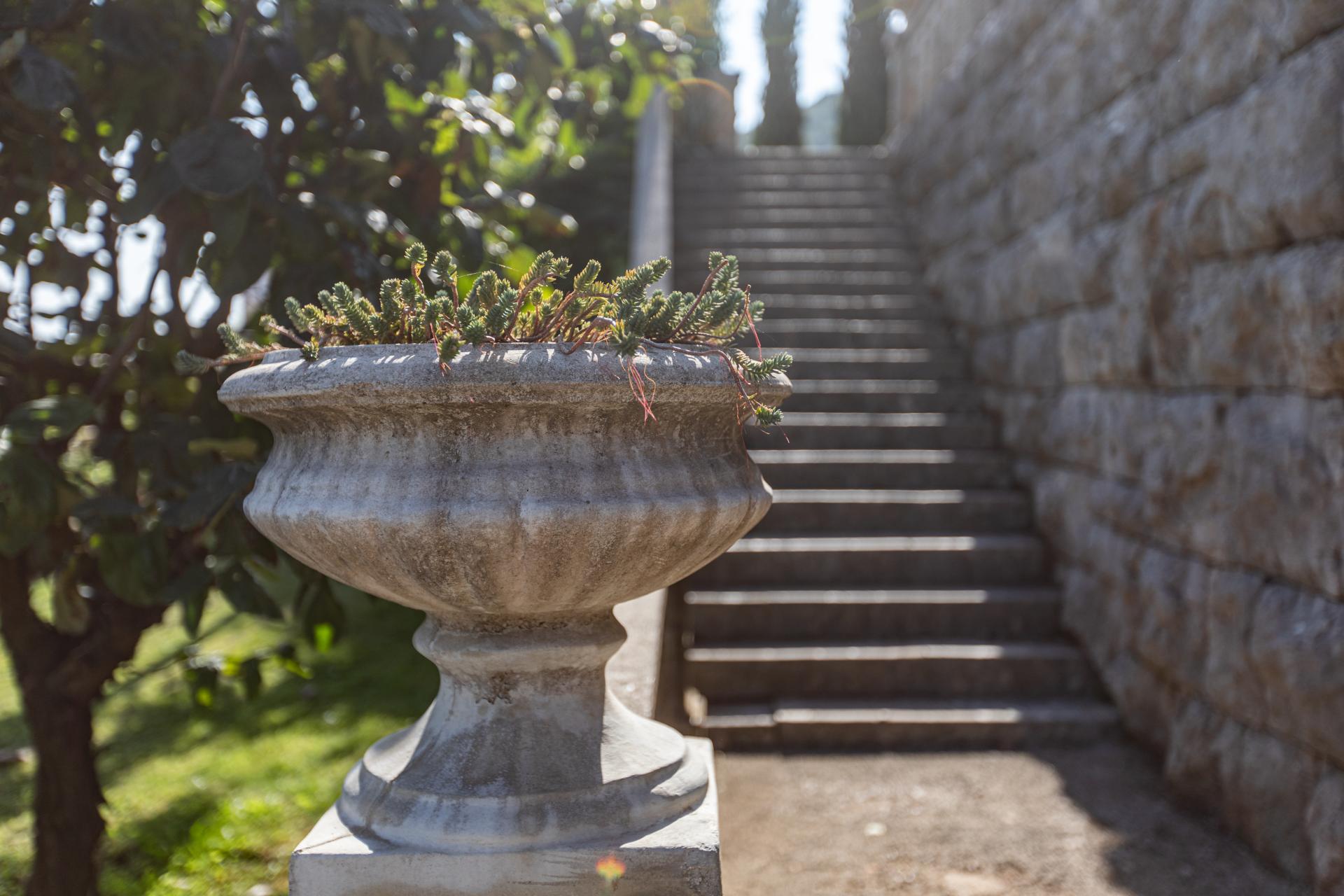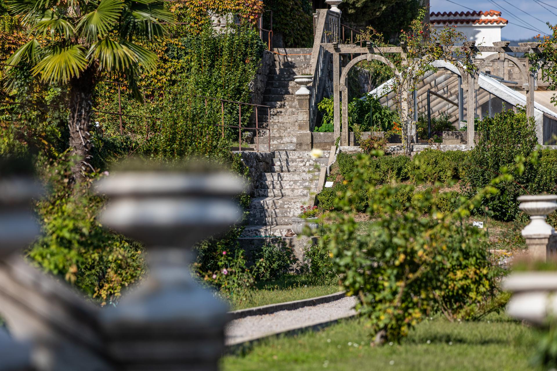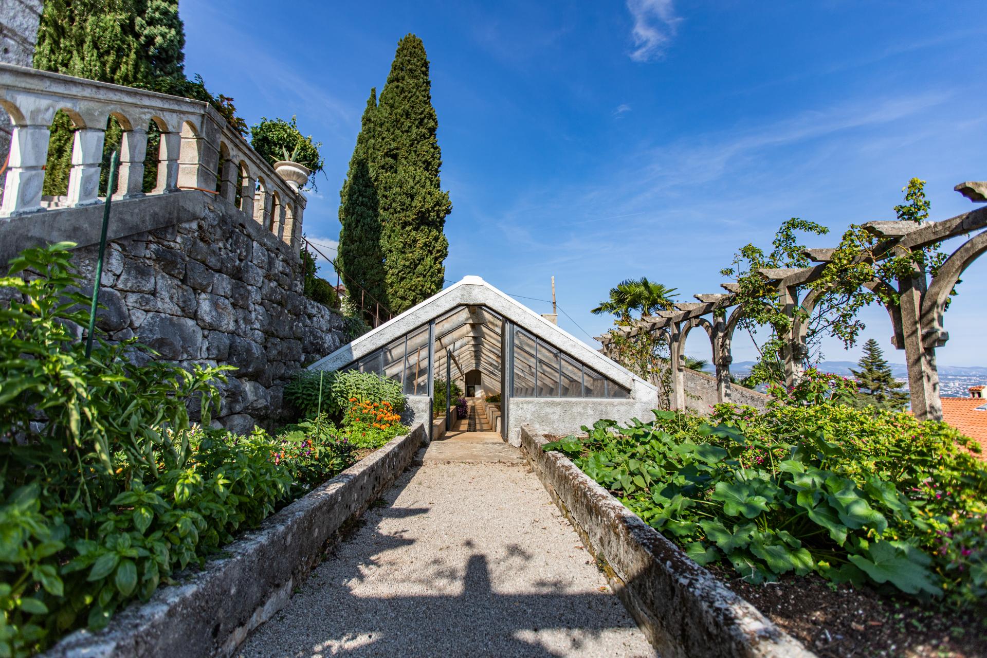 S obzirom na to da je kućica za vrtlara sagrađena znatno prije ostalih građevina, razvidan je vrlo izražen osjećaj za poimanje pejzažne arhitekture i hortikulture. Vrtovi su imali pergolu, stepenište, klupe i popločenje. Karakteristično je da su biljke bile pravilno organizirane, bilo šišane u kuglaste ili stupaste oblike (čempresi), bilo sađene u mrežastom rasporedu. Bili su zasađeni kamforom, eukaliptusom, kamelijama, gardenijama, magnolijama, australskim agavama, tisućama ruža, vinovom lozom, paprikom i mnogim drugim vrijednim primjercima biljaka.