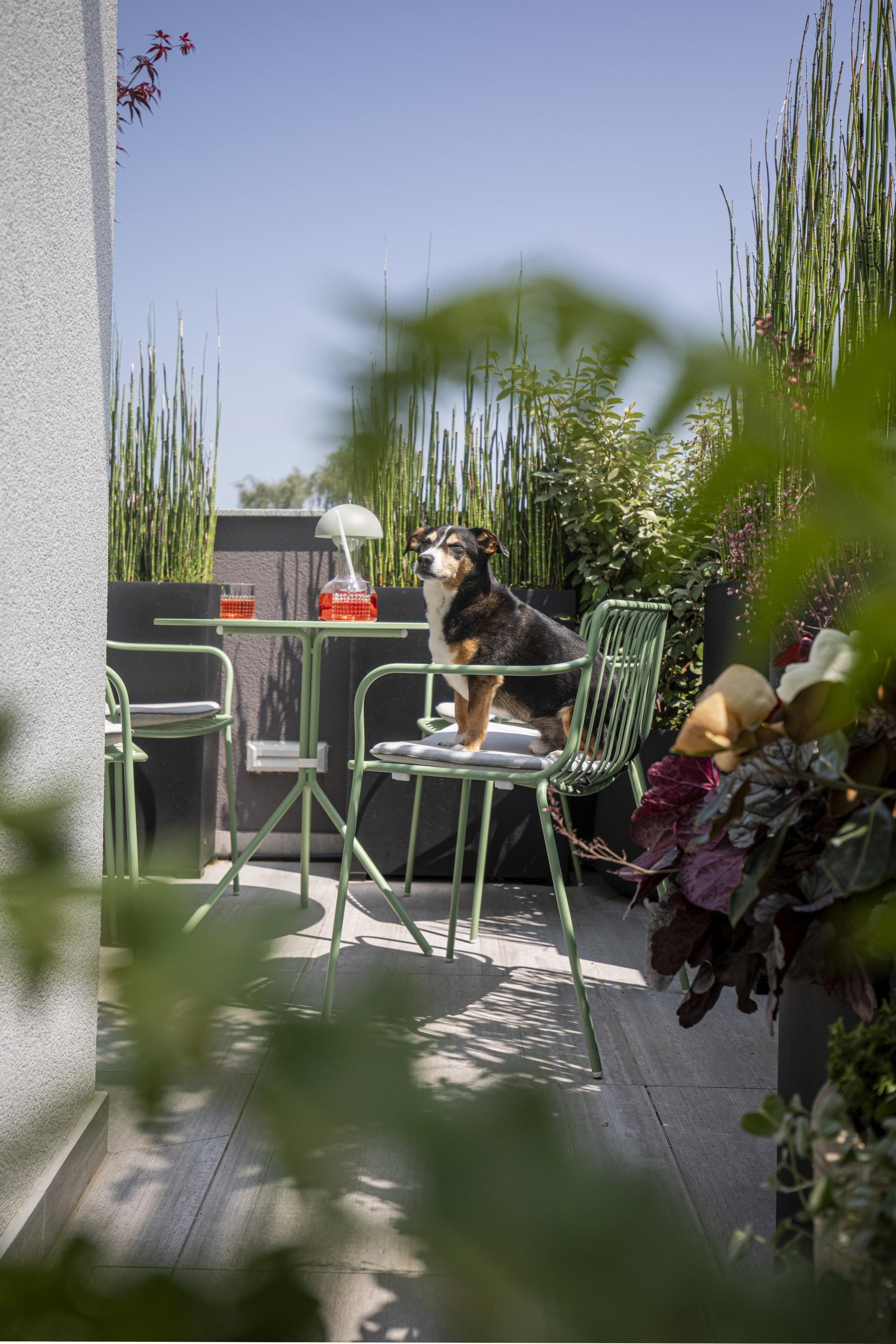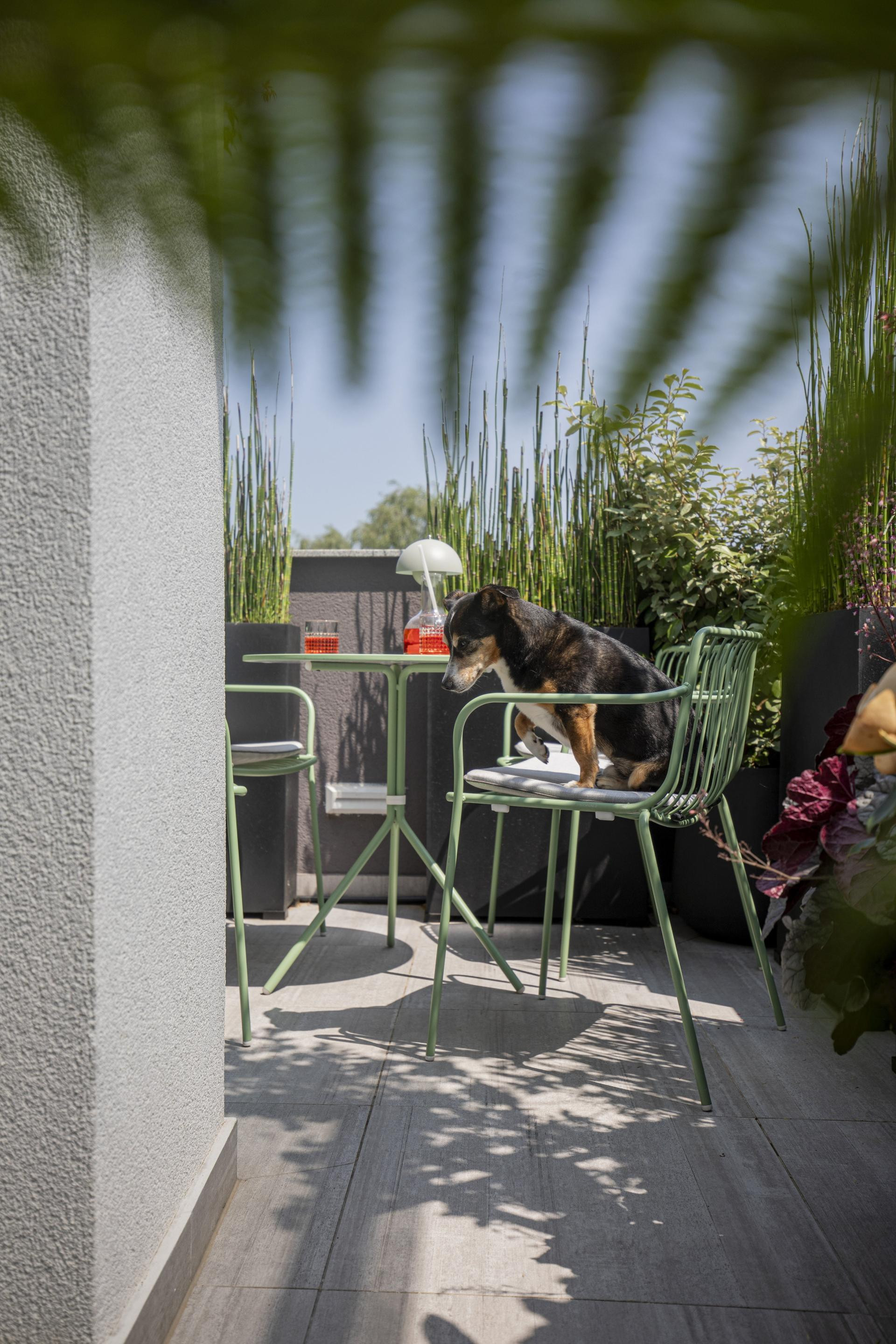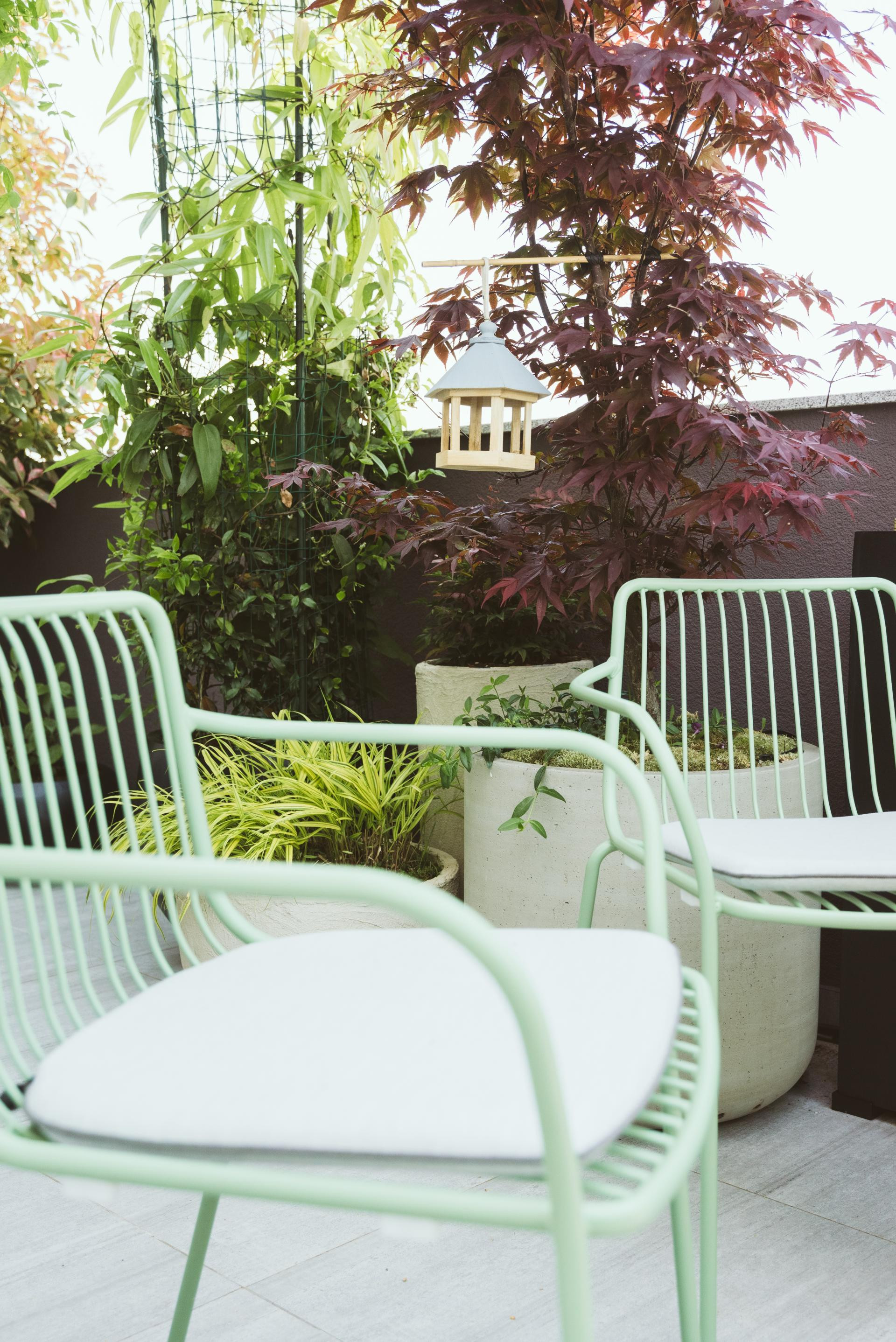 Lijepi komadi vanjskog namještaja savršeno su se uklopili u ovaj zeleni ambijent