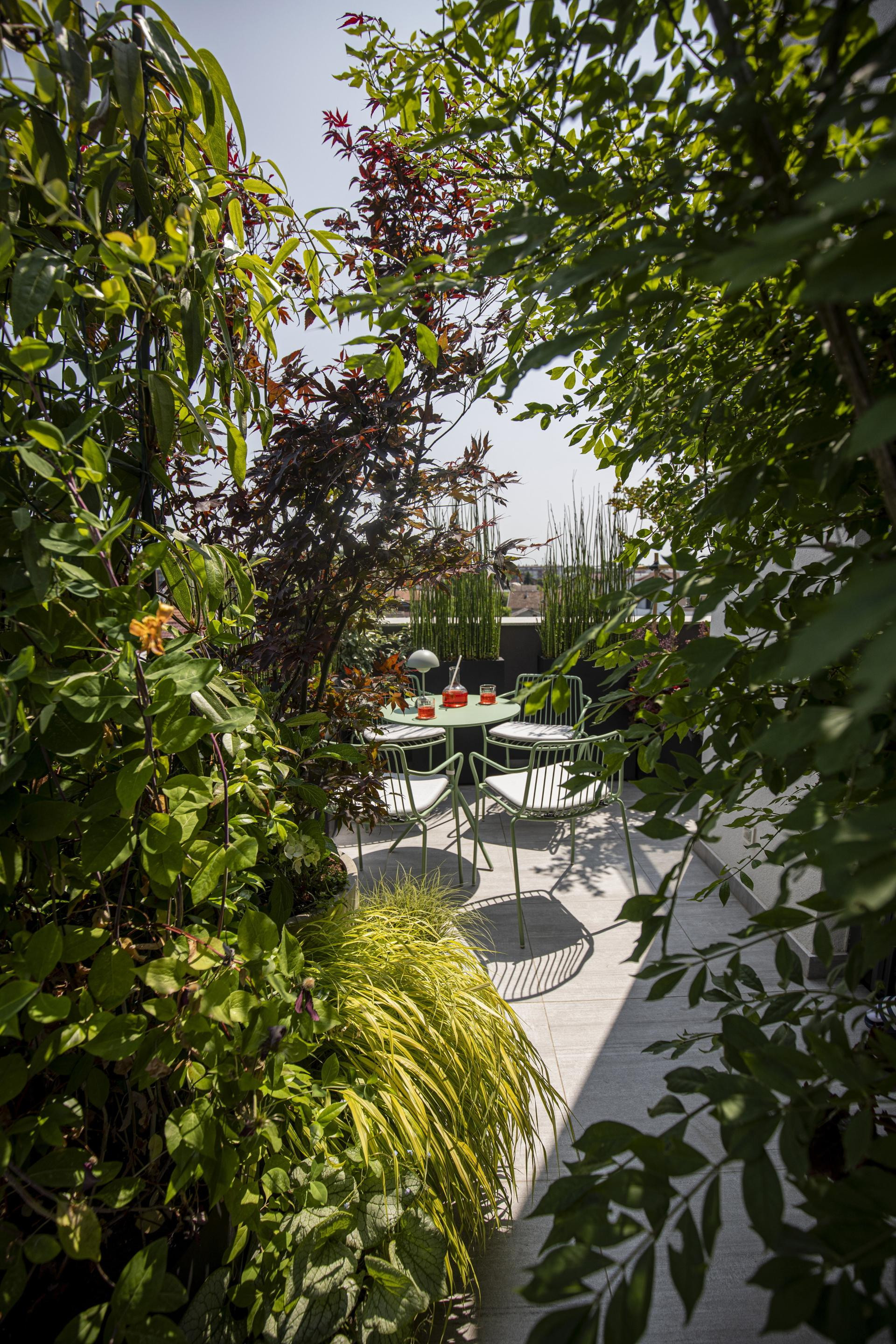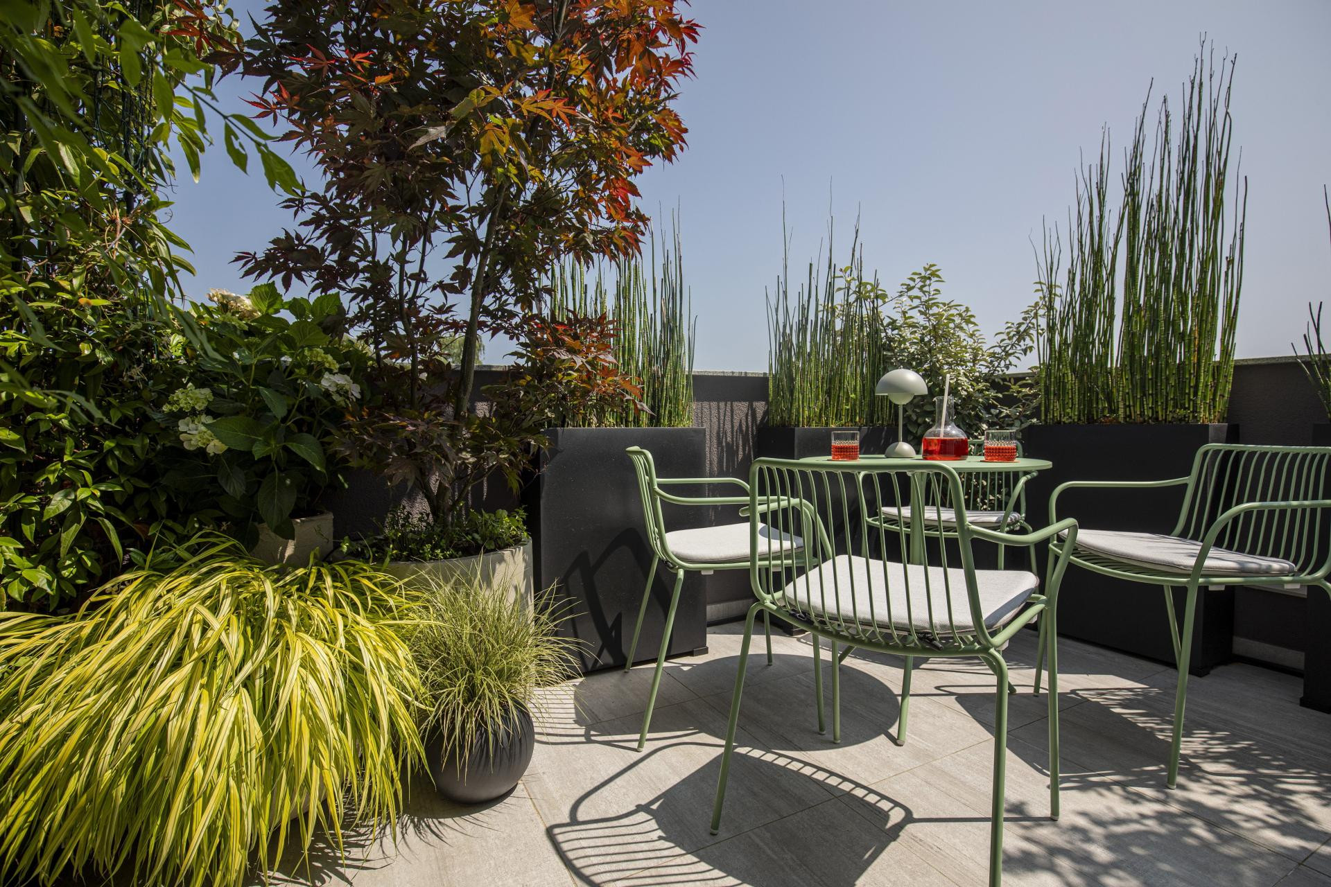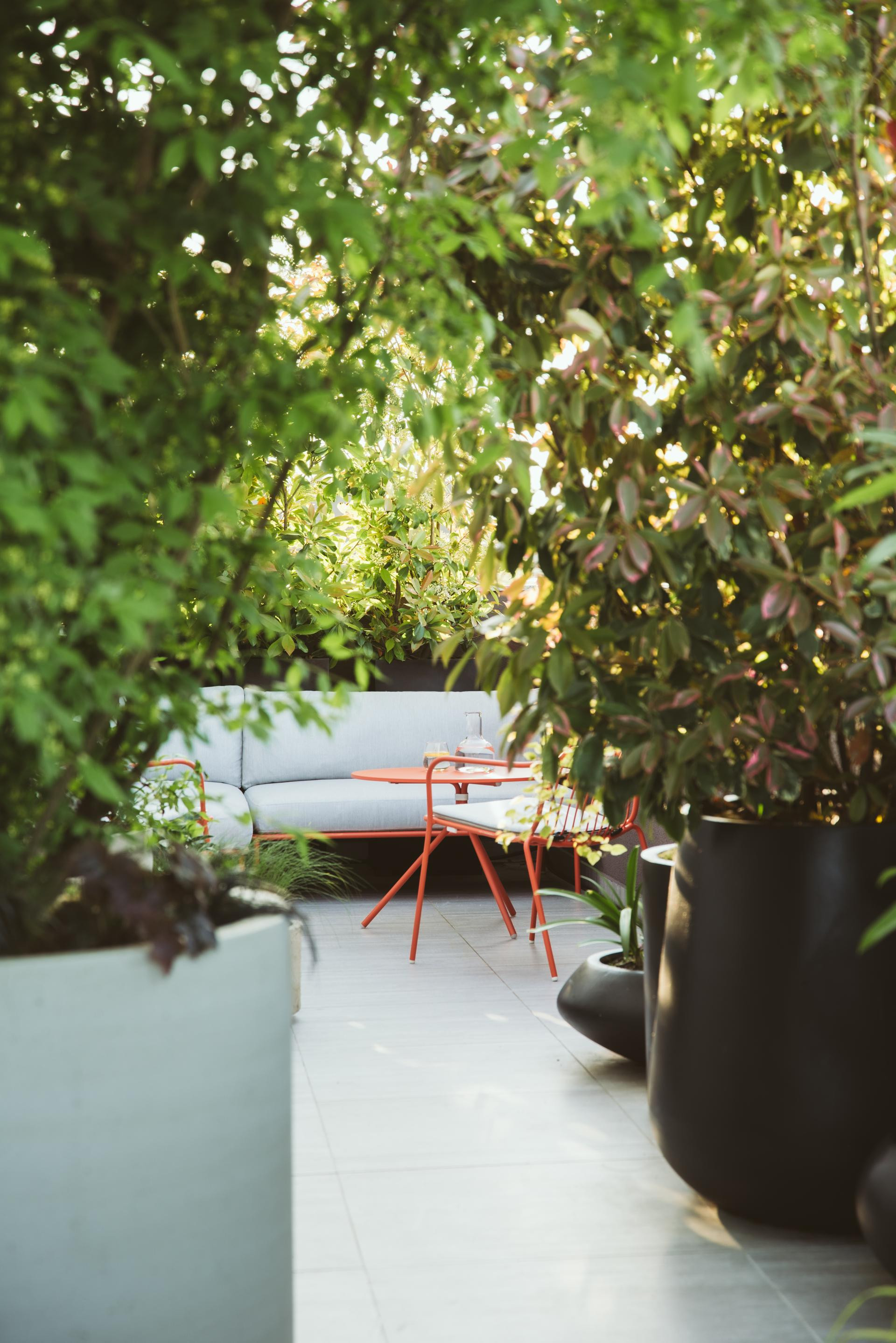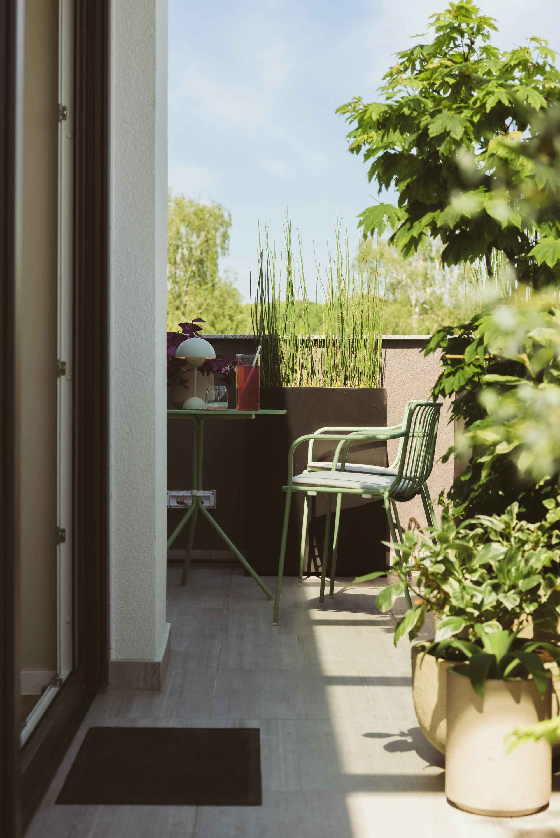 Lijepi komadi vanjskog namještaja savršeno su se uklopili u ovaj zeleni ambijent