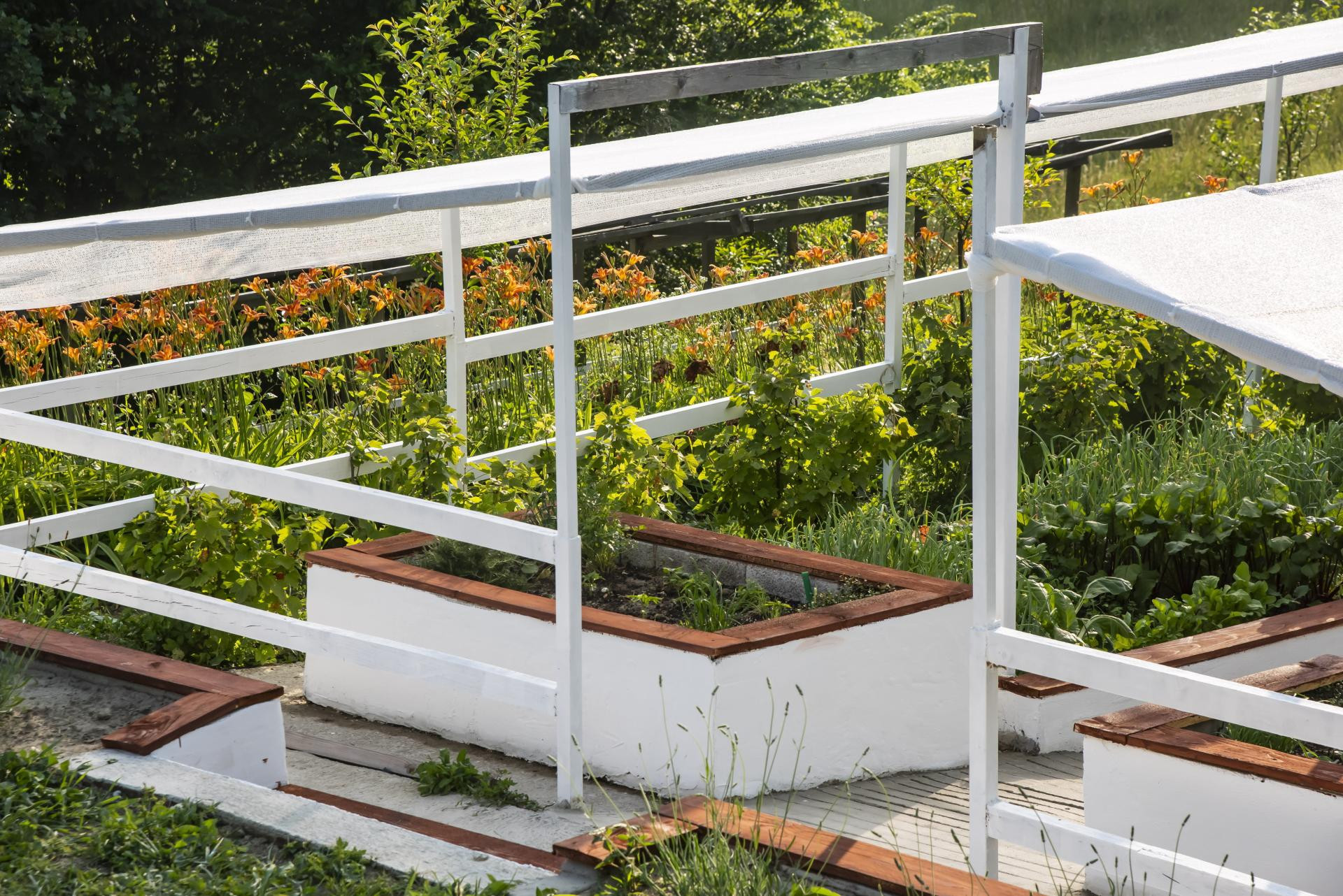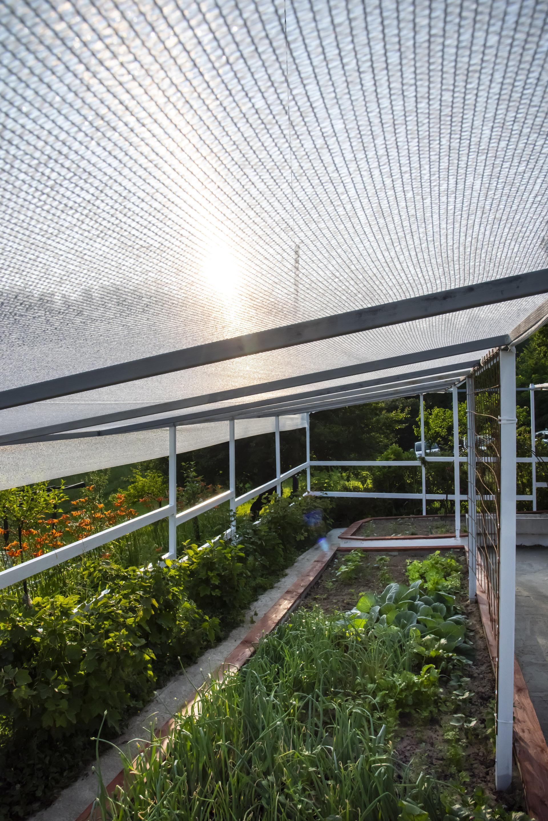 Na cijeli vrt postavila sam bijelu mrežu za zasjenu s 50-postotnom propusnošću svjetla. Bijela boja reflektira sunce i hladi, ali i dalje propušta dovoljno svjetla za fotosintezu. U ljetnim mjesecima mreža snižava temperaturu tla i do 5 Celzijevih stupnjeva, što je presudno za osjetljive kulture poput salate, blitve i mladog špinata. Ovakva mreža štiti i od tuče.