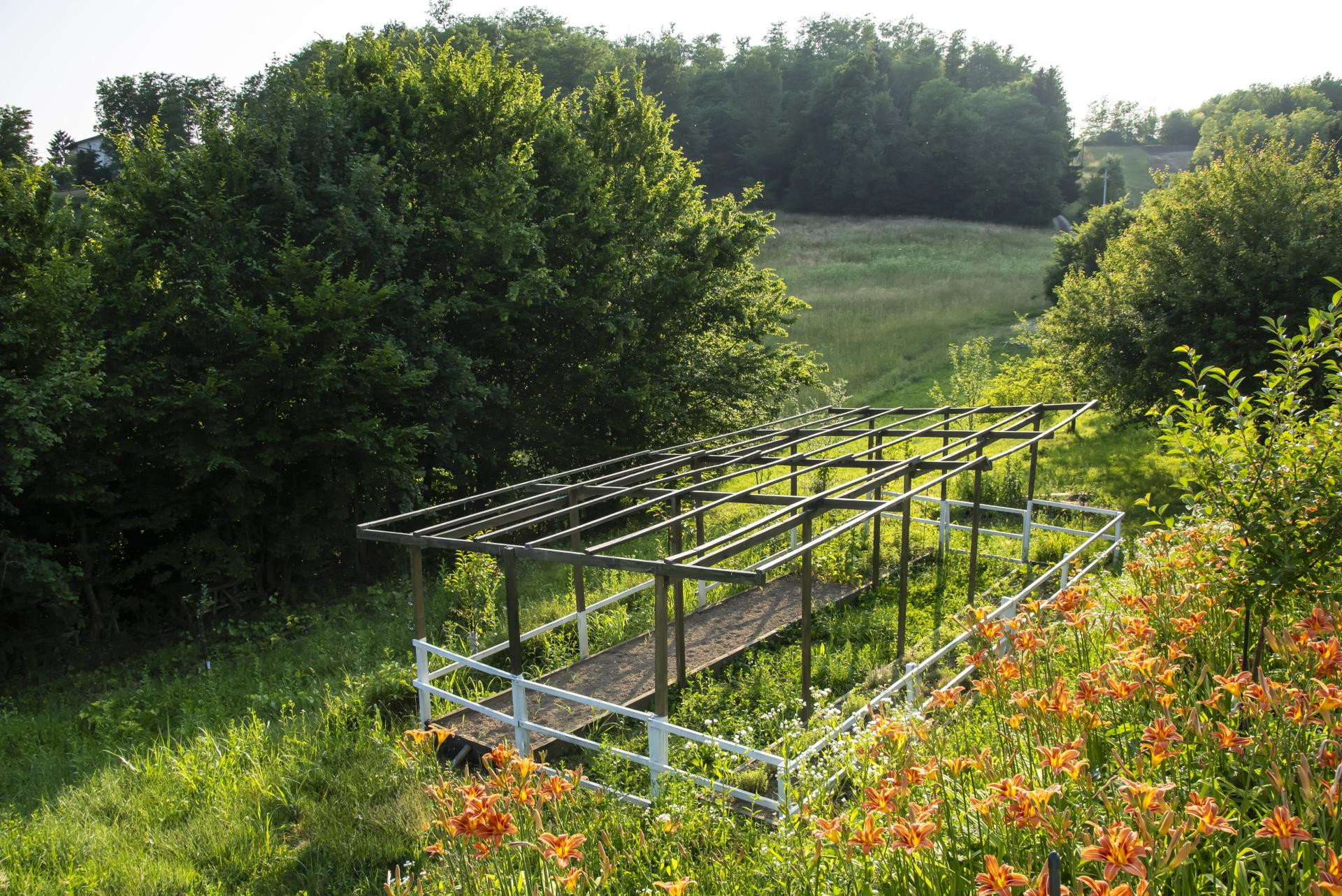 U planu je zatvaranje cijelog vrta folijom ili polikarbonatnim pločama koje bi omogućile cjelogodišnji uzgoj - stvaranje vlastitog staklenika. S obzirom na dimenzije i konstrukciju, to neće biti tipičan staklenik, nego prostor koji zimi zadržava toplinu, a ljeti štiti od žarkog sunca.