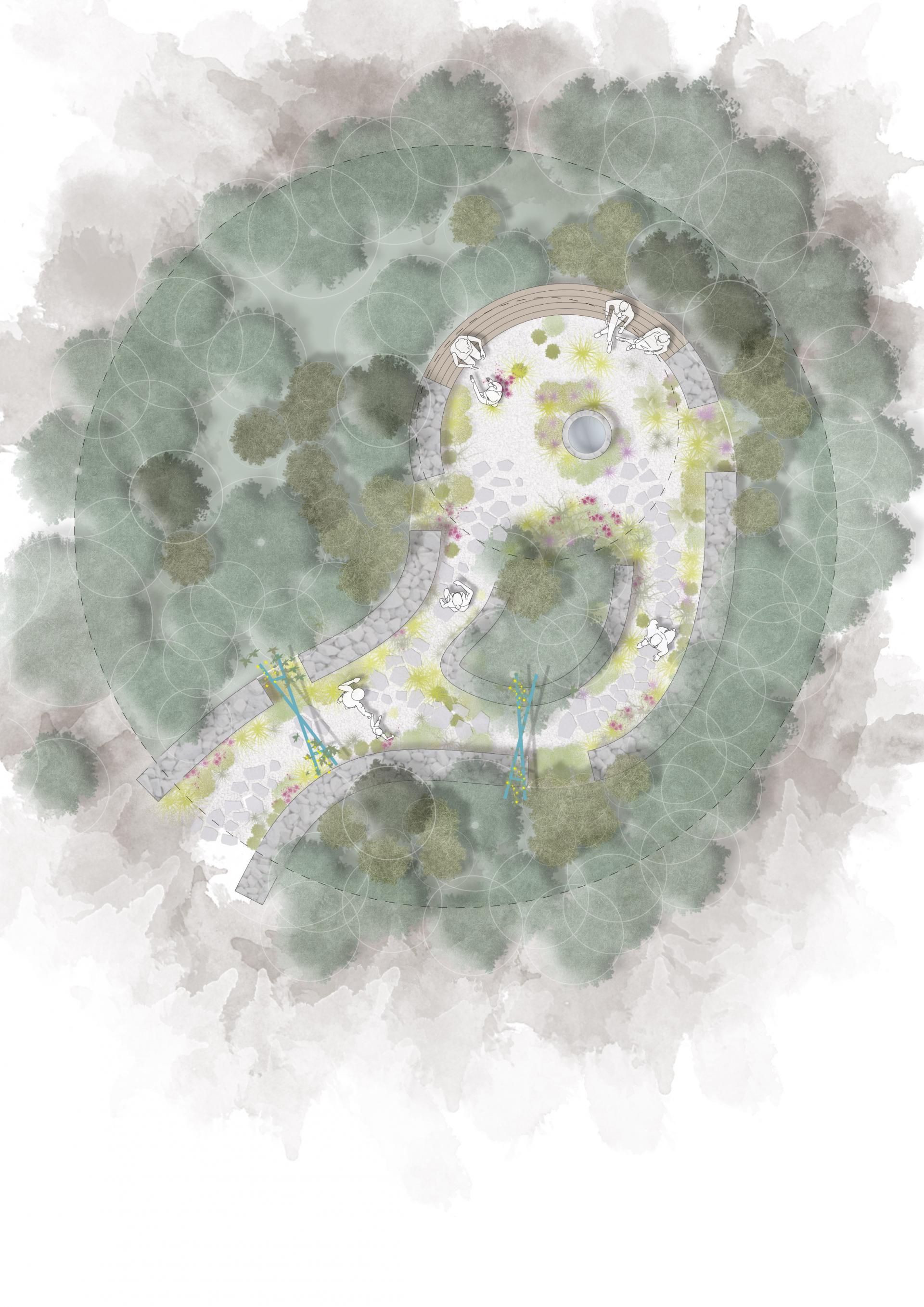 - Posjetitelji doživljavaju ugođaj šetnje između suhozida, po šljunčanoj stazi. Staza se zatim širi i otvara na čistinu s raznobojnim trajnicama, travama i loptastim grmovima.Sredina čistine ograđena je polukružnim suhozidom koji služi kao prostor za sjedenje gdje se može odmoriti i uživati u okruženju. Posebno žarište čistine je "šumsko zrcalo" koje asocira na tipične bunare u kršu - ističe Sara Stojaković.