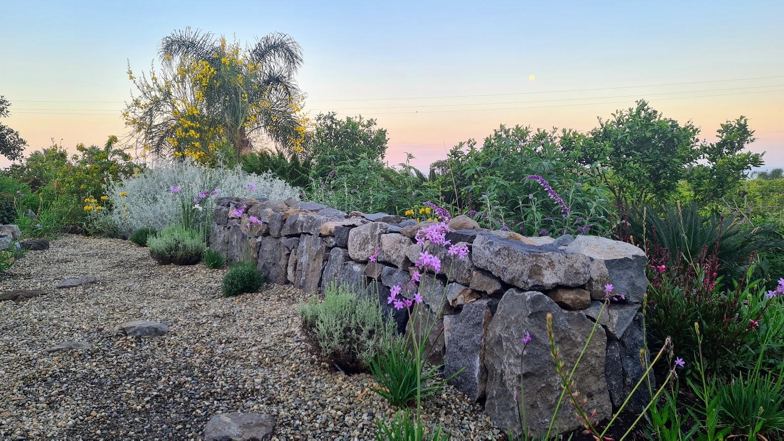 Naziv vrta Shadow and Stone asocira na gusto, sjenovito šumovito područje u kontrastu s osunčanim, kamenitim mediteranskim staništima. Kako je poljoprivreda ustupila mjesto turizmu i drugim namjenama, prirodne šume su se proširile preko nekadašnjih pašnjaka i polja formiranih tradicionalnim tehnikama oblikovanja zemljišta: suhozidima različitih oblika i statusa očuvanosti. To je, objašnjava Sara, stvorilo vrlo specifično okruženje koje je nadahnulo vrt: sjenovito šumovito područje u kontrastu s osunčanim, kamenitim mediteranskim staništima i suhozidima.
