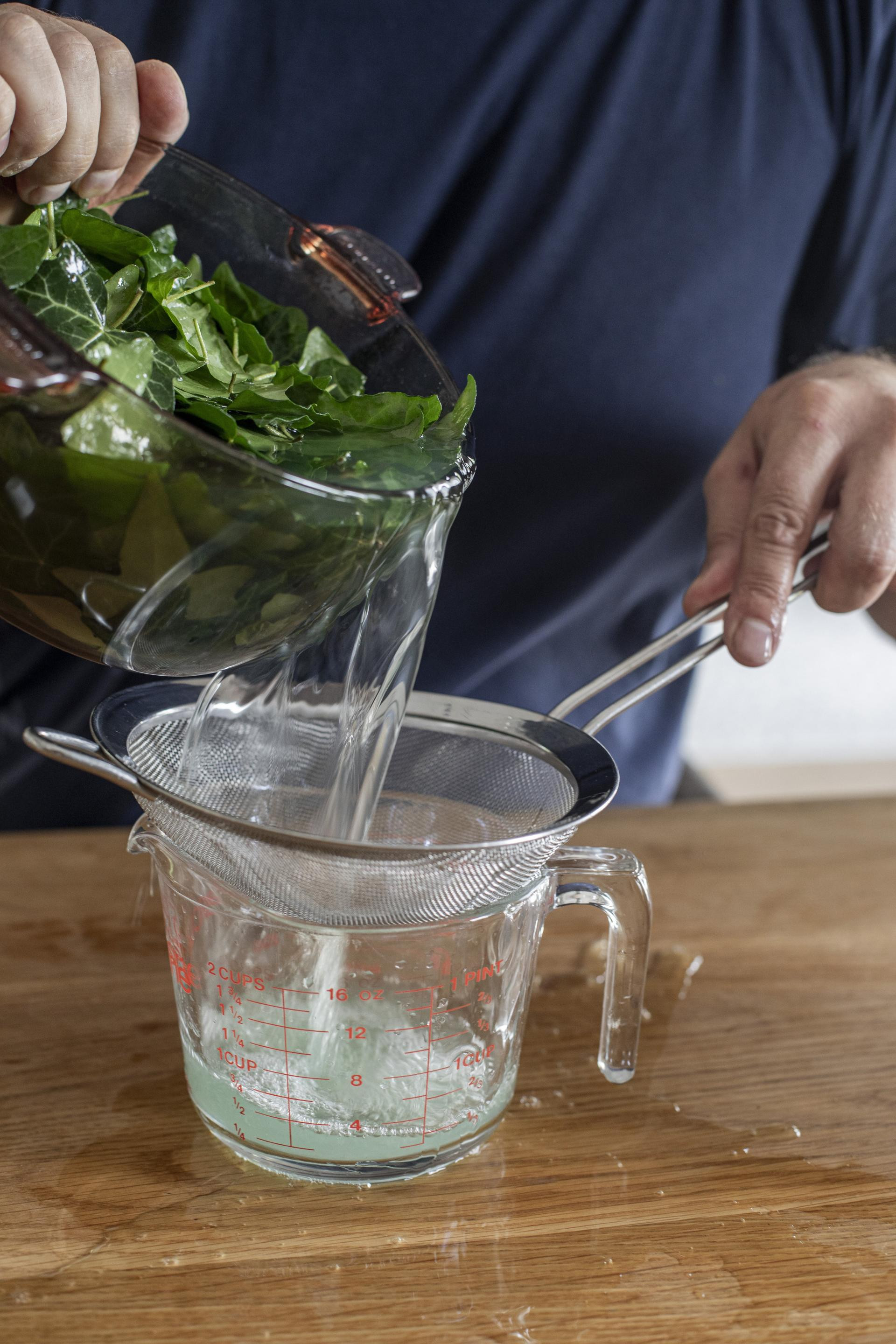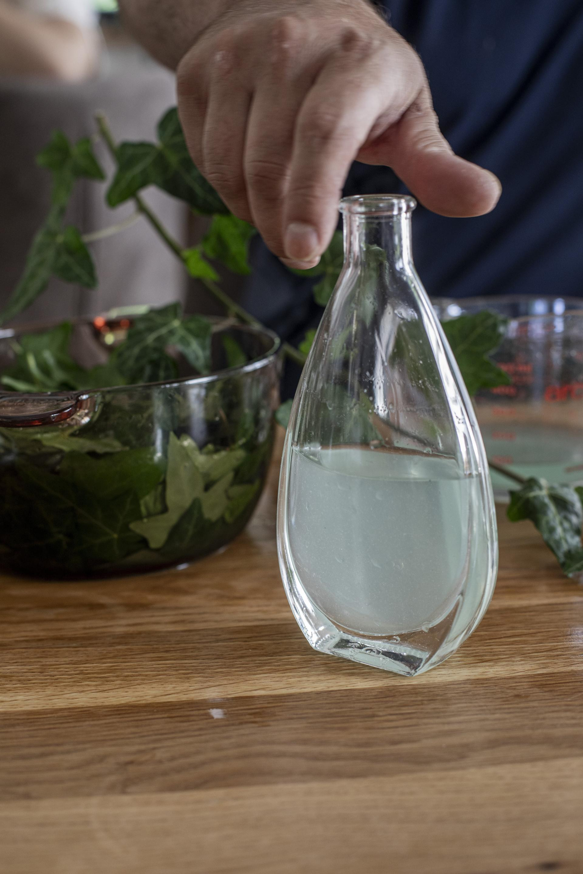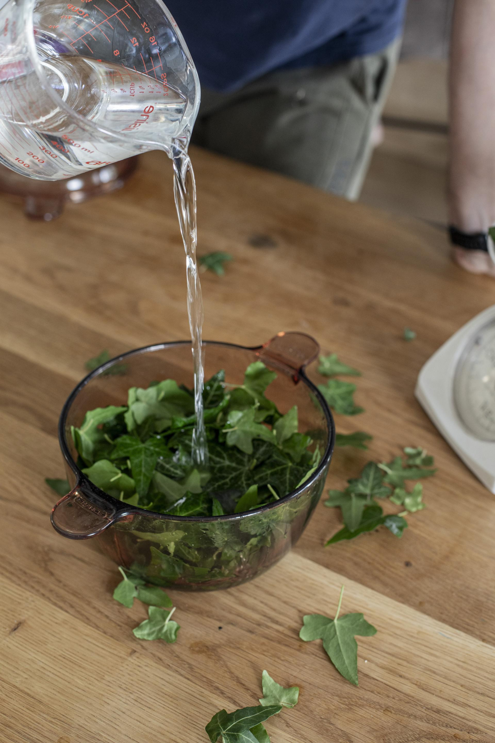 Korak 1: Od grana odvojite oko 100 grama čistih listova bršljana. Ako želite više tinkture, umnožite količine alkohola i listova.