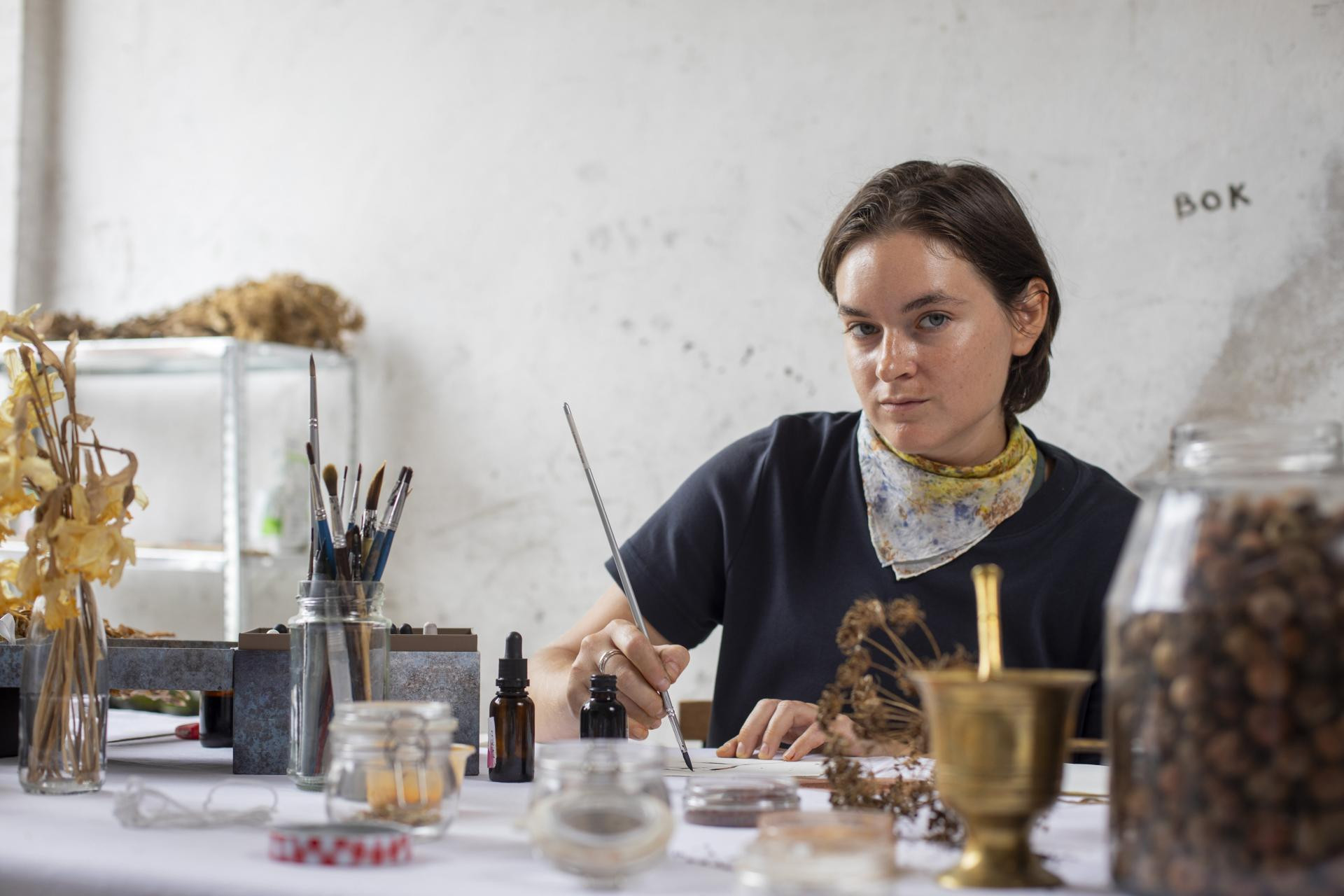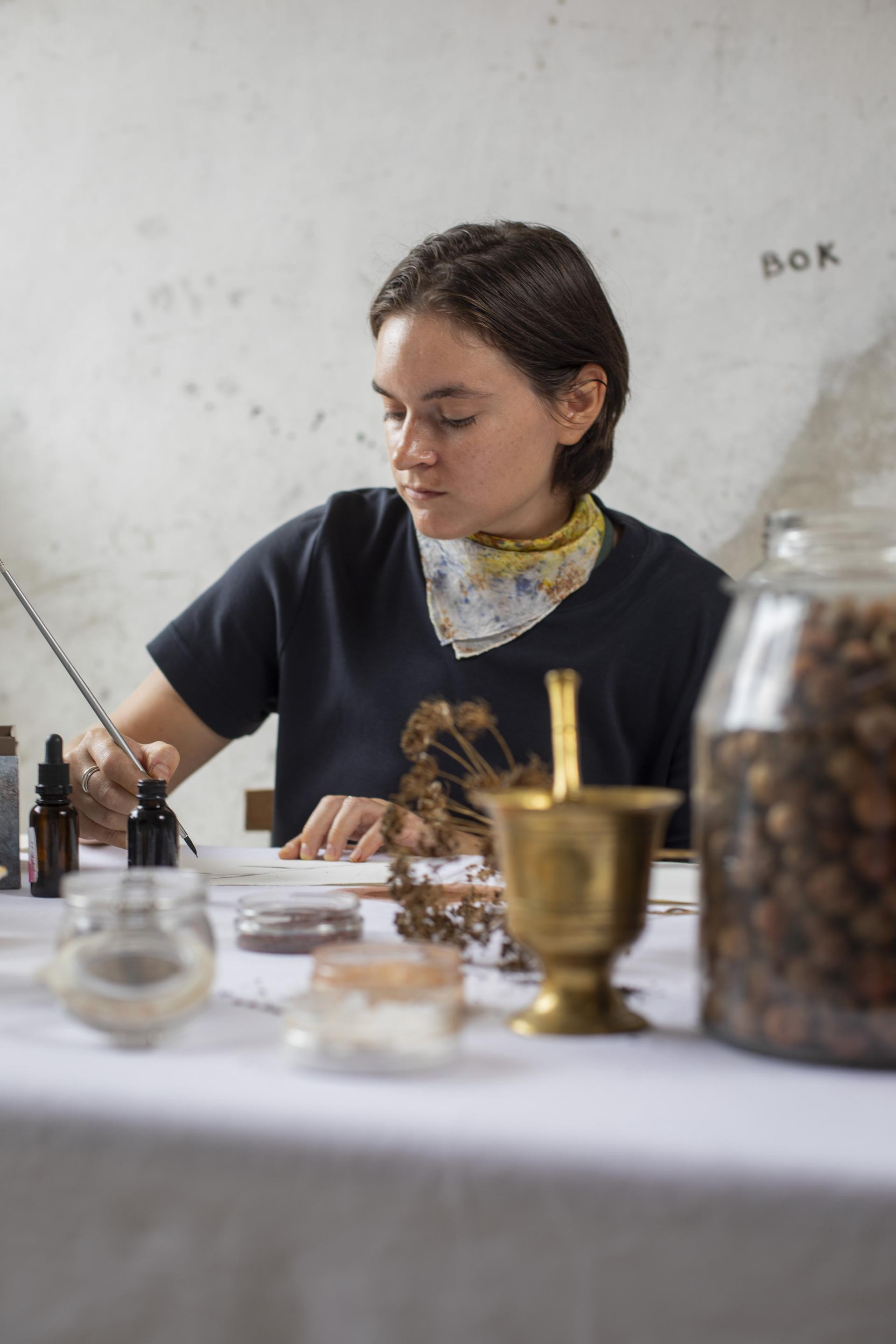 Vedranin pristup bojadisanju nije samo tehnički, već duboko osoban i promišljen. Sama sakuplja biljke, priprema tkanine i ukrašava marame koristeći specifična bojila. Lokalni izvori su joj prioritet – ne samo zbog dostupnosti, već i zbog etičkog odnosa prema okolišu. Njezin rad utjelovljuje sporost, pažnju i poštovanje prema prirodi, a radionice koje vodi postaju prostor susreta, učenja i zajedničkog stvaranja. Vedrana mi je pokazala da iza svake marame, svakog pigmenta i svakog poteza kista stoji znanje, iskustvo i ljubav prema zanatu. I da prirodne boje, koliko god bile nježne i poetične, imaju svoju strogu kemijsku logiku.