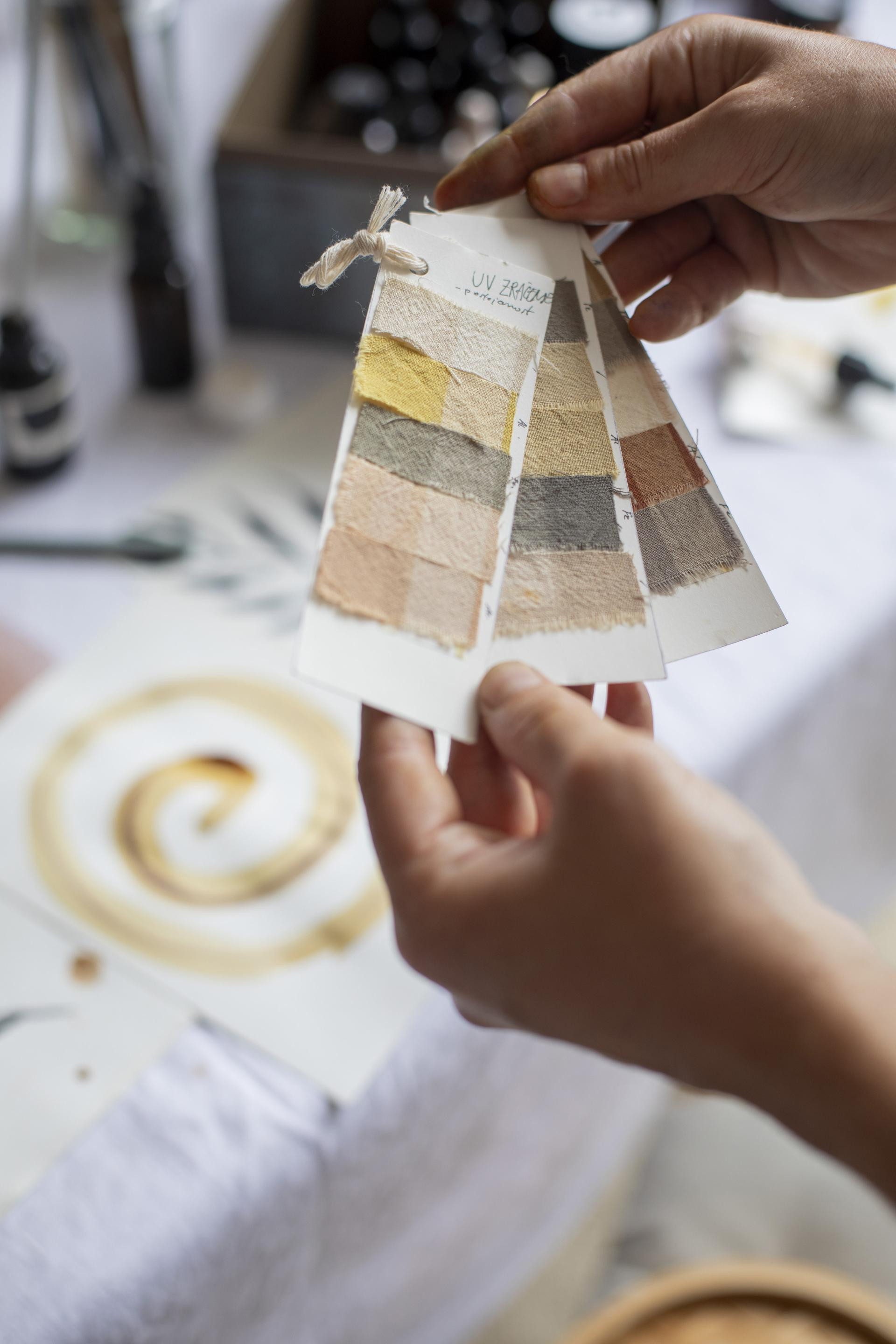 Vedrana Peček opisuje bojadisanje kao vještinu kemijskog izdvajanja i vezanja bojila iz prirodnih izvora – biljnih, mineralnih ili životinjskih – uz pomoć močila, tvari koja služi kao fiksator. Močilo osigurava da boja ostane postojana: stabilna na pH vrijednosti, otporna na UV zračenje i pranje, uz minimalno izbjeljivanje. Poznavanje kemije ključno je za razumijevanje zašto određene biljke daju bolje rezultate, a Vedrana je svoja istraživanja provodila u laboratoriju fakulteta, koristeći specijalizirane uređaje za analizu i testiranje materijala.