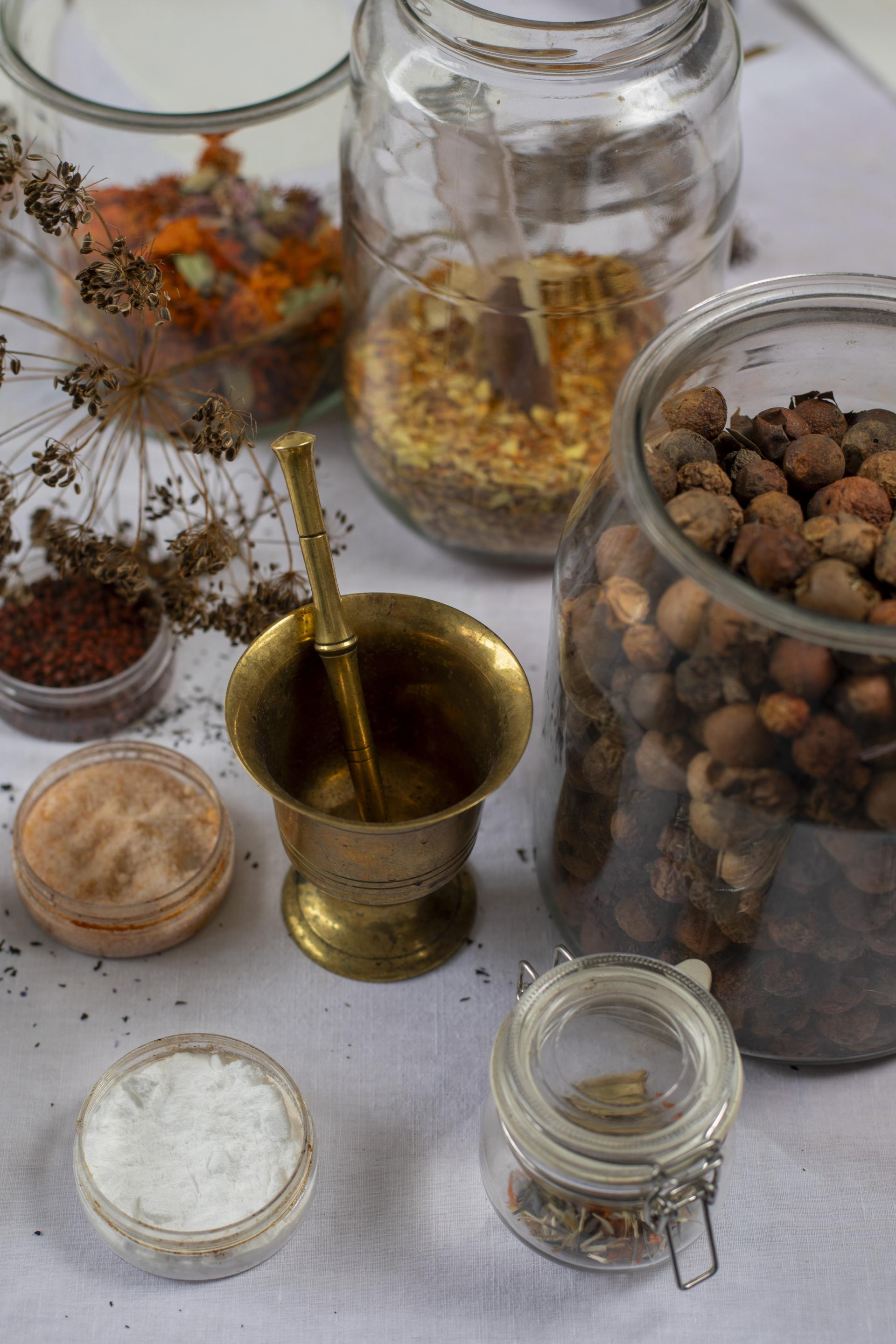 1. alaun (KAl(SO₄)₂·12H₂O) – bijeli prah koji se koristi za postizanje svijetlih tonova i visoke otpornosti na sunčevu svjetlost,
