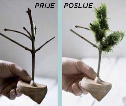 Uzmite suhu grančicu, te je pomoću vate utisnite o dno razbijenog glinenog lončića.