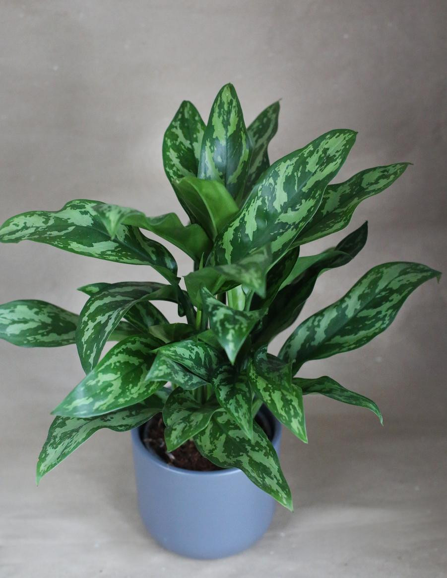 Među šarenim Feng Shui biljkama ističe se i ‘Tricolor’ aglaonema, poznata i kao kineska zimzelena biljka, čije lišće krasi nježan, pjegavi uzorak u više tonova.