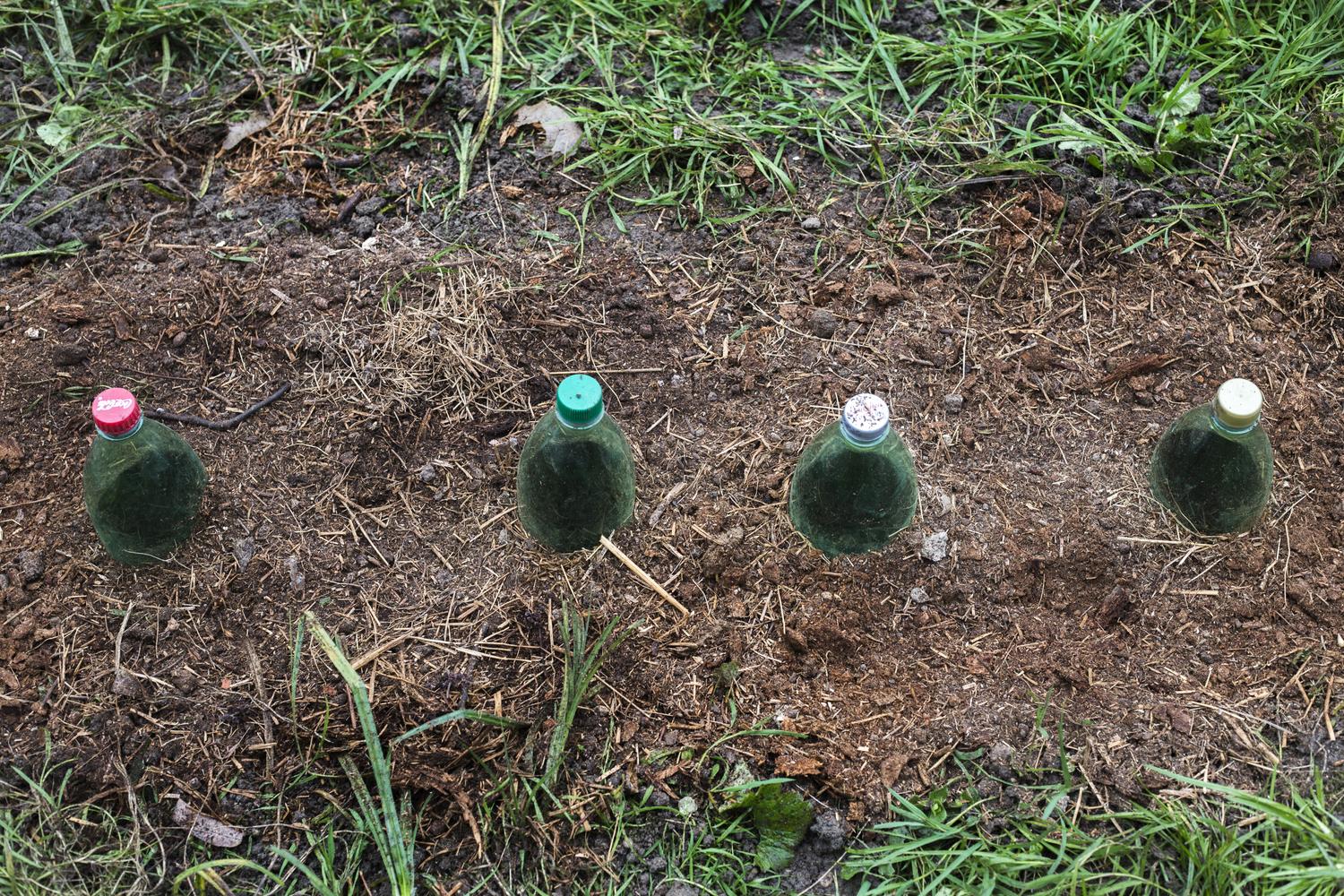 Na njih vratite zemlju, koju ste iskopali, tako da boce ukopate sa svih strana. Kada ste to napravili, izvadite boce. Od svake će vam ostati okrugla rupa u zemlji, a sve rupe bit će iste dubine.