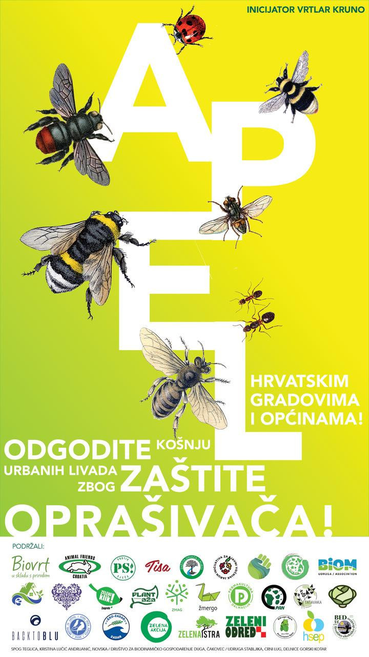 Ovih dana na društvenim mrežama kruži apel koji je napisao i potpisao Kruno Pekas, hrvatski ekovrtlar, ekoaktivist, blogger, florist i krajobrazni dizajner, u javnosti poznatiji kao ‘vrtlar Kruno‘. U apelu poziva gradove i općine u Republici Hrvatskoj da odgode košnju urbanih livada. Razlog - zaštita ugroženih oprašivača.
