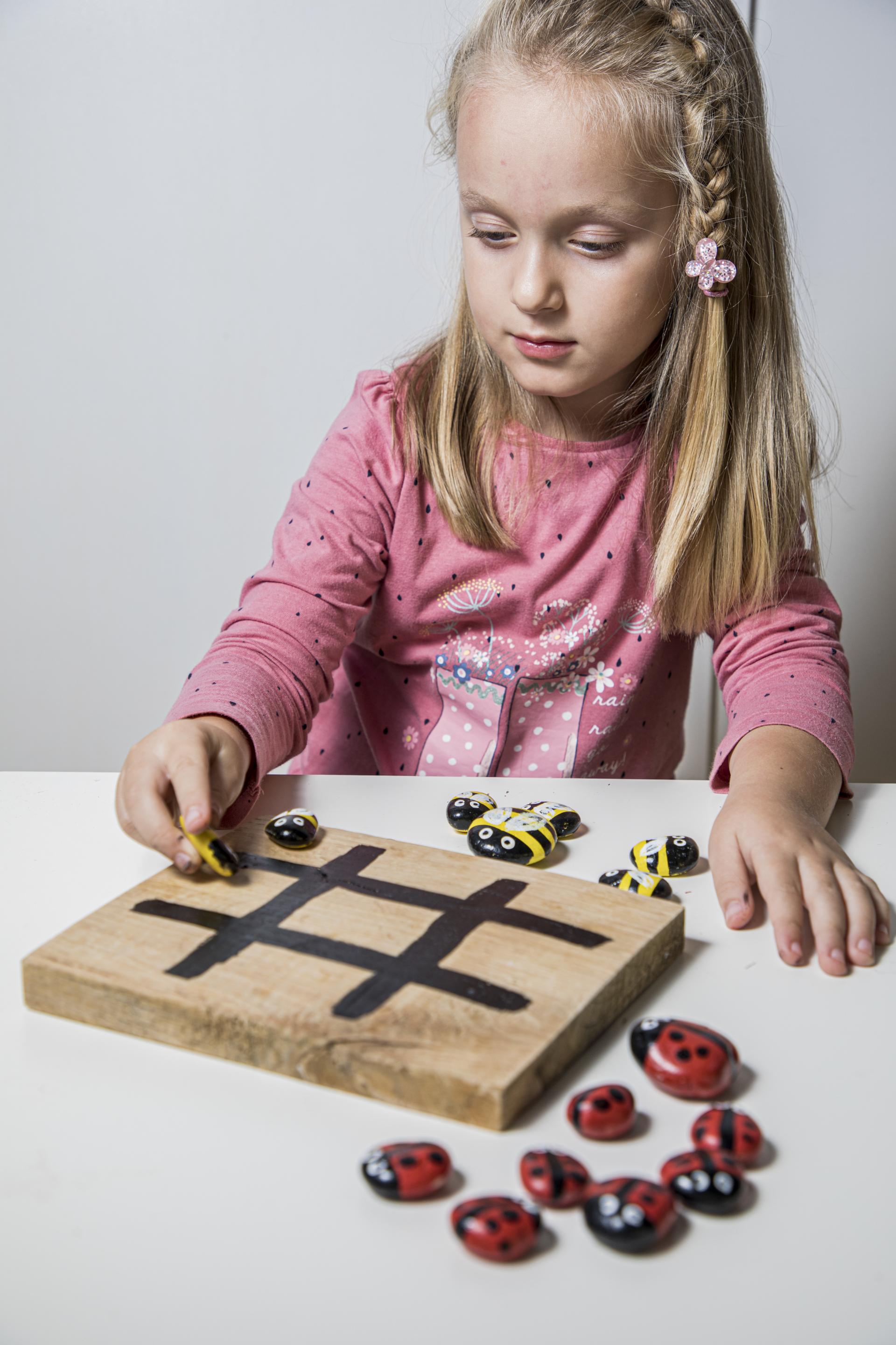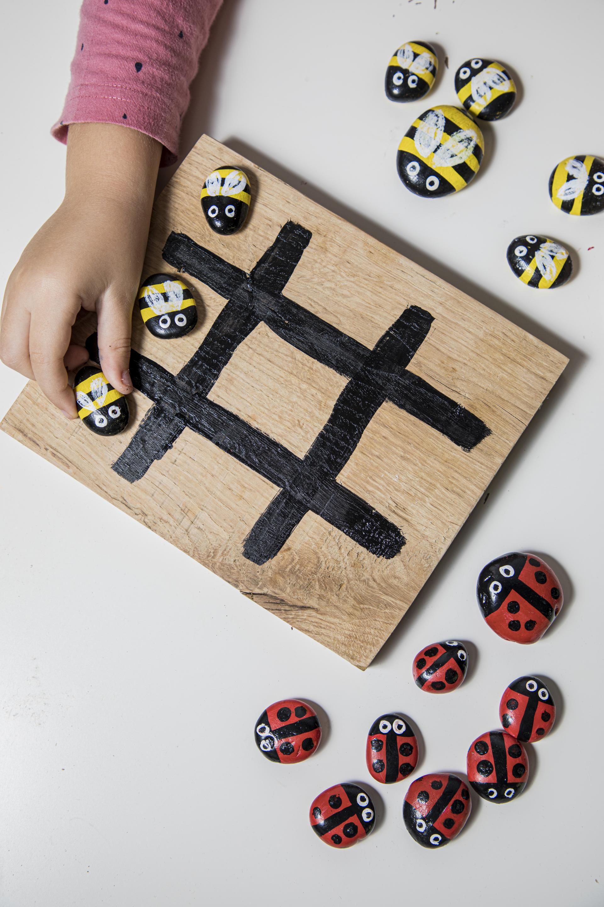 Pomozite im izraditi vrlo jednostavnu društvenu igru “križić – kružić”, u njima zanimljivom izdanju – “križići” će biti bubamare, a “kružići” pčelice. U nastavku vam donosim ideju kako je u svega par koraka to jednostavno učiniti.