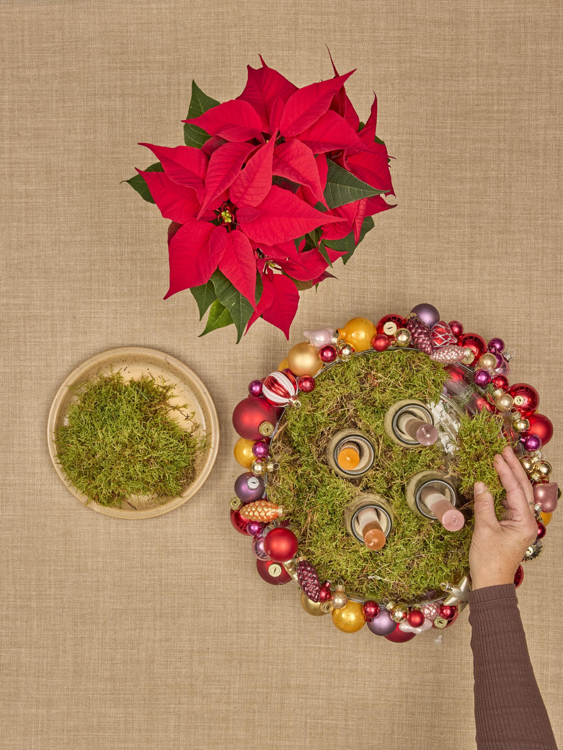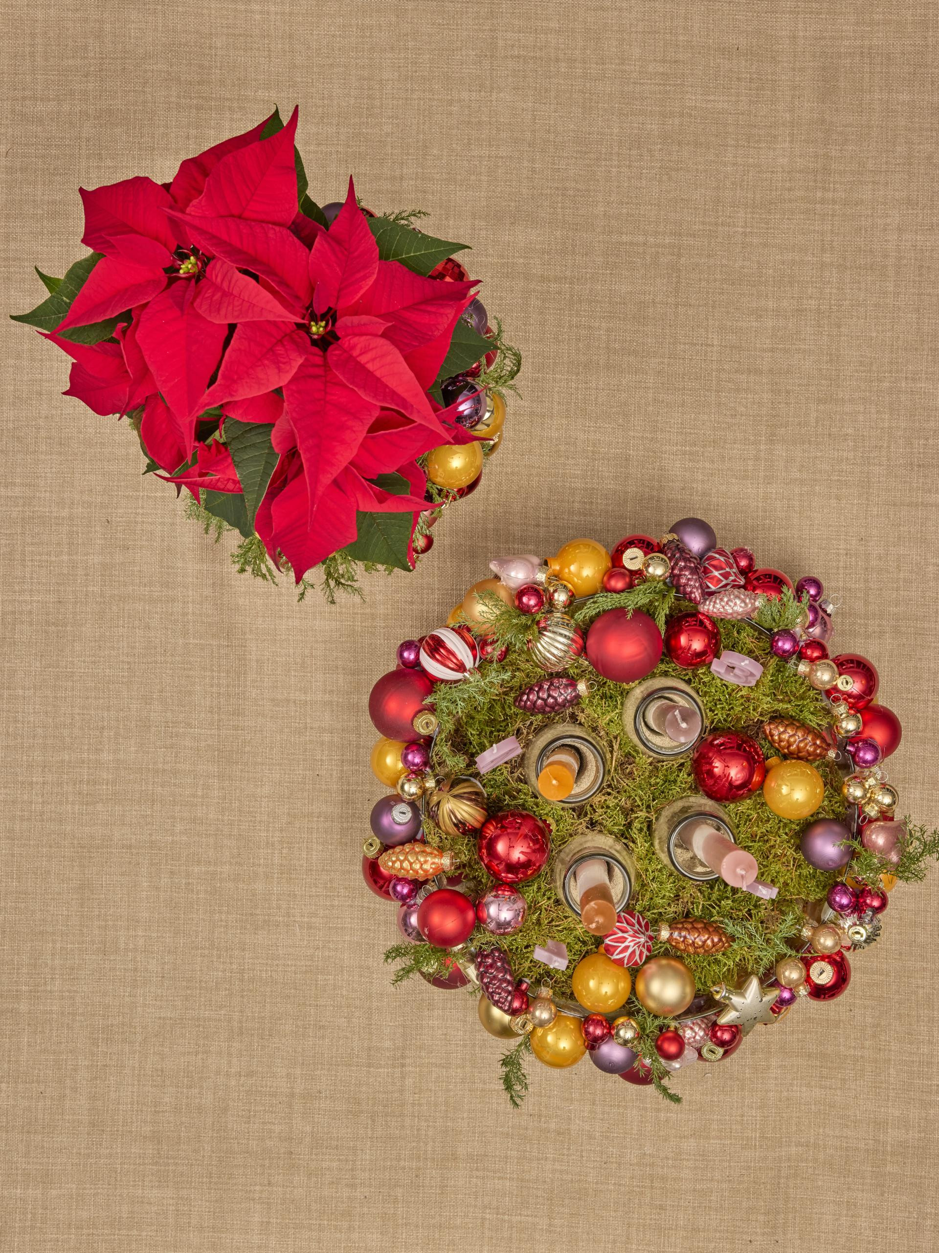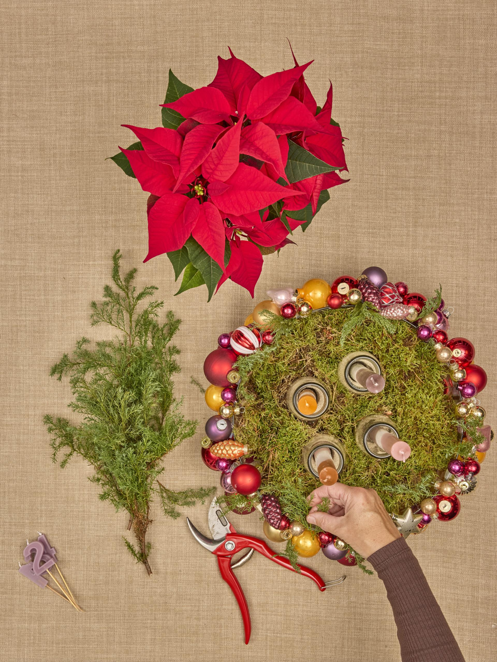 Božićna zvijezda, sa svojim raskošnim braktejama i gotovo grafičkim linijama, već je godinama simbol prosinca. U DIY pristupu ona dobiva novu ulogu: postaje središnji element adventskog vijenca koji kombinira suvremenu estetiku i klasičnu blagdansku simboliku.