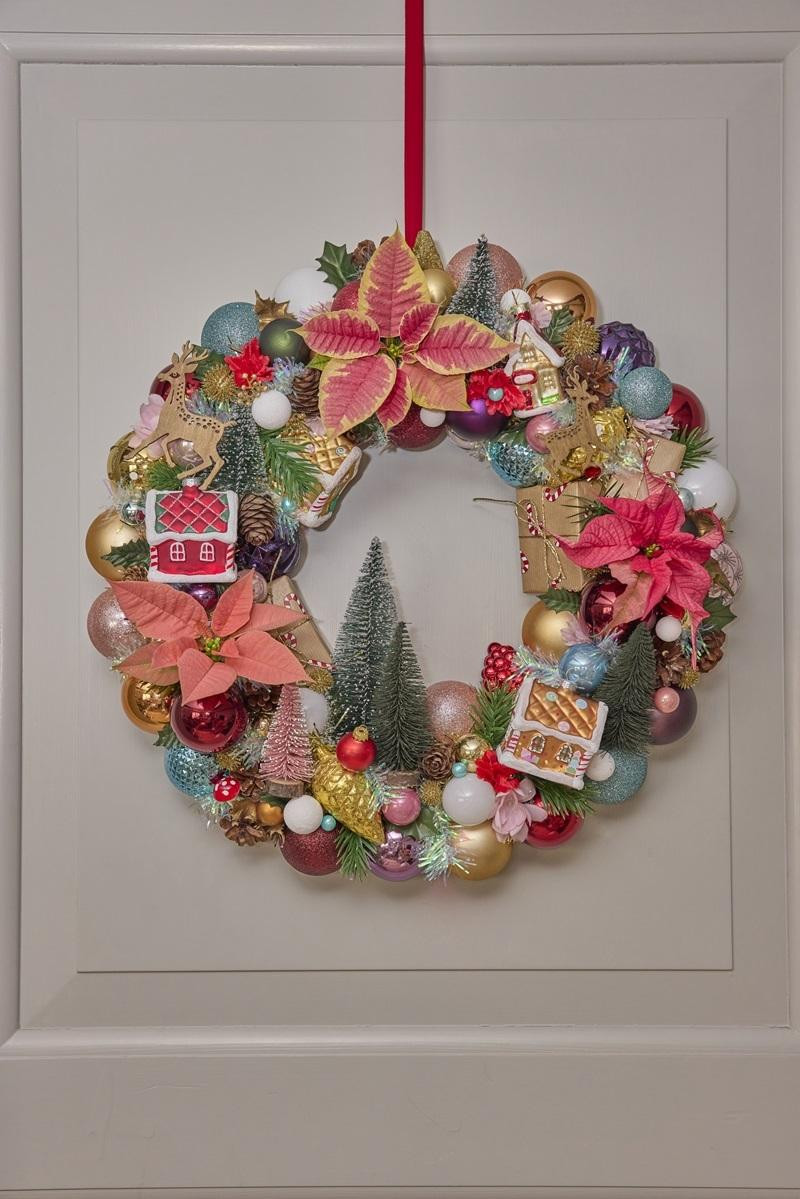 U ovom raskošnom adventskom aranžmanu, veličanstveni vijenac i bogato ukrašen lonac za jarko crvenu božićnu zvijezdu čine skladnu cjelinu. Oba su bogato ukrašena sjajnim, šarenim kuglicama, mahovinom i grančicama kleka, stvarajući pravi blagdanski ugođaj.