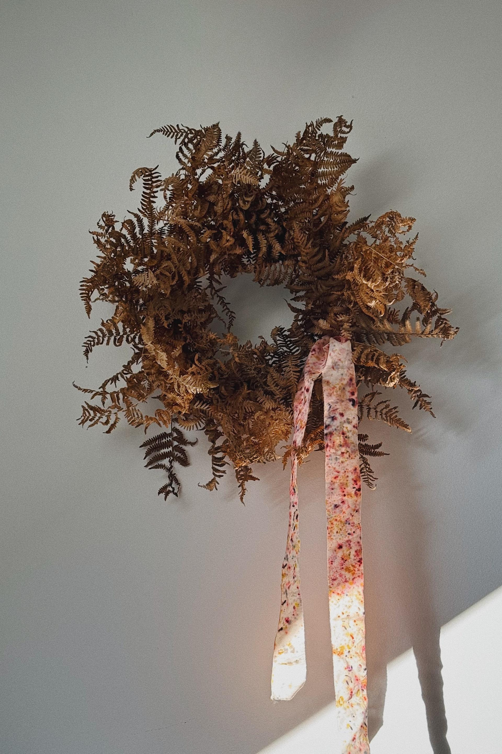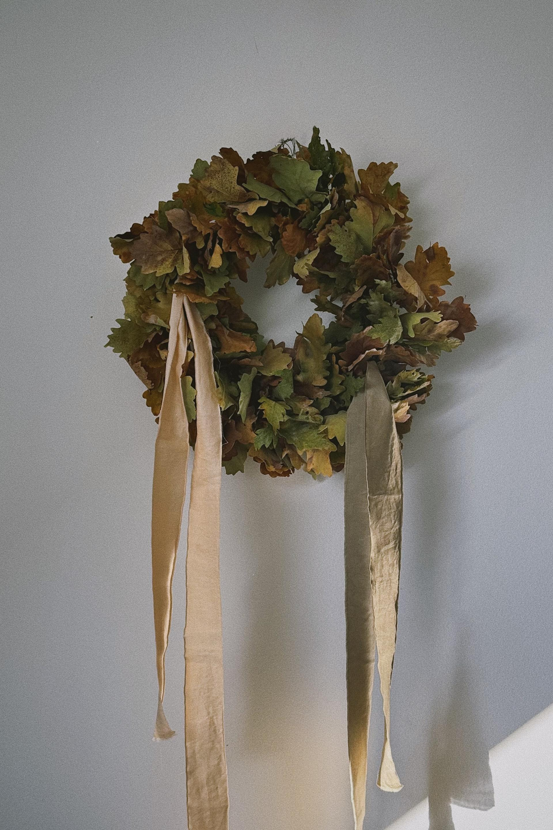Efektan vijenac možete napraviti zaista od svega. Suha paprat, zanimljivo lišće, mahovina, suhe grane (ariš!)… uz malo znanja i truda mogu postati centralna točka u vašem domu. Jedan takav bakreni ljepotan od paprati dočekuje i goste na mojim ulaznim vratima. Sve možete prikupiti u šetnji šumom pa je užitak time veći. Oni kojima ipak treba malo ukrasa, izradite sami svoje trake od stare svilene košulje koju ionako niste godinama obukli.