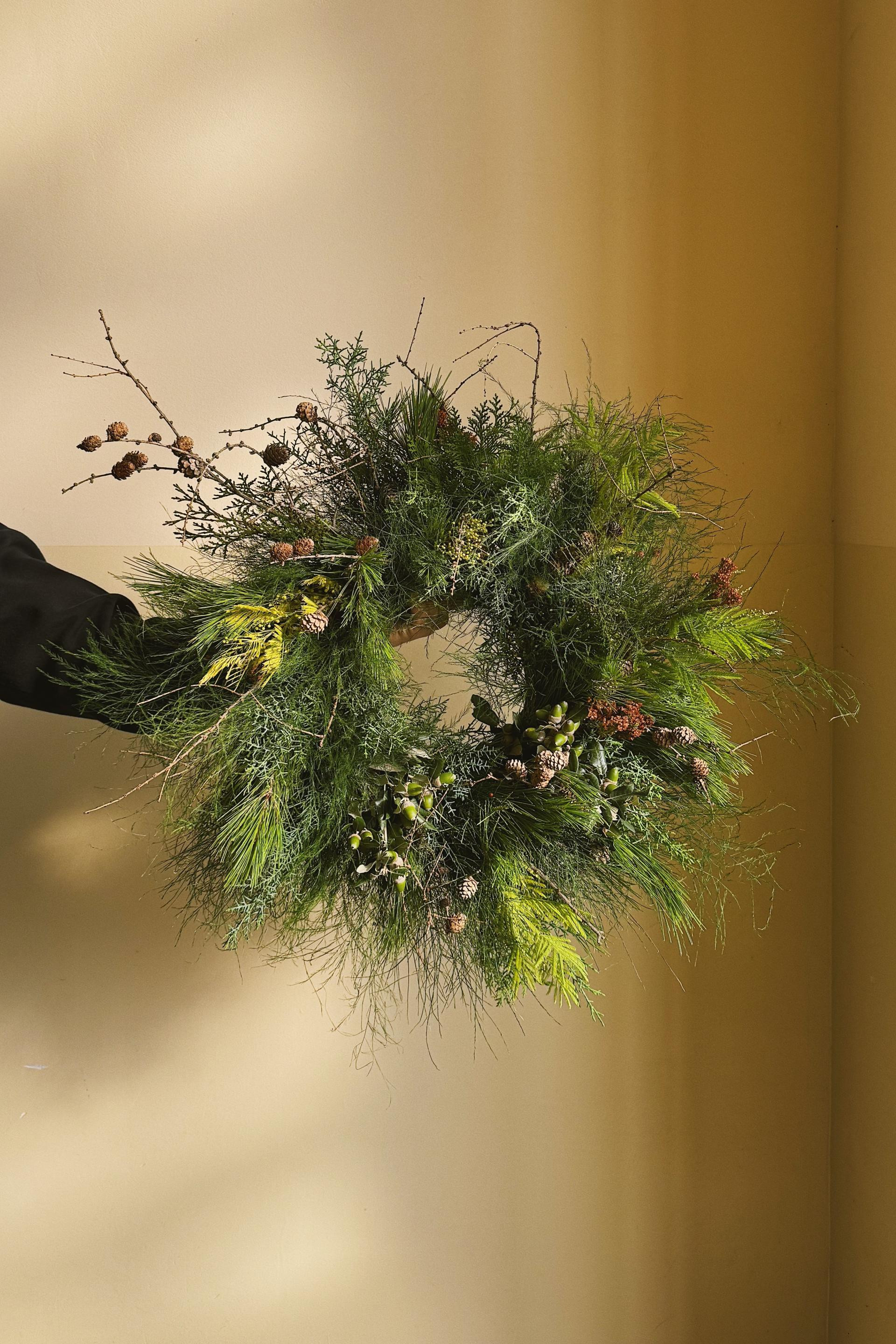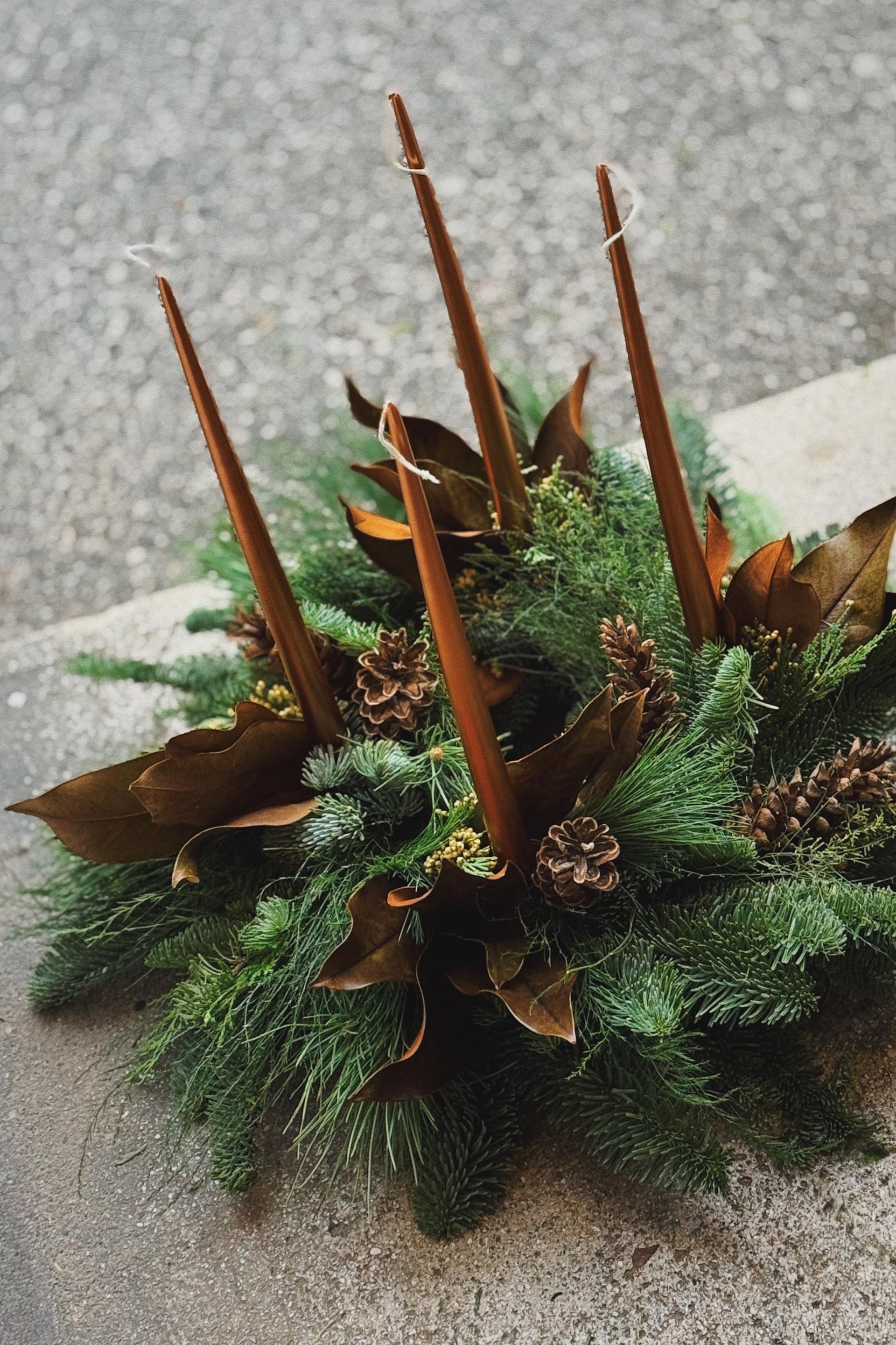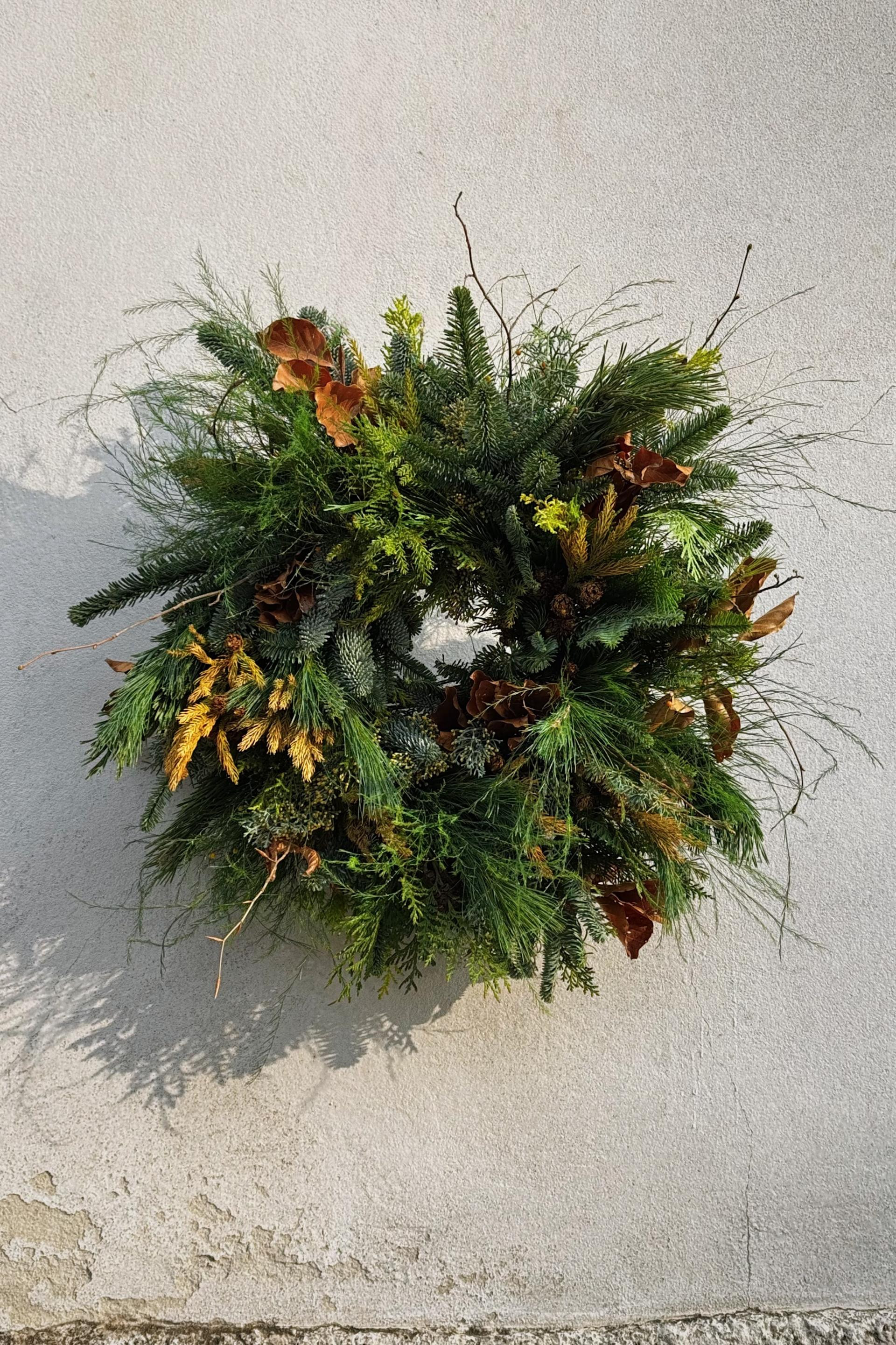 Vjerujem da se kupci, ako ne računamo kampanjce i padobrance, informiraju i prate zanimljive brendove i već znaju kakvu estetiku gdje mogu očekivati. Iz tog razloga uglavnom imam odriješene ruke da radim “po svom”. Meni je, kad pričamo o crnogorici i blagdanskim dekoracijama, prirodnost i miris jednako važan kao i izgled aranžmana/ukrasa. Veliki sam ljubitelj “šumske” estetike, bogate teksture razne crnogorice, punk nota neposlušnih grana, bakrena boja suhih listova (magnolija?!), možda koja šiška ili traka. Estetika koja je dosta svestrana i odgovara mnogim prostorima.