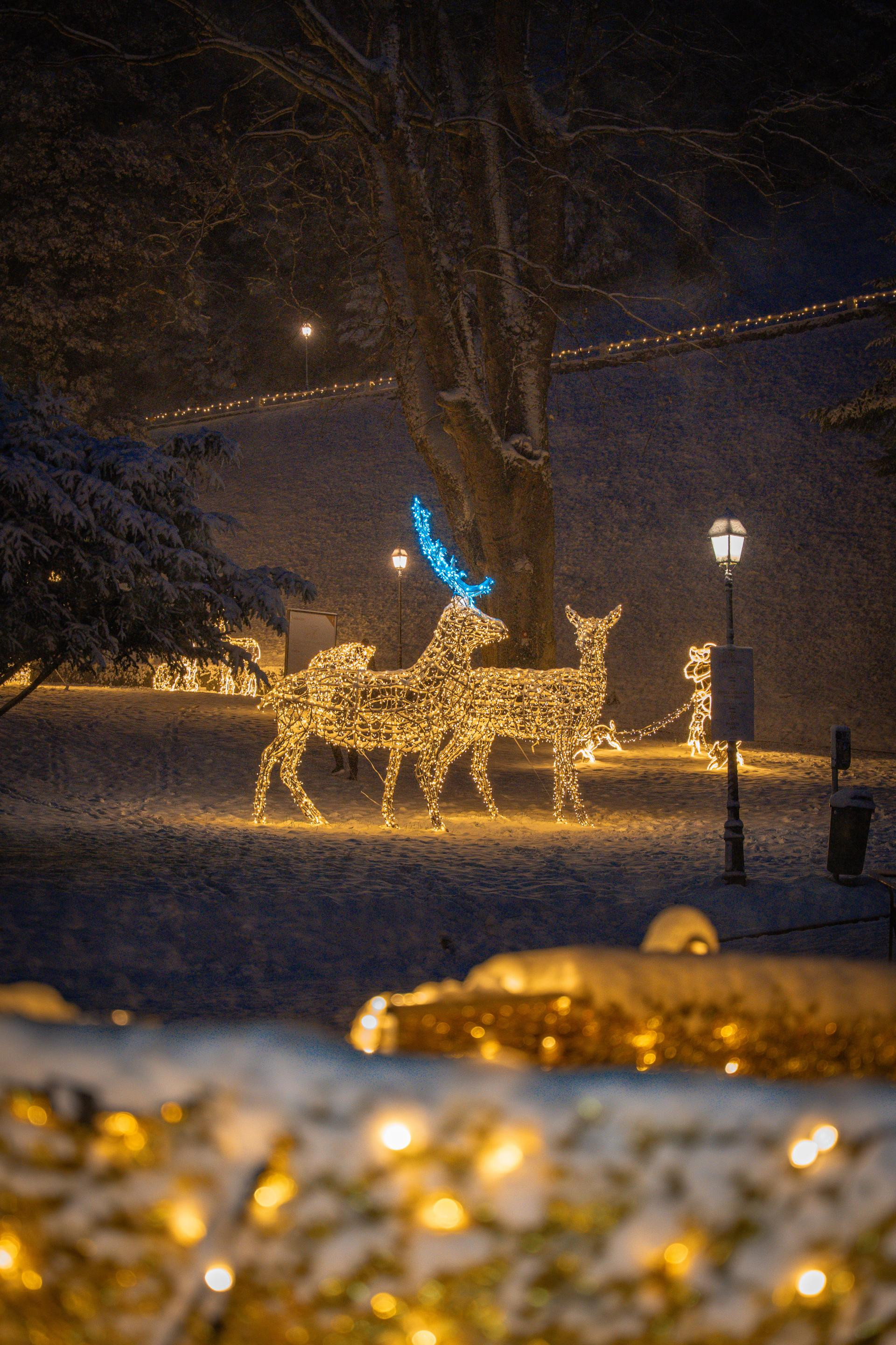 Izložba je tijekom blagdanskog razdoblja dodatno obogaćena novim svjetlosnim instalacijama, zbog kojih večernja šetnja perivojem i dvorcem postaje još čarobnija i sadržajnija. Novi motivi – svjetlosni klavir, srna, jelen i lane – diskretno se pojavljuju među stablima i uz šetnice, stvarajući osjećaj kao da se priroda i dvorac zajedno bude u svjetlu, a glazbena podloga u perivoju dodatno naglašava romantičnu blagdansku atmosferu. Osvijetljeni puteljci vode posjetitelje kroz prostor u kojem se skladno spajaju legenda, povijest i zimska mašta, stvarajući doživljaj koji oduševljava djecu, ali i odrasle željne trenutka bijega od svakodnevice.