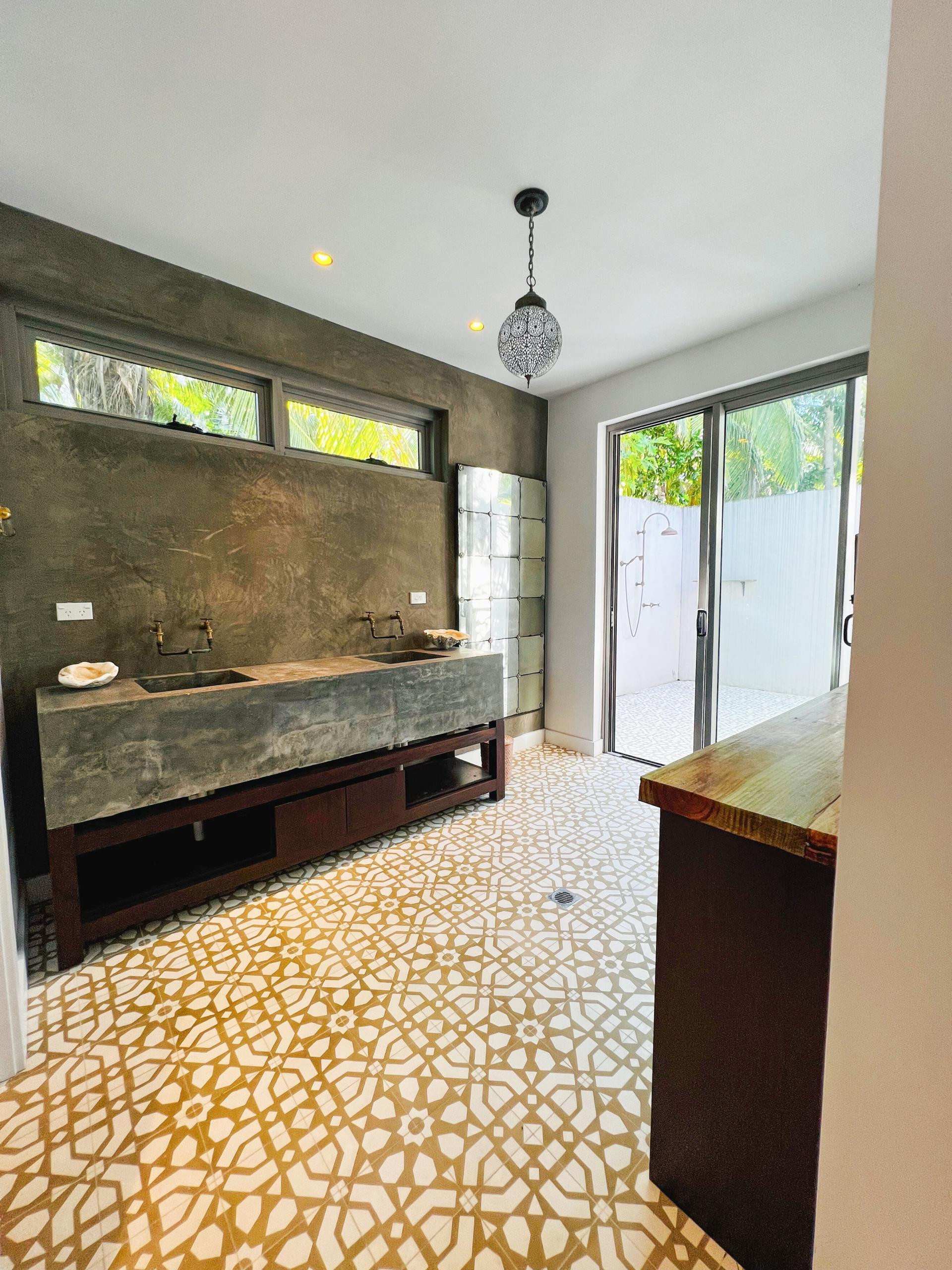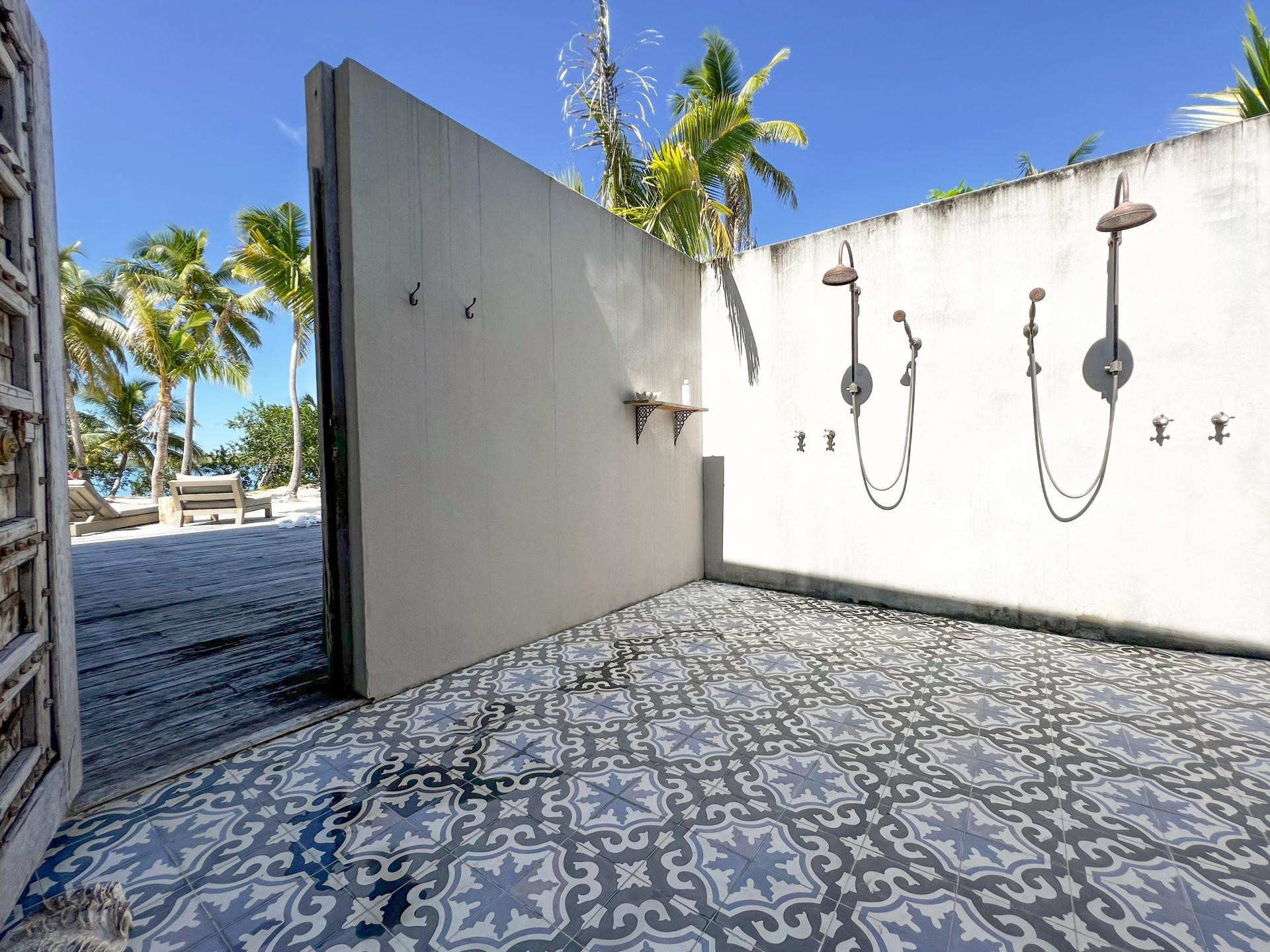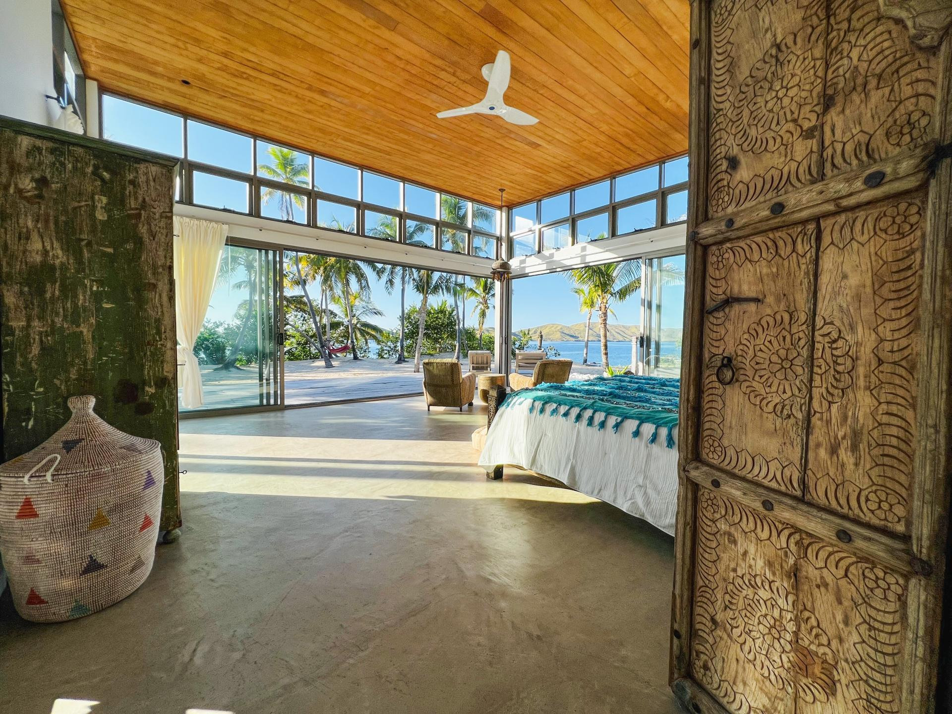 U vili su smještene četiri prostrane spavaće sobe, svaka sa zasebnom kupaonicom (i to na otvorenom, što omogućuje jedinstveni osjećaj povezanosti s prirodom. Glavni dnevni prostor otvara se prema beskonačnom pogledu na more, a u kući se nalaze i moderna kuhinja, prostor za jogu, biblioteka i otvoreni lounge prostor s blagovaonicom. Uz glavnu vilu, na otoku su i dvije dodatne stambene jedinice sagrađene od brodskih kontejnera - suvremeno uređene, idealne za goste, osoblje ili udoban radni prostor.