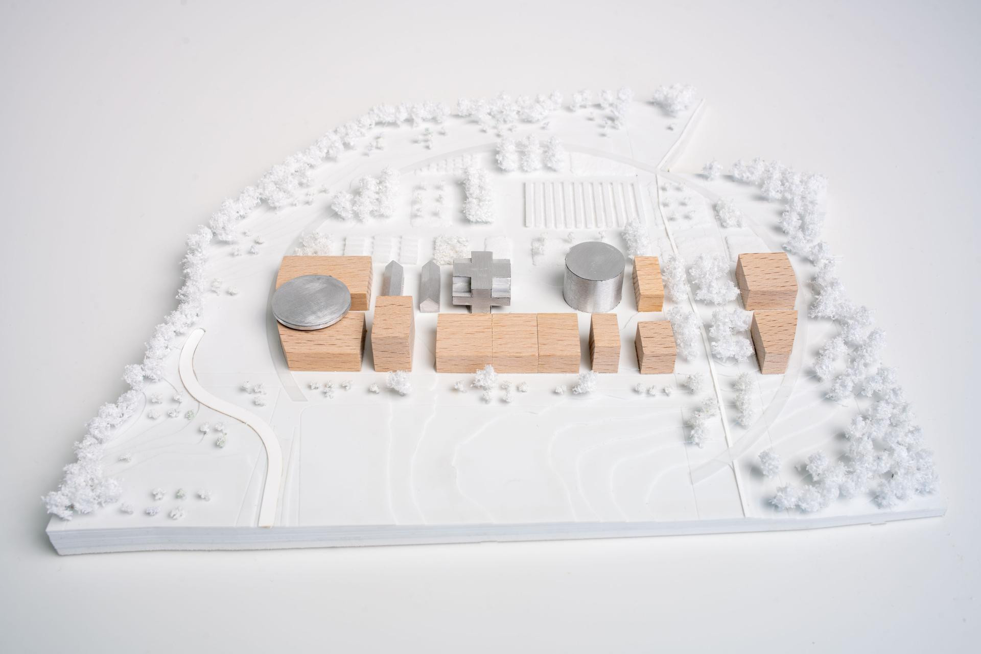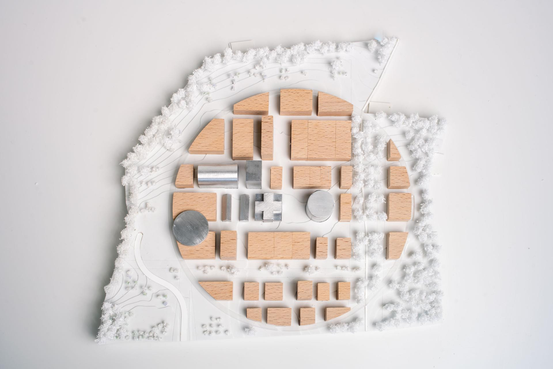 Središnji element je veliki kružni oblik, strukturiran pomoću dviju pomaknutih osi koje prostor kampusa organiziraju u povezane, ali zasebne zone. Takva geometrija osigurava koheziju, a istovremeno dopušta otvorenost prema okolnom krajoliku. Unutar ovog okvira, MVRDV predviđa mrežu laboratorija, stambenih prostora i kulturnu zgradu koja služi kao most između znanstvene zajednice i javnosti.