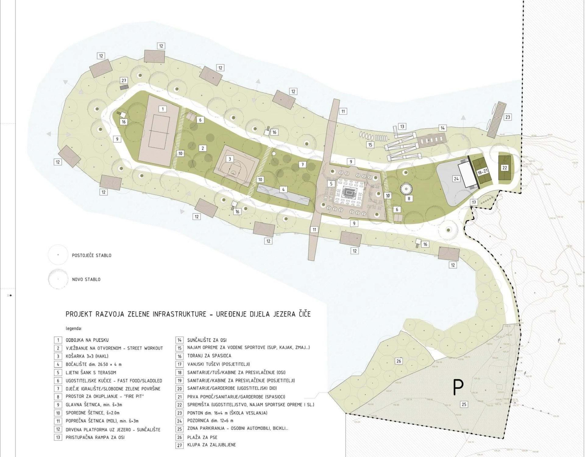 Izrađeno je i idejno rješenje uređenja plaže – tzv. “Čič Beacha”, a projekt uređenja zelene infrastrukture obuhvaća izgradnju brojnih sadržaja poput odbojke na pijesku, street workout zone, košarkaškog igrališta, ljetnog šanka s terasom, dječjeg igrališta, prostora za druženje i okupljanje, šetnice, vanjskih tuševa, kabina za presvlačenje, tornja za spasioca, plažu za pse i još mnogo toga.