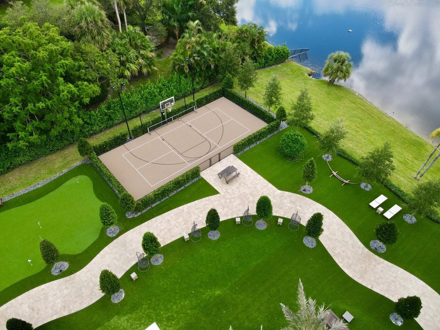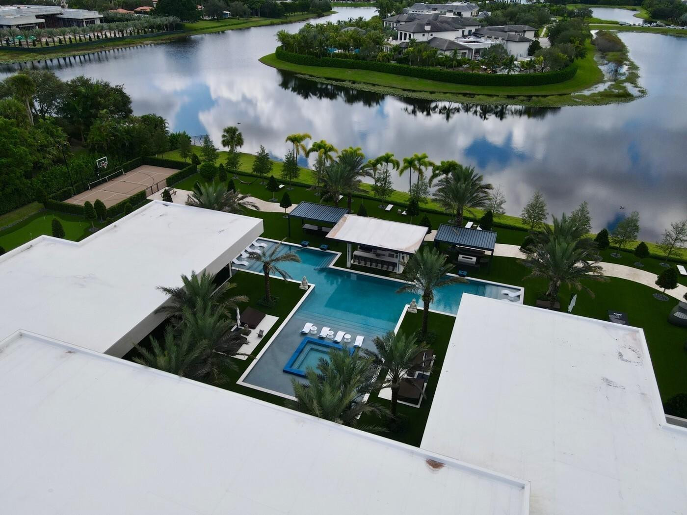 Zračne fotografije otkrivaju da je imanje smješteno tik uz obalu privatne lagune, a gusto raslinje i drvored osiguravaju potpunu privatnost od pogleda s ceste i susjednih posjeda.