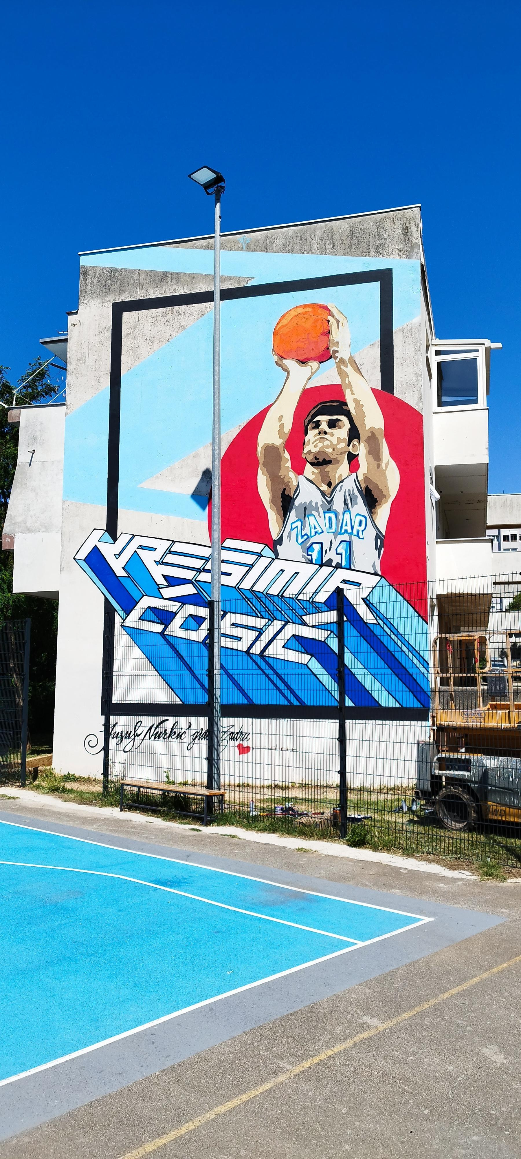 Mural na pročelju košarkaškog igrališta pravi je umjetnički dragulj, dostupan svim posjetiteljima Zadra koji žele osjetiti Krešimirov duh i ljubav prema sportu.