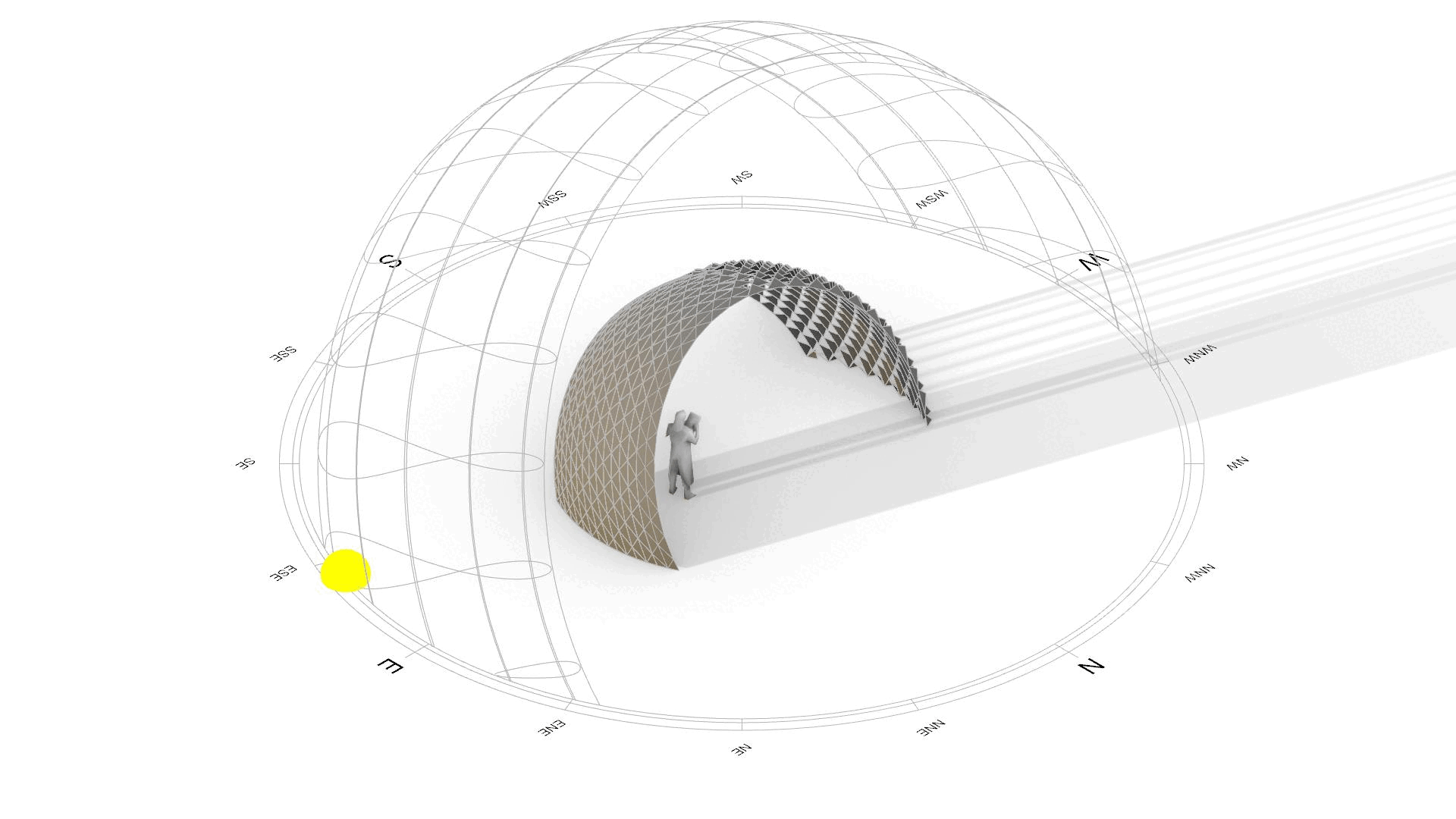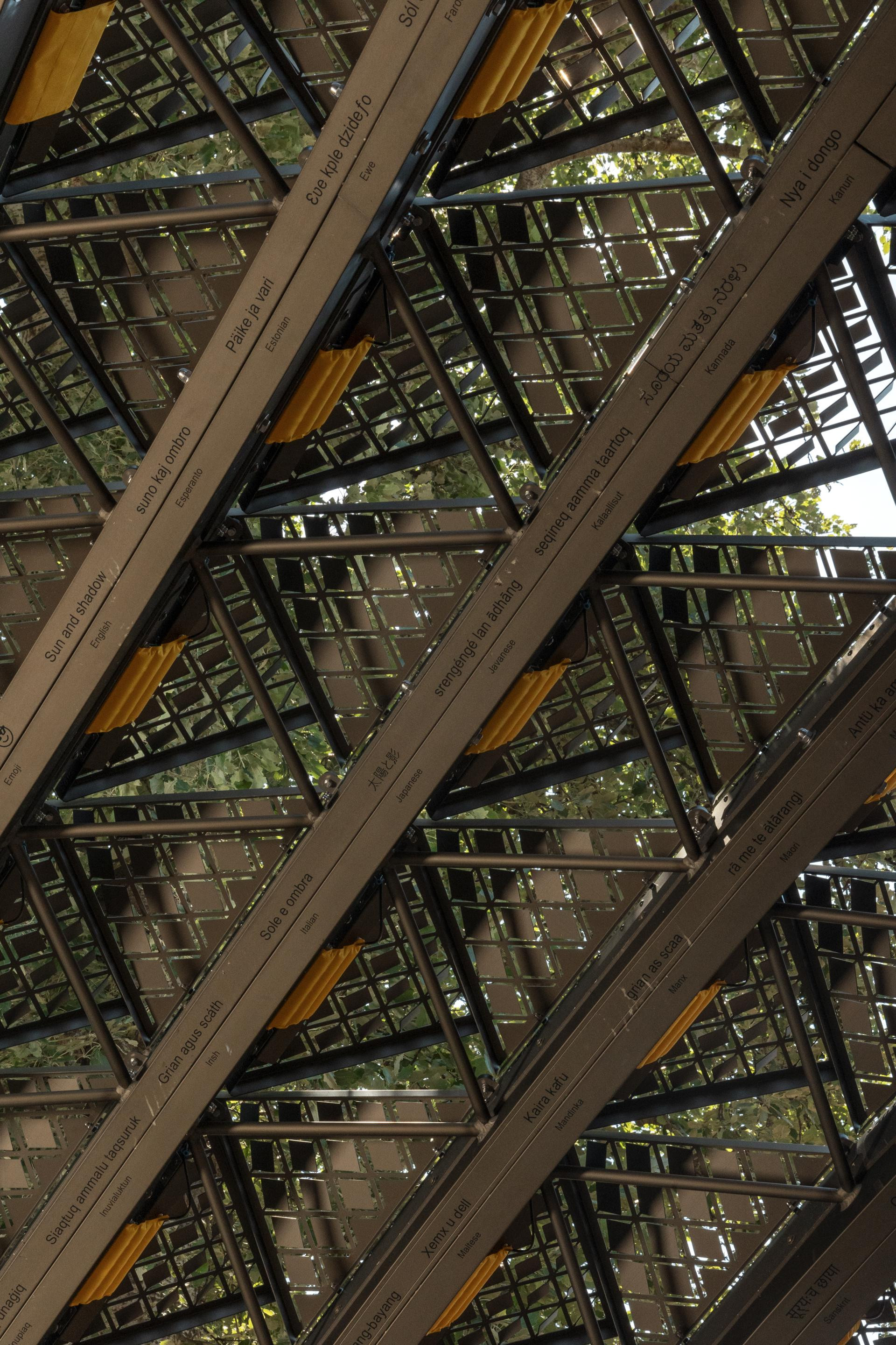 U podnožju paviljona nalazi se kružna ploča ugravirana solarnim lukom koji prati putanju sunca. On je poslužio kao osnova za cijelu geometriju strukture. Na dnu lukova ispisane su riječi "sunce i sjena" na više od 200 jezika, podsjećajući kako je odnos čovjeka prema suncu univerzalno iskustvo.