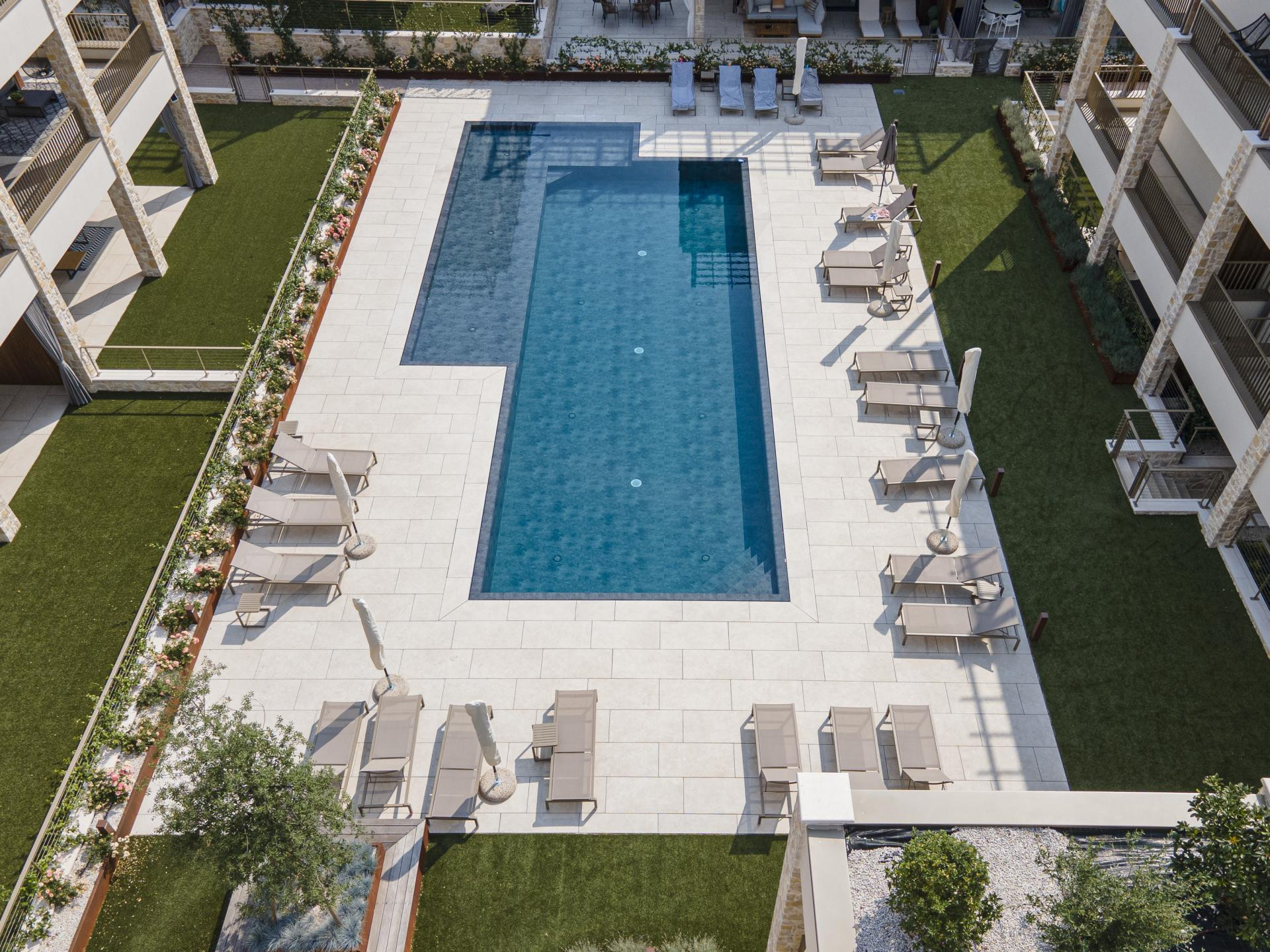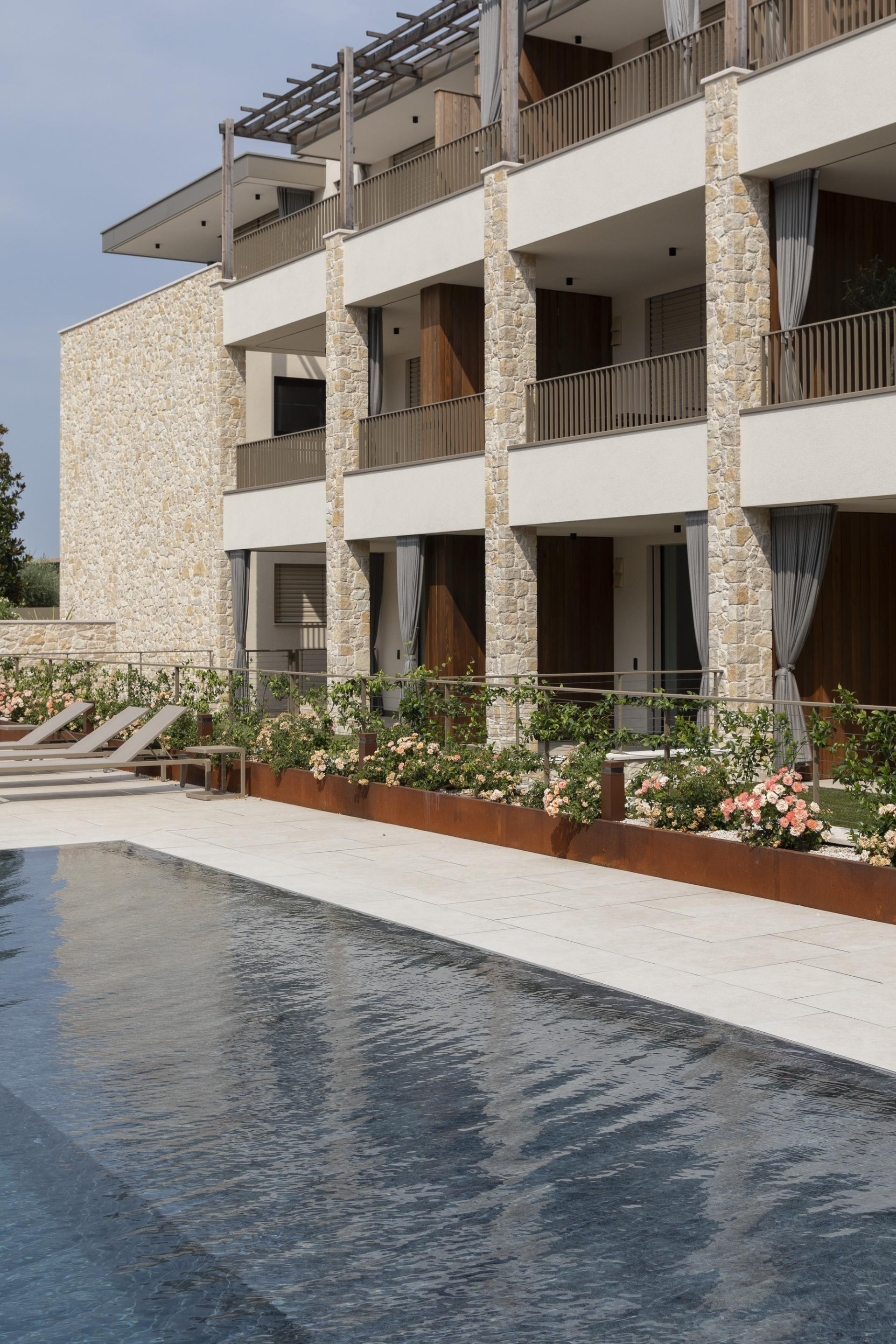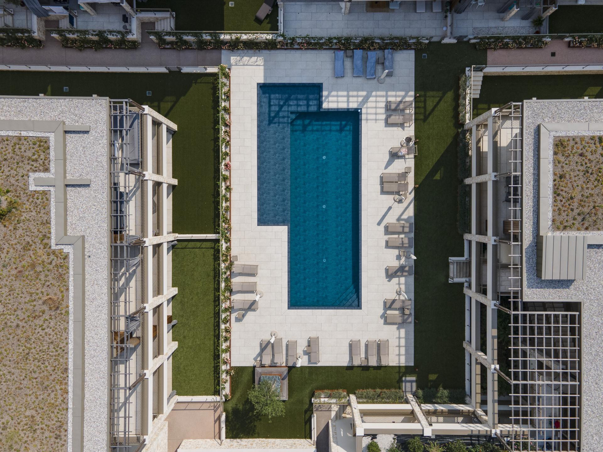 Inspiracija za dizajn došla je iz tradicionalne lokalne arhitekture, od rustikalnih seoskih kuća poznatim kao ‘corte‘, ali interpretanih na suvremen način. U samom središtu kompleksa nalazi se prostrano dvorište s privatnim bazenom, okruženim terasama i bujnim zelenilom, koje svim stanarima pruža osjećaj mira. To je srce Corte Gardena – mjesto opuštanja i susreta.