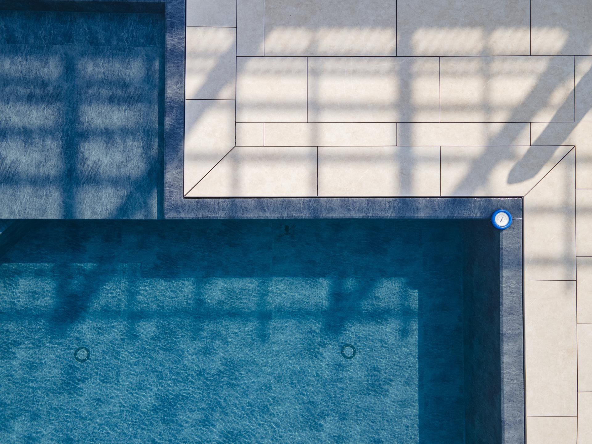 Posebna pažnja posvećena je odabiru materijala za vanjske prostore. Privatne terase i staze obložene su keramičkim pločicama Realstone Argent XT20 s efektom prirodnog kamena u toploj boji Avorio, poznatog talijanskog proizvođača Ragno. Ove porculanske ploče, debljine 2 cm, ističu se sofisticiranim izgledom, ali su i izuzetno praktične. Zahvaljujući StepWise tehnologiji, površine su protuklizne, pa pružaju sigurnost i u najizazovnijim vremenskim uvjetima.