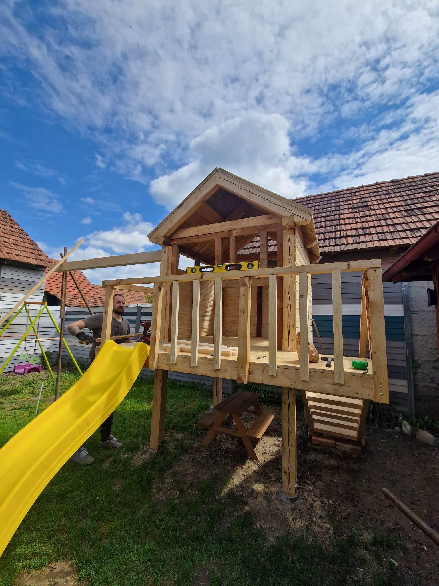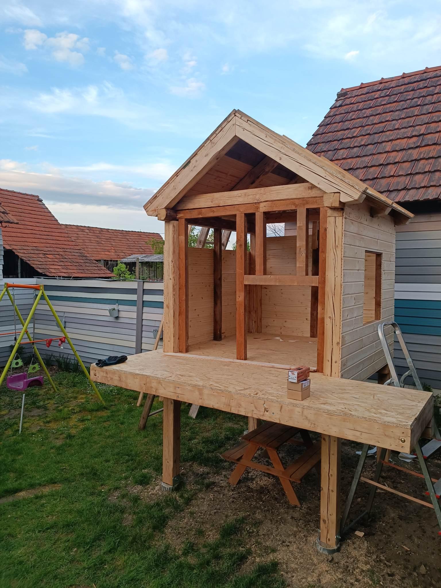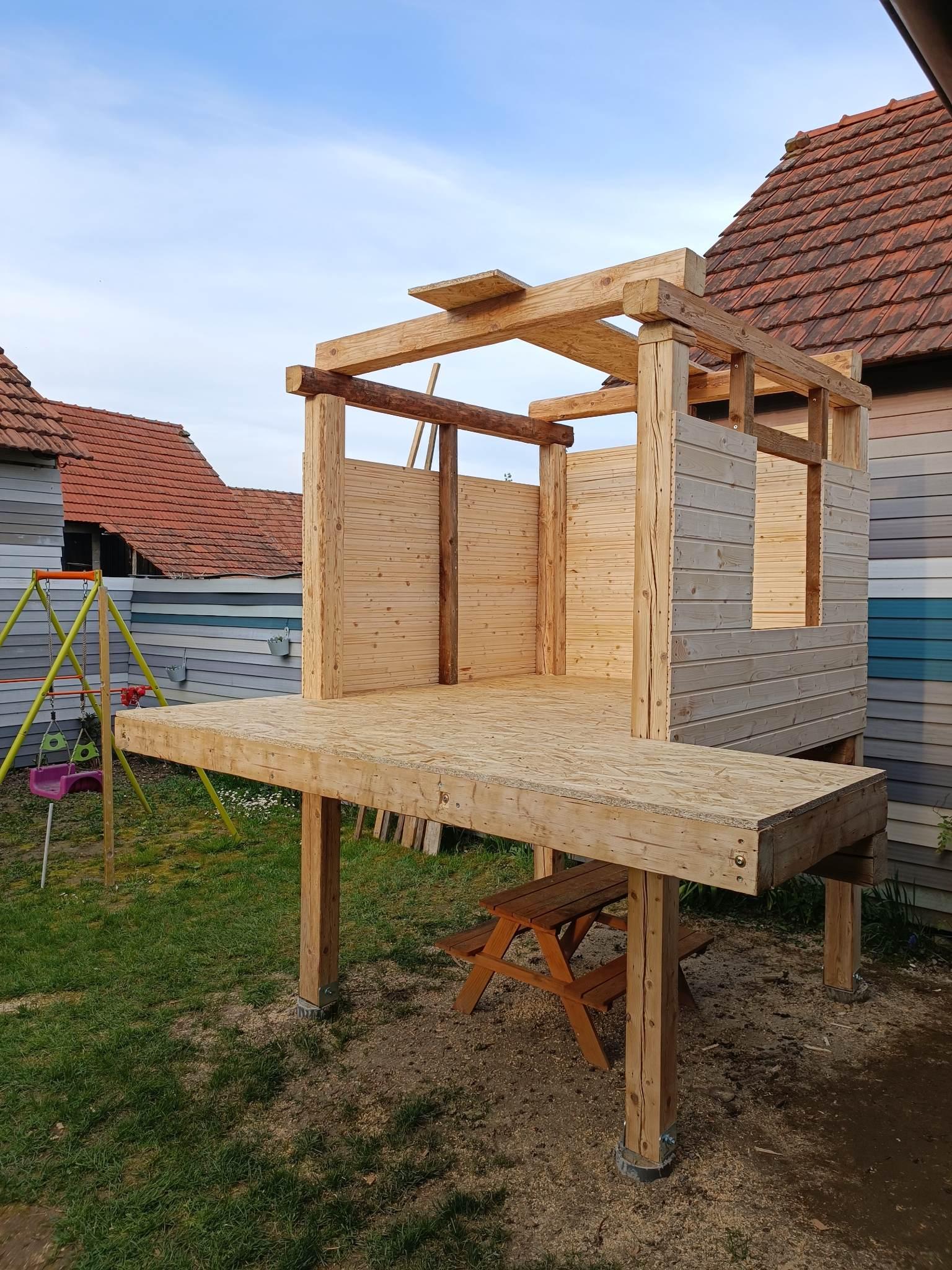 - Kako smo kod kuće imali drvene grede, one su poslužile kao konstrukcija kućice. Zidovi su napravljeni od lamperije, pod i terasa su od OSB ploča, a na krovu je lim koji smo također imali kod kuće. Maris je od početka pomagala i dirigirala radove i na kraju je odabrala boje koje želi.