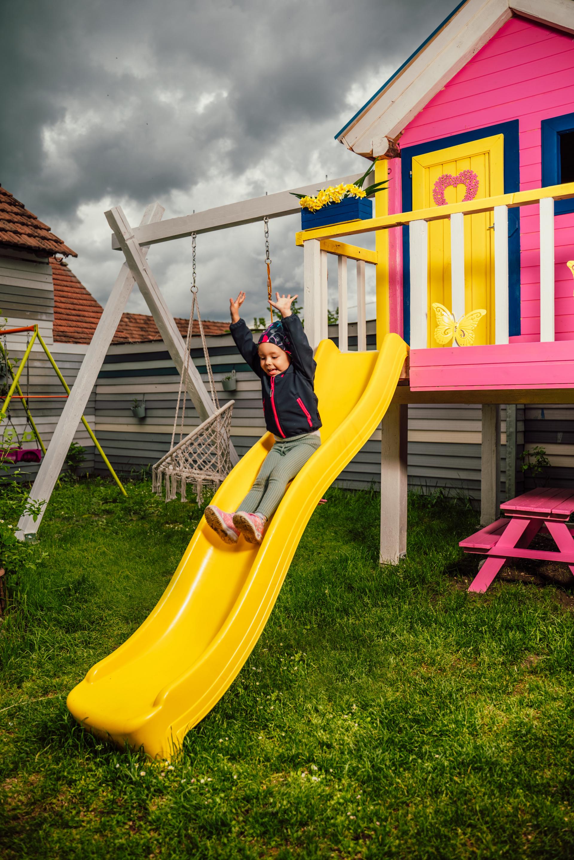 - Maris je bila oduševljena kad smo završili i kad god može, igra se u kućici ili oko nje. Trenutačno se cijeli njezin svijet vrti oko kućice. Voli biti u kuhinji, sjediti u fotelji u kući i promatrati nas sve iznutra. Prati nas kroz prozor. Kada je vani, igra se na toboganu ili na terasi. Naravno, i ljulja se često - otkriva Bojan Migač.