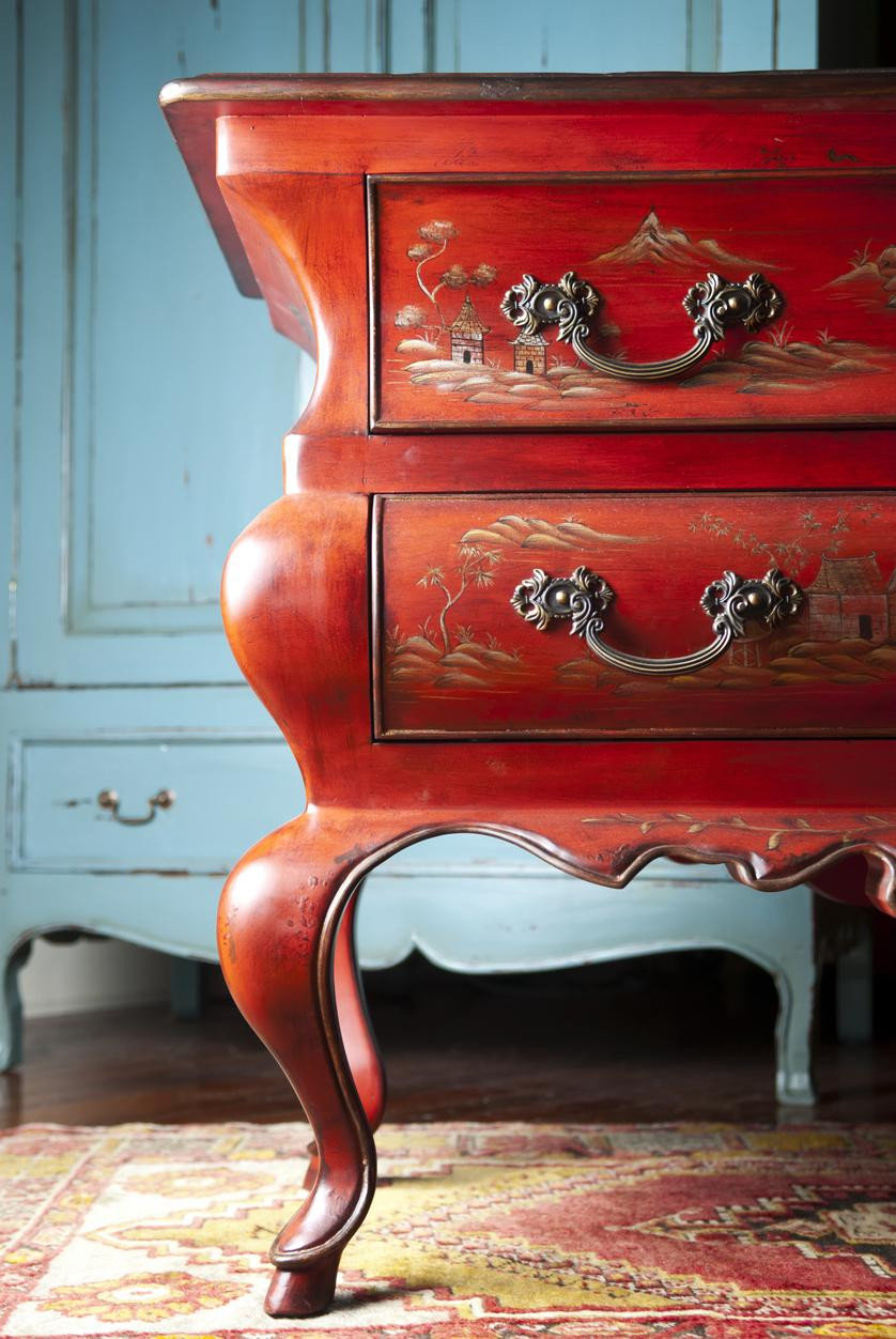 Komadi poput starinskih komoda, noćnih ormarića ili pomoćnih stolića unose raskoš i povijest u neutralne suvremene interijere. Gildani detalji, urezbareni rubovi i bogata obrada površina stvaraju kontrast glatkim, modernim materijalima.